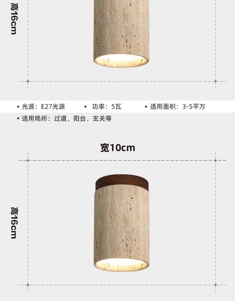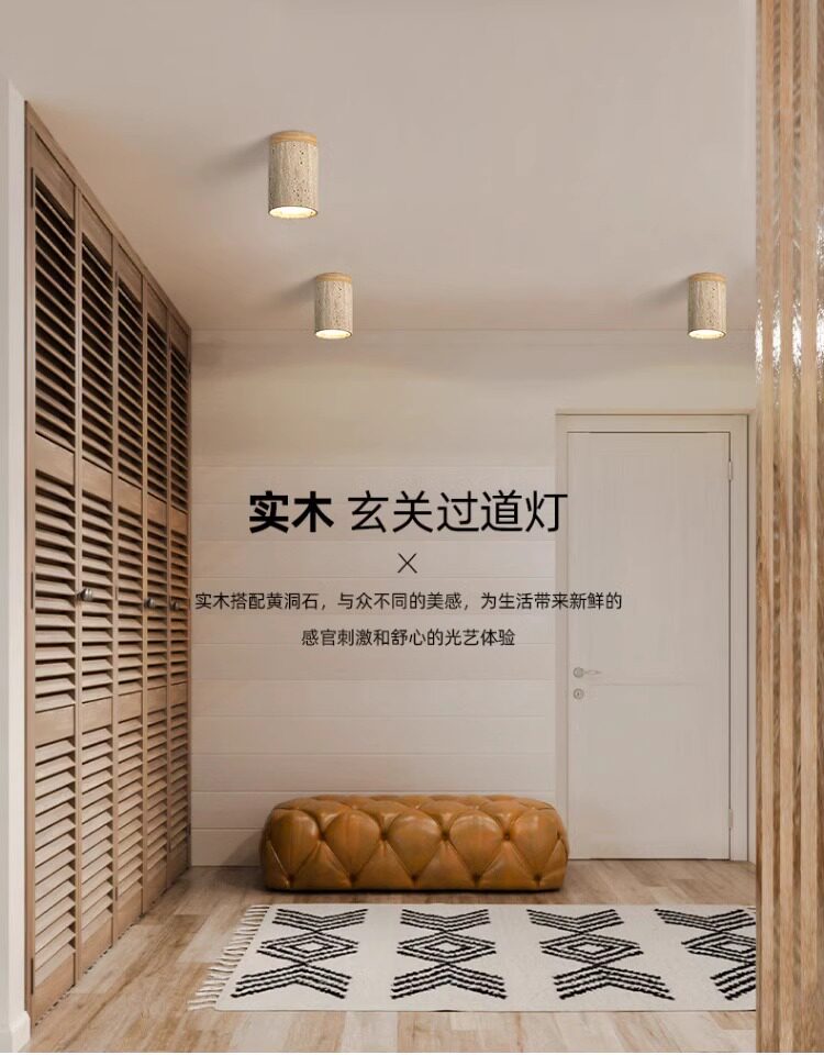 Japanese Wabi-Sabi Style Ceiling Light, Yellow Travertine, Designer Retro Personality Light for Entryway, Corridor, Cloakroom, Balcony
