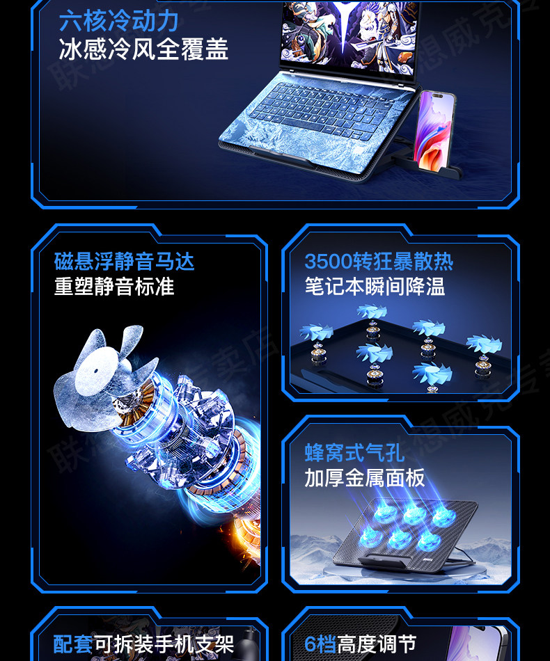 Lenovo Laptop Cooling Stand 17.3inch Fan Silent Cooling Laptop Gaming External Base Suitable for Legion Y7000P Dell Apple Tianxuan 5 Pro Asus Hp