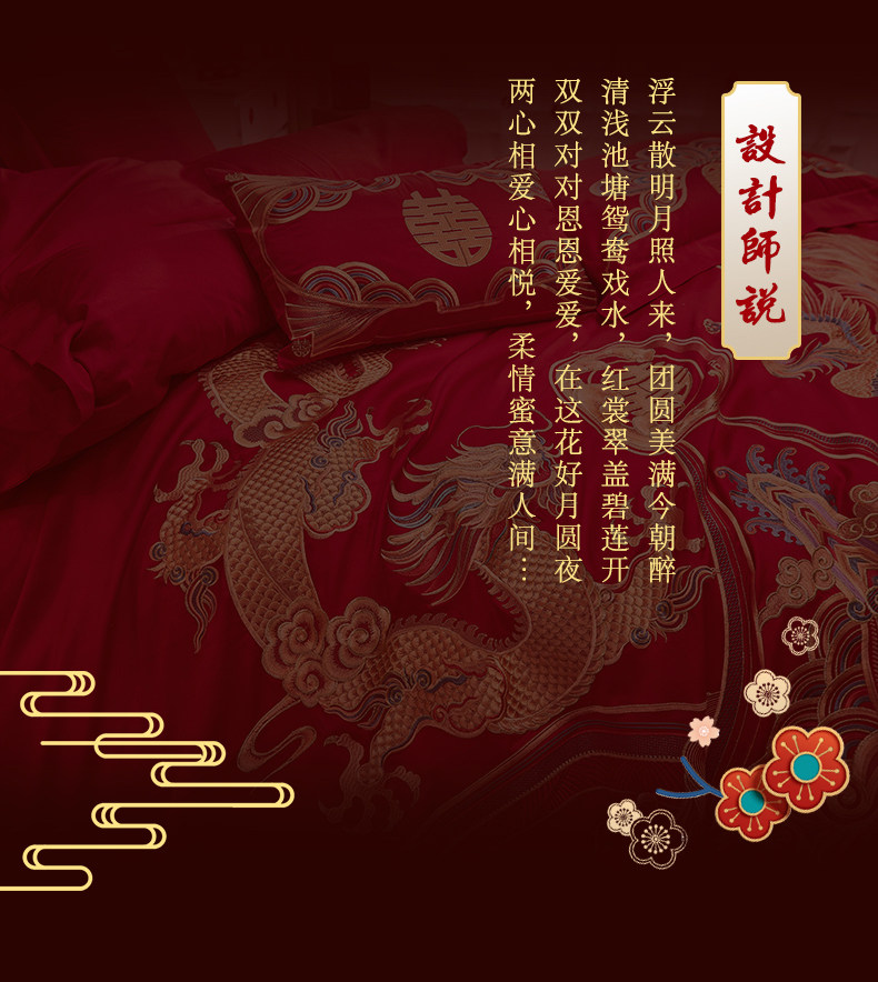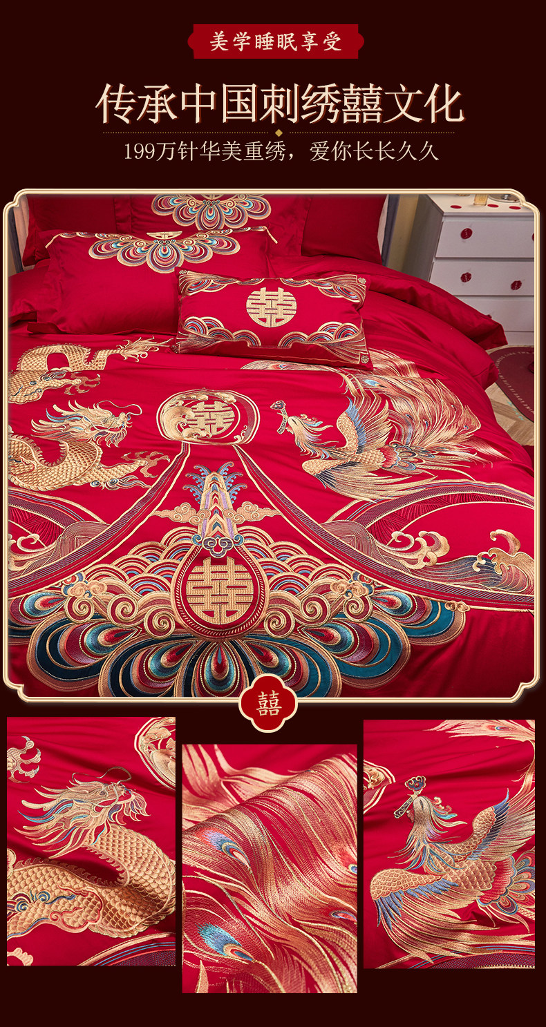 | Color Classification | Royal Wedding,Love - Red,Love - Gold,Hundred Children Are Happy,A Hundred Daughters Welcome the Bride,Phoenix Feather Fairy,Harmonious and Beautiful,Flower Cluster,Beautiful Scenery,Dragon Soaring, Phoenix Leaping.,Dragon's Roar and Phoenix Dance,Luan Fei Feng Wu,Harmonious Union,A Match Made in Heaven |