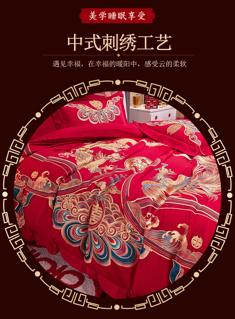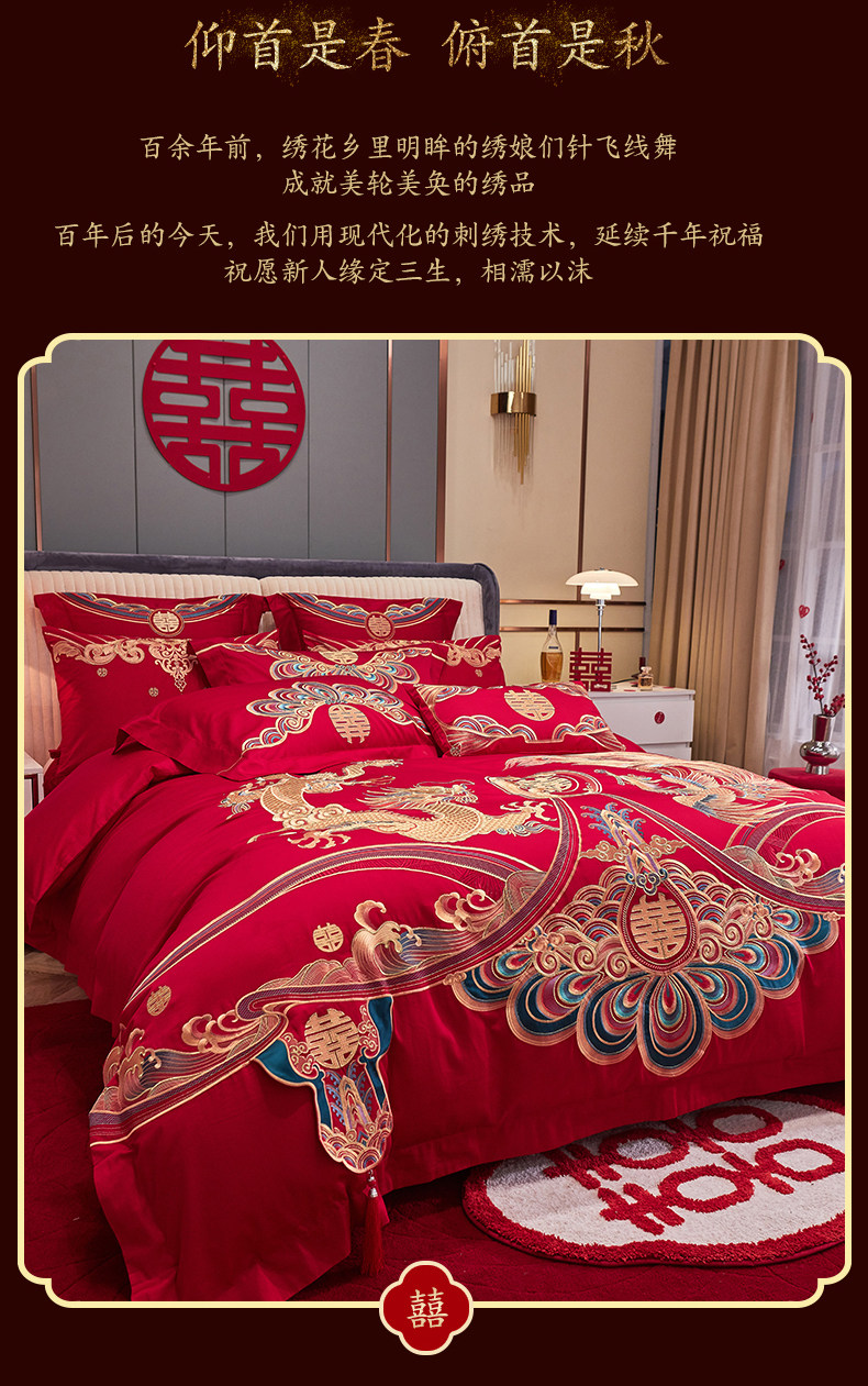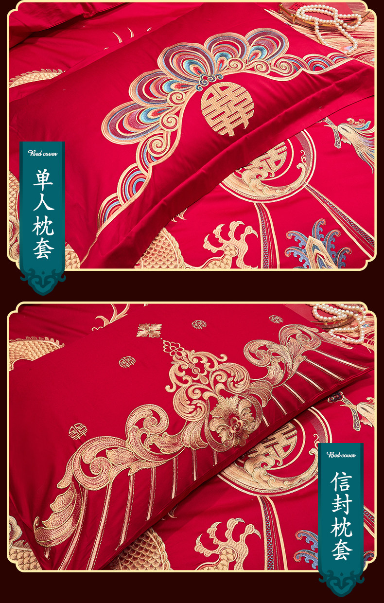 New Chinese-Style Dragon and Phoenix Embroidery All-Cotton Bedding Four-Piece Set, Light Luxury and High-End Feel, Red Bedding 2025 New Model