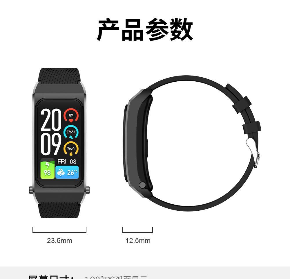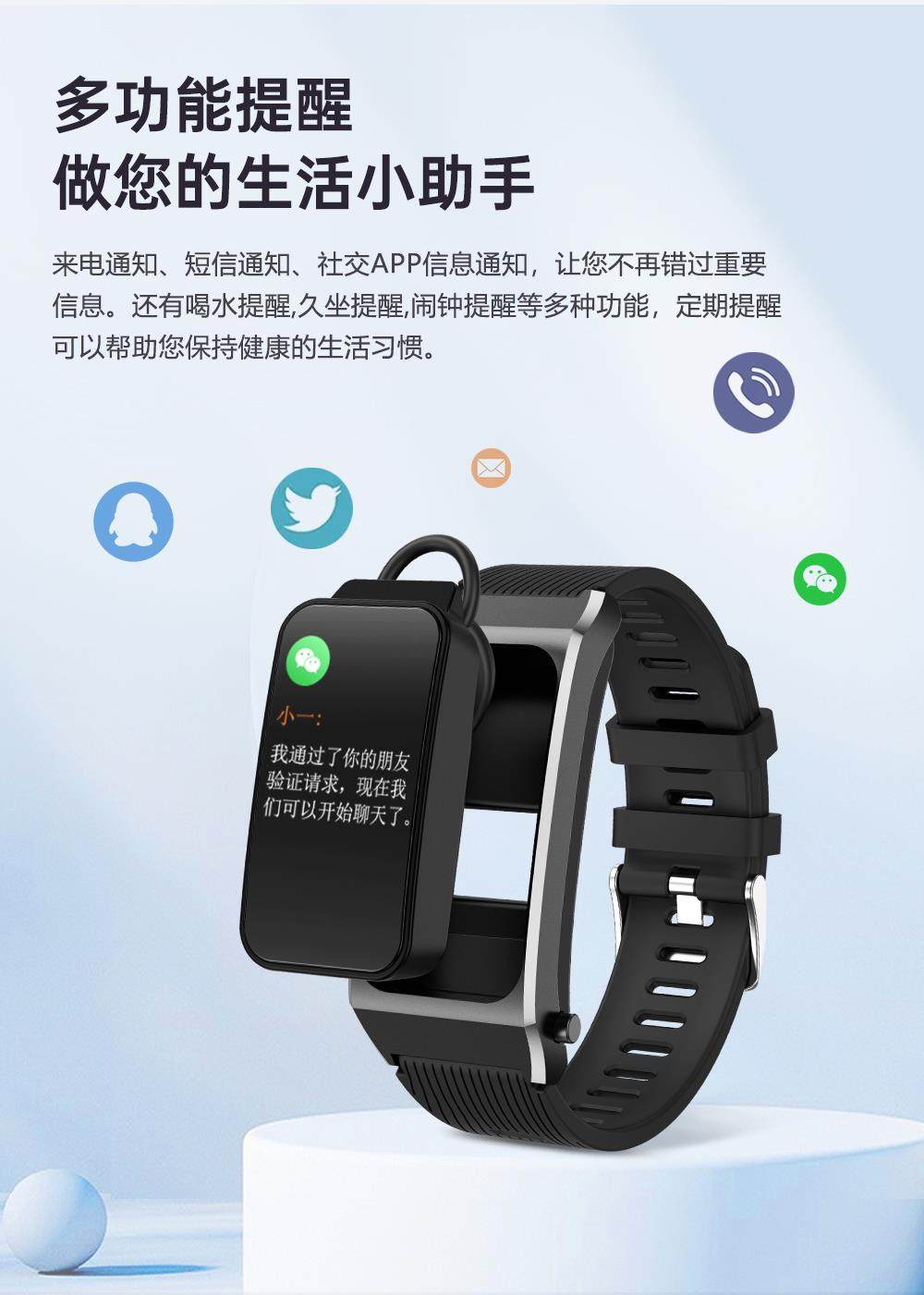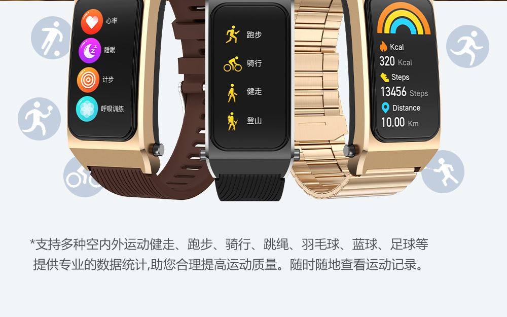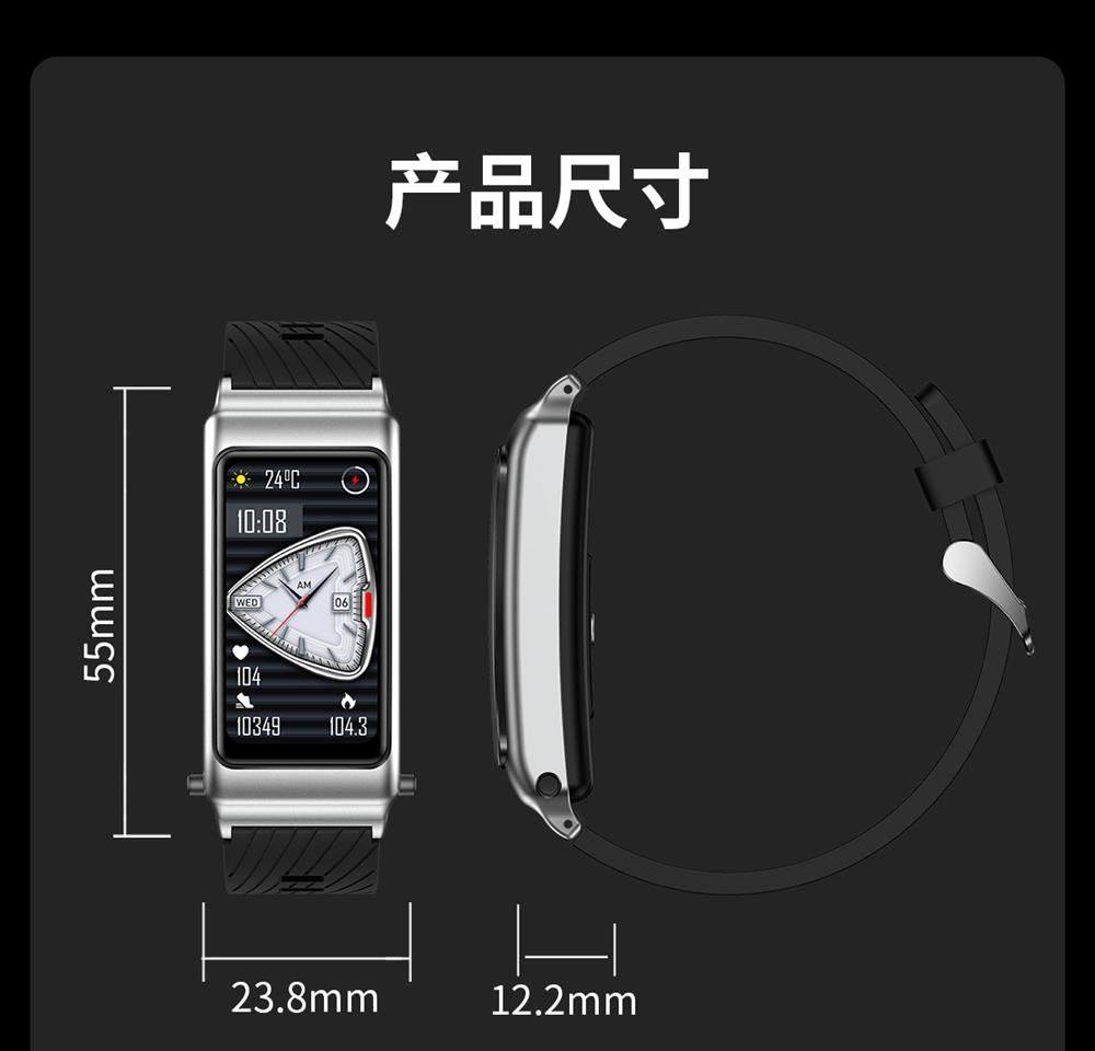 | Function | Blood Pressure Monitoring,Exercise Tracking,Bluetooth Call,Step Counting,Information Push,Heart Rate Monitoring,Blood Oxygen Detection,Reminder to Sit for a Long Time,Smart Reminder,Sleep Monitoring |