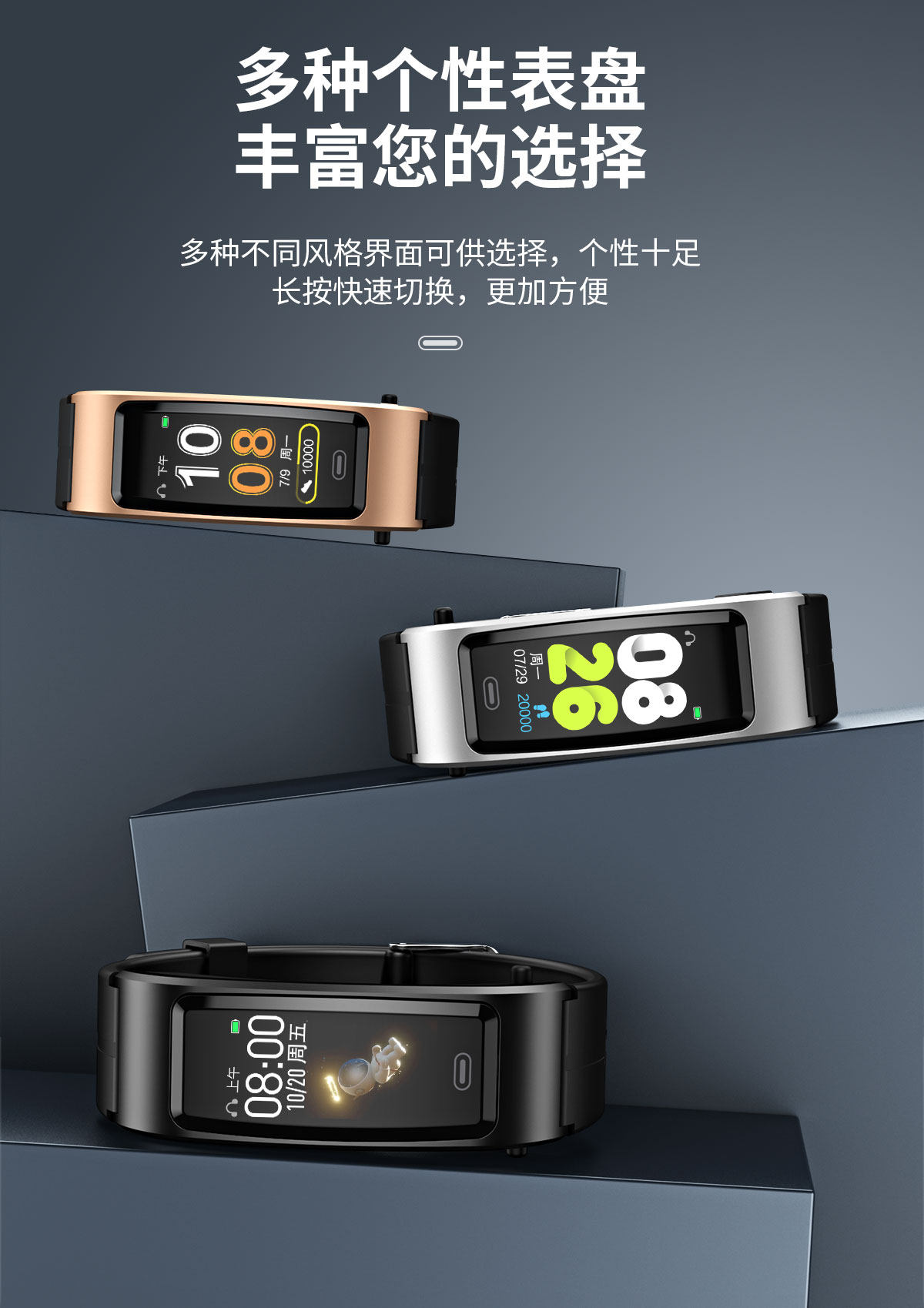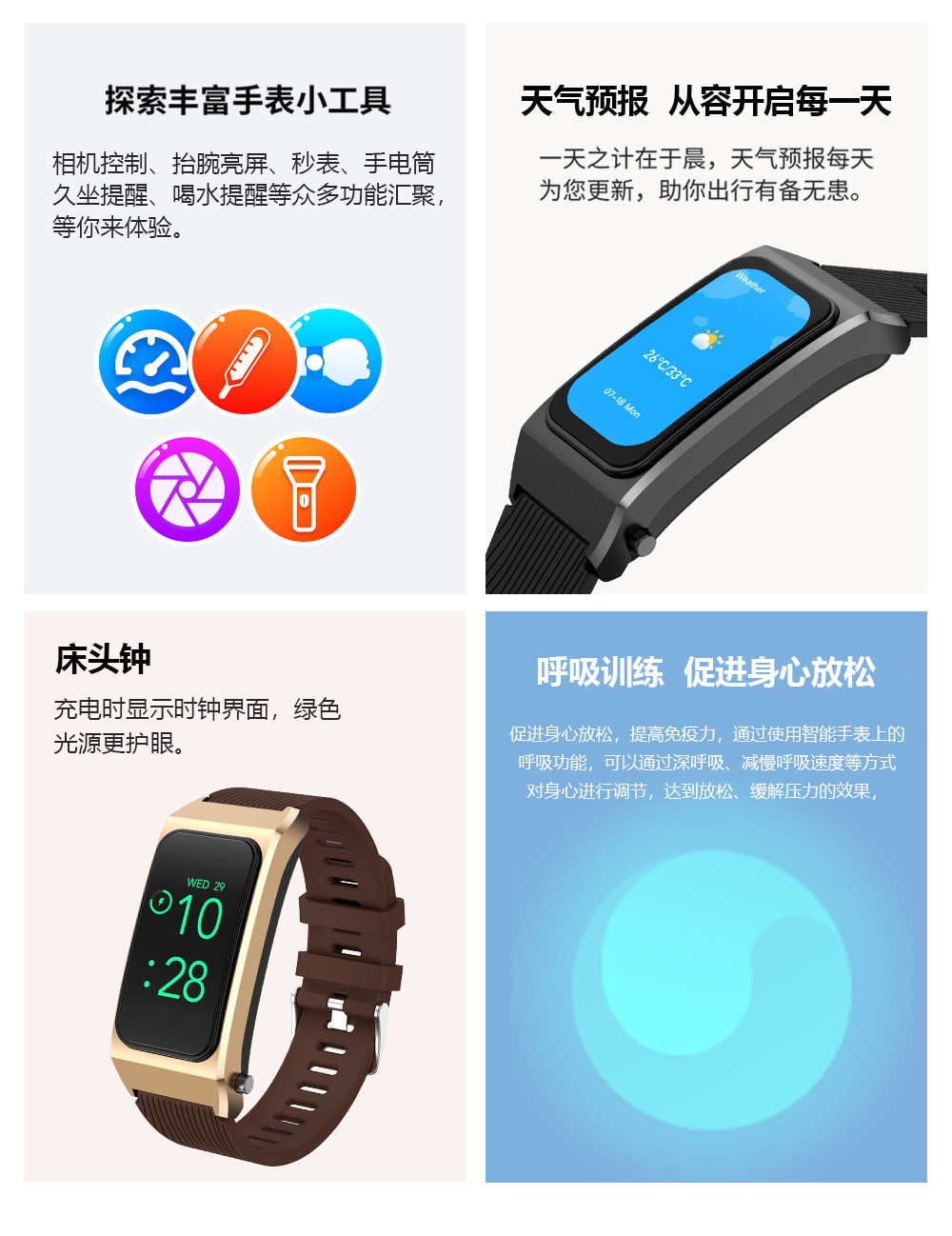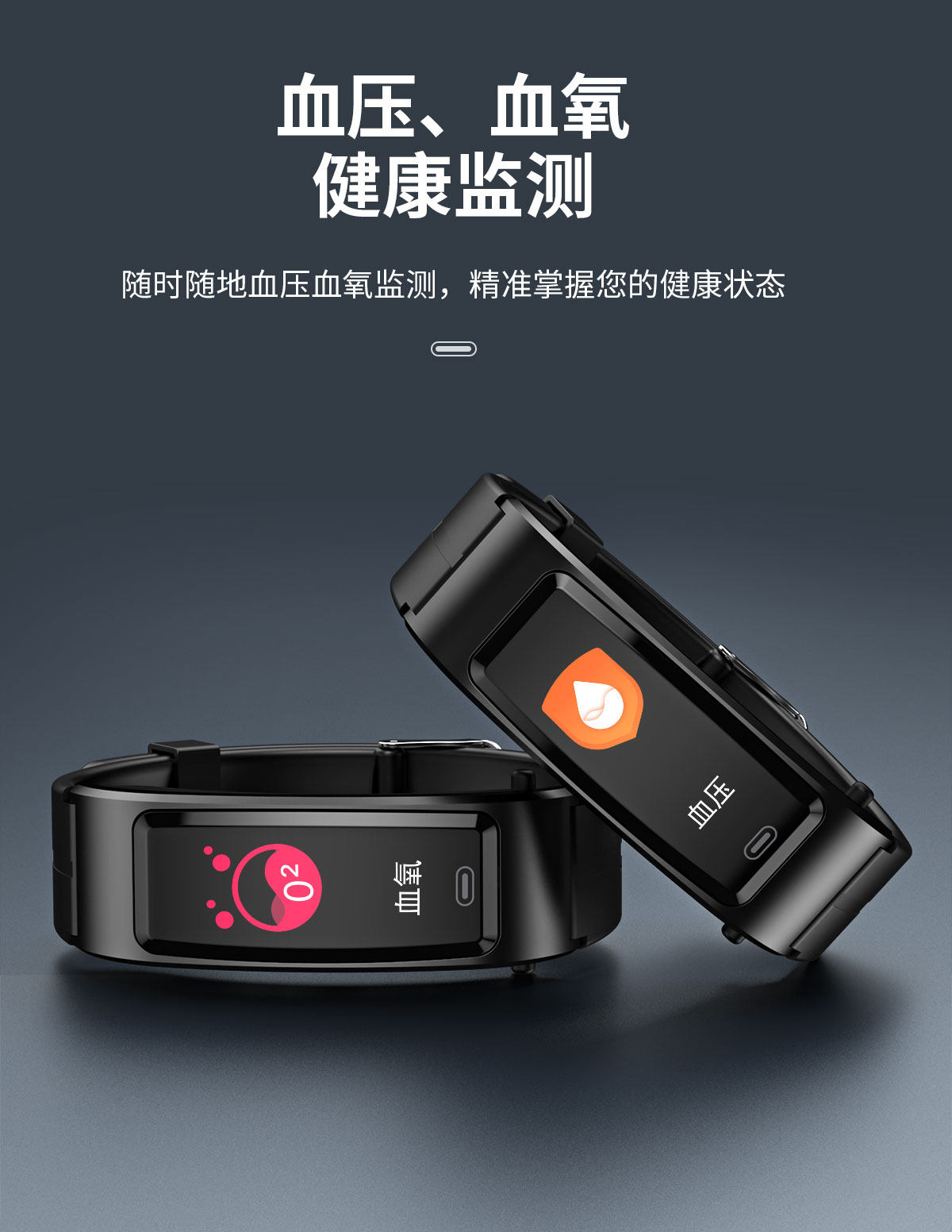 | Function | Blood Pressure Monitoring,Exercise Tracking,Bluetooth Call,Step Counting,Information Push,Heart Rate Monitoring,Blood Oxygen Detection,Reminder to Sit for a Long Time,Smart Reminder,Sleep Monitoring |