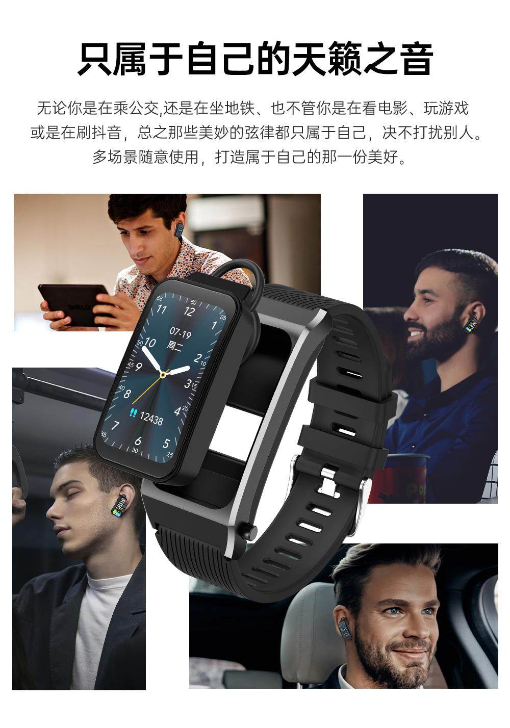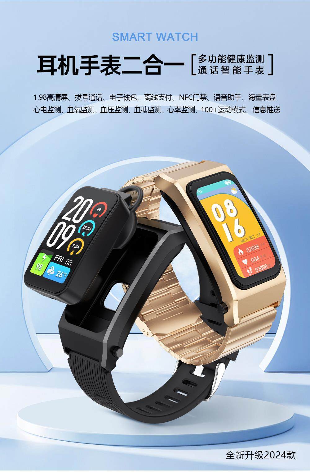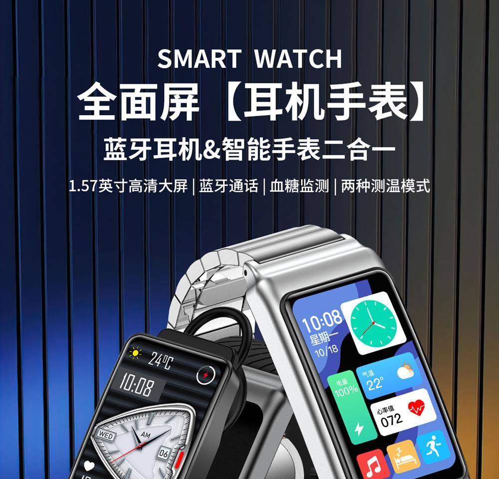 Smart Call Sports Watch, Adult Bluetooth Headset, Bracelet, Two-In-One Health Monitoring, Nfc Pedometer for Men and Women