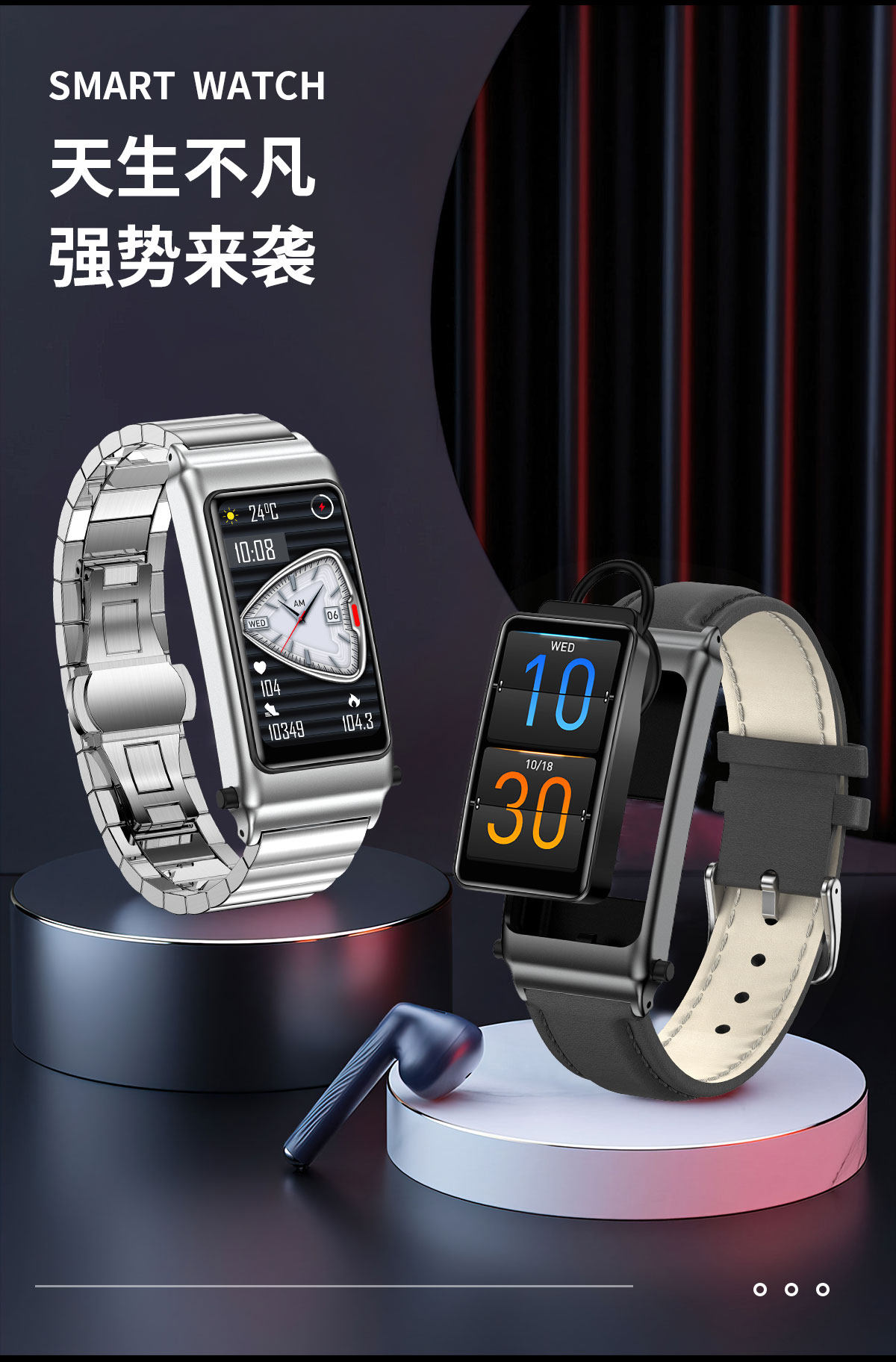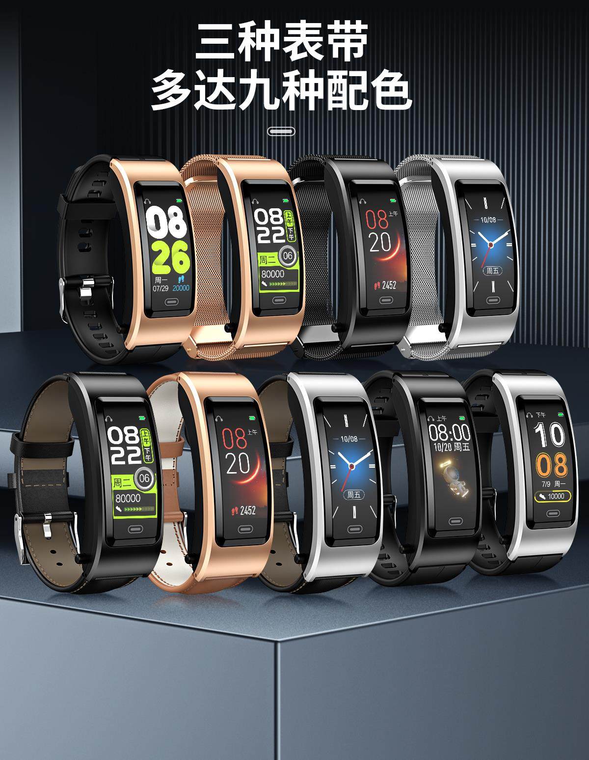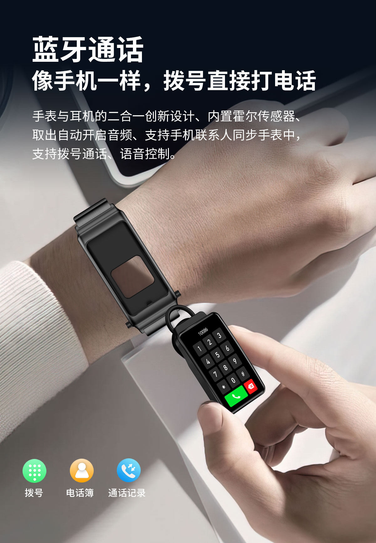 Smart Call Sports Watch, Adult Bluetooth Headset, Bracelet, Two-In-One Health Monitoring, Nfc Pedometer for Men and Women