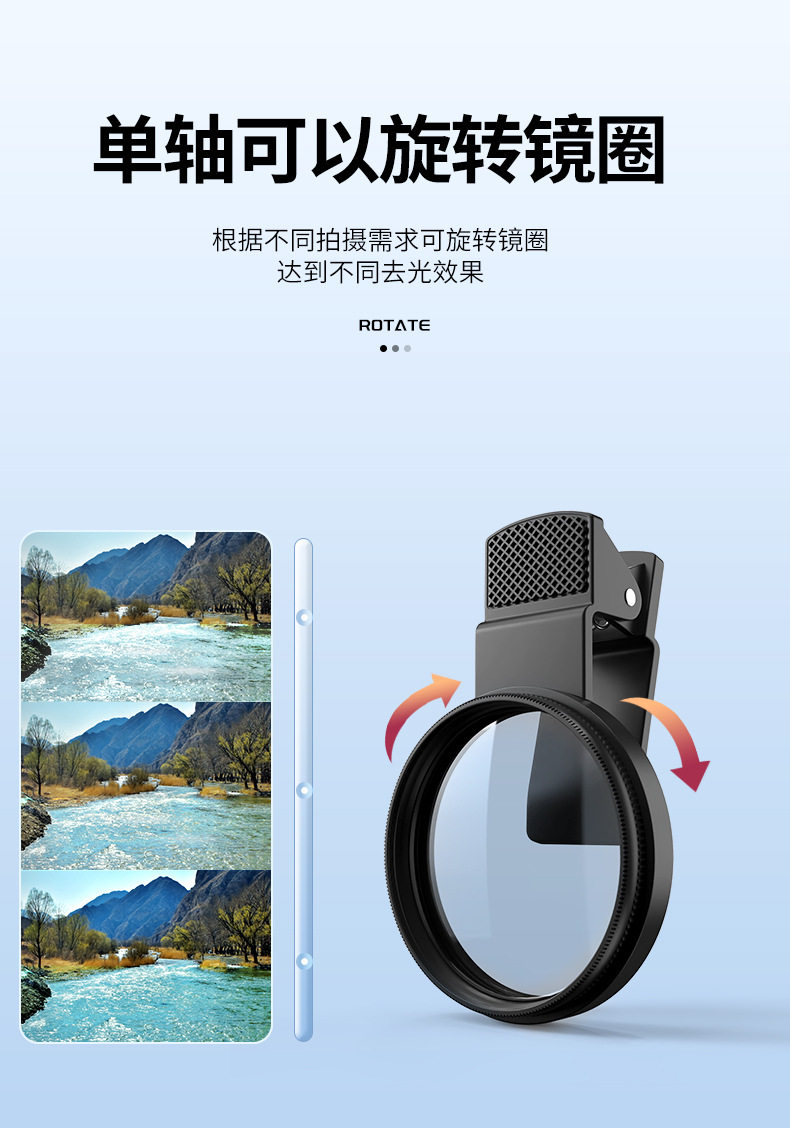 Polarizing Filter for Mobile Phones, Specialized Photography Filter for High-Definition Photography, Suitable for Huawei, Apple Nd Filter, Professional Cpl Polarizer, 67mm Clip-On Universal Shooting Accessory, 52mm Auxiliary Tool