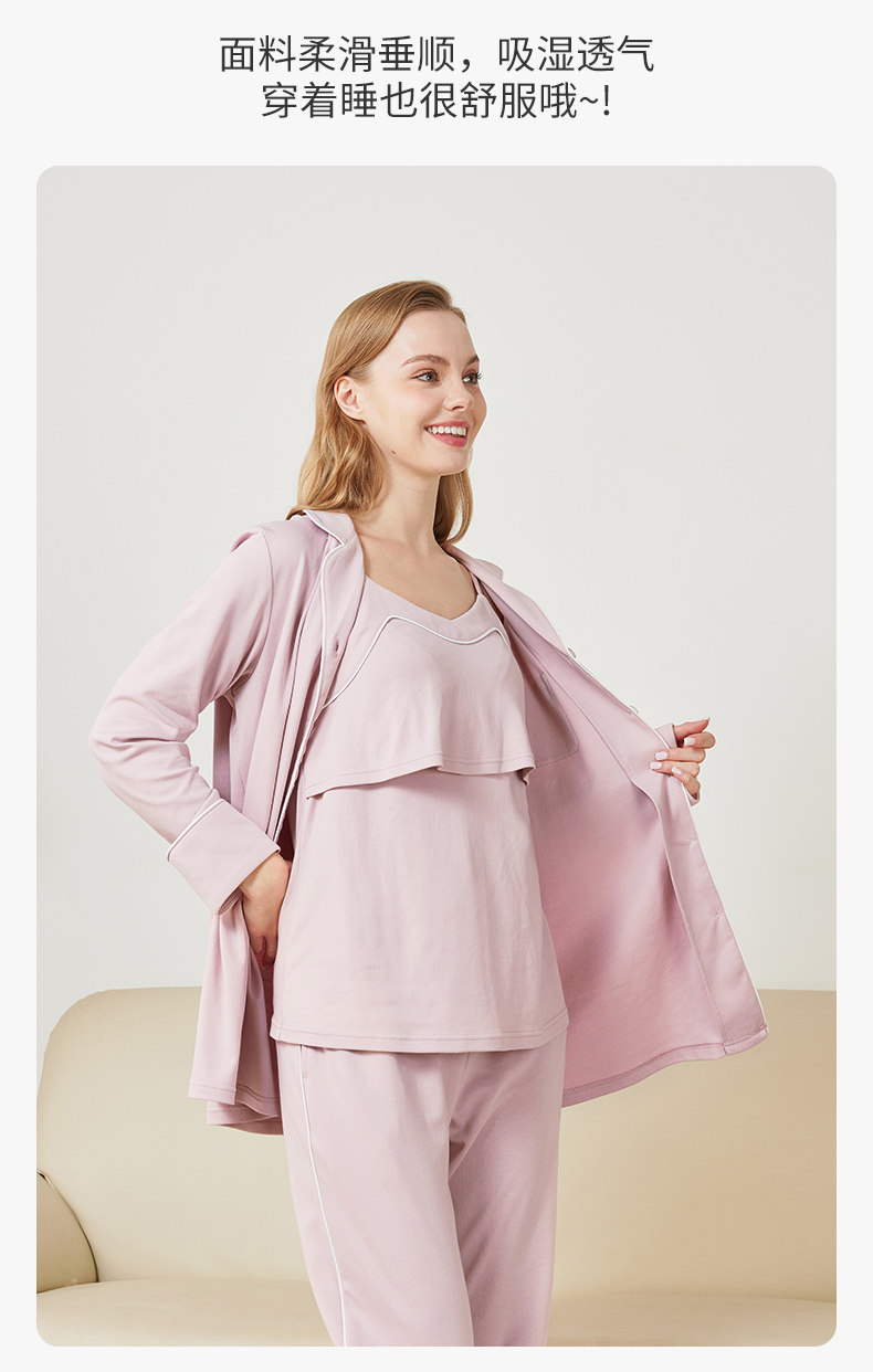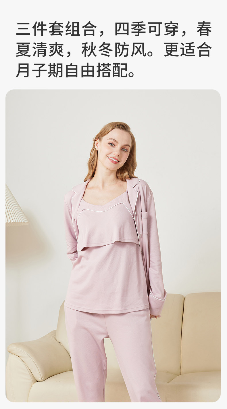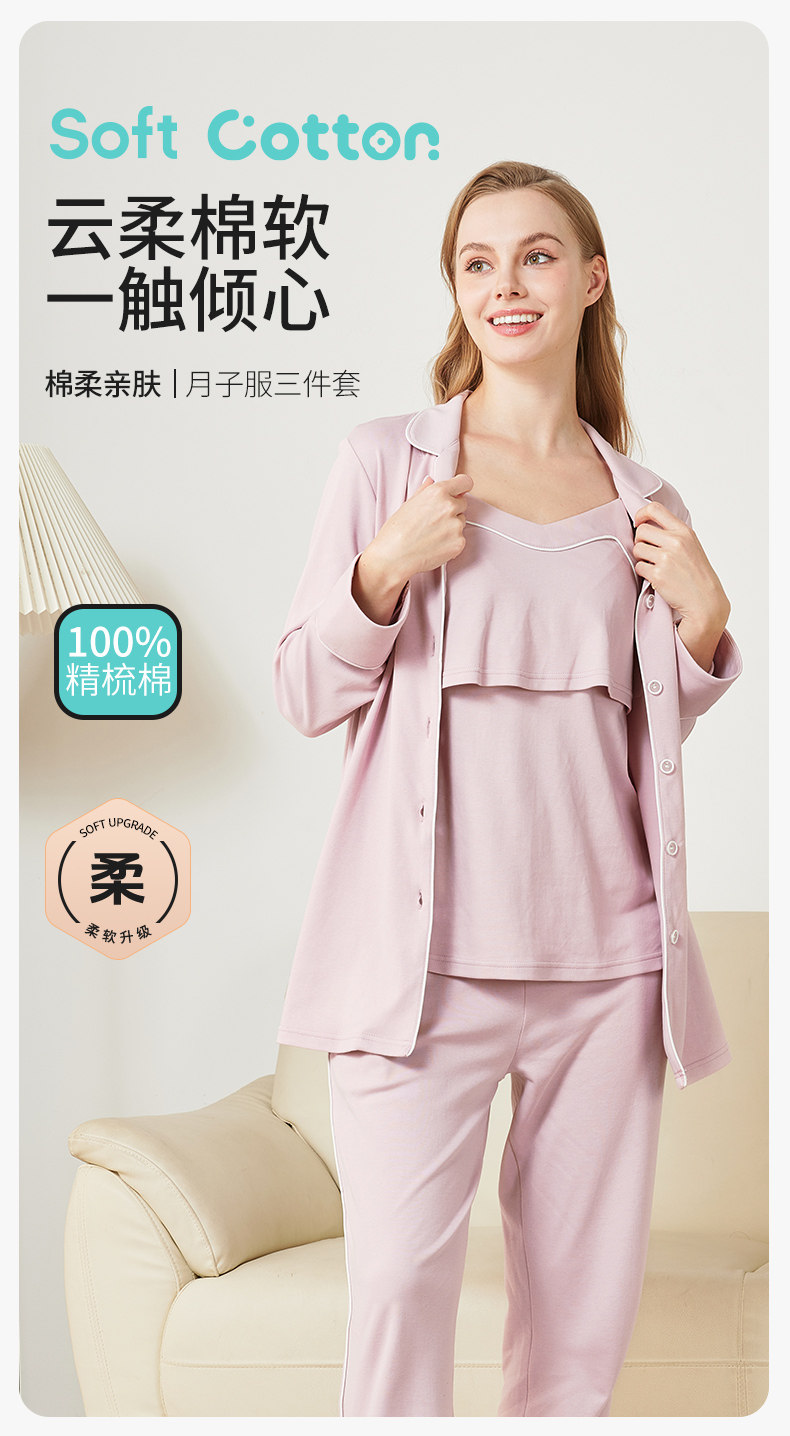 Postpartum Clothing, Spring and Autumn Style, Pure Cotton, Sweat-Absorbent, March Maternity Pajamas, Maternity Loungewear, Breastfeeding-Friendly