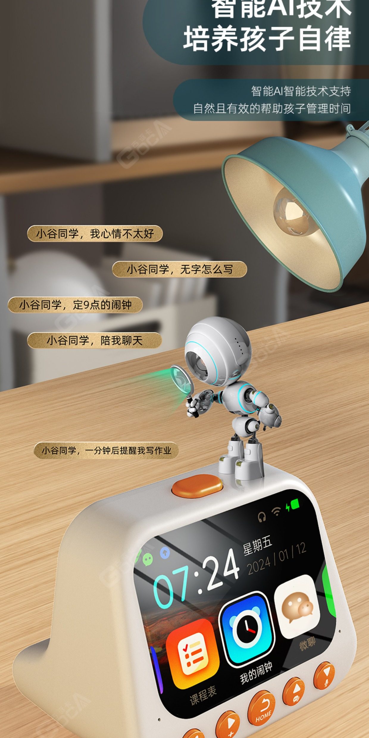 Gouka Ai Smart Alarm Clock for Students, Time Management Robot, Multifunctional Children's Clock, Time Manager for Boys and Girls, Timer for Self-Discipline Learning, Voice Dialogue Wake-Up Device
