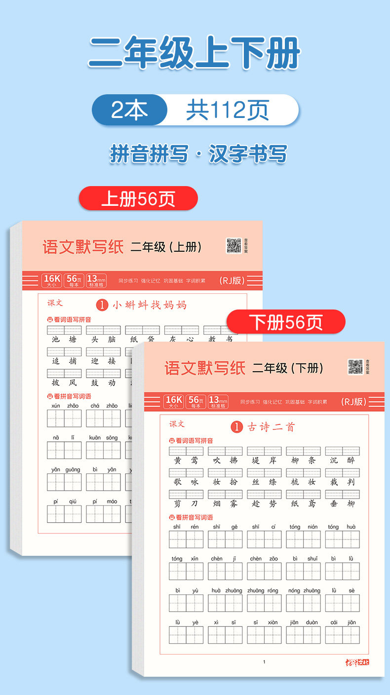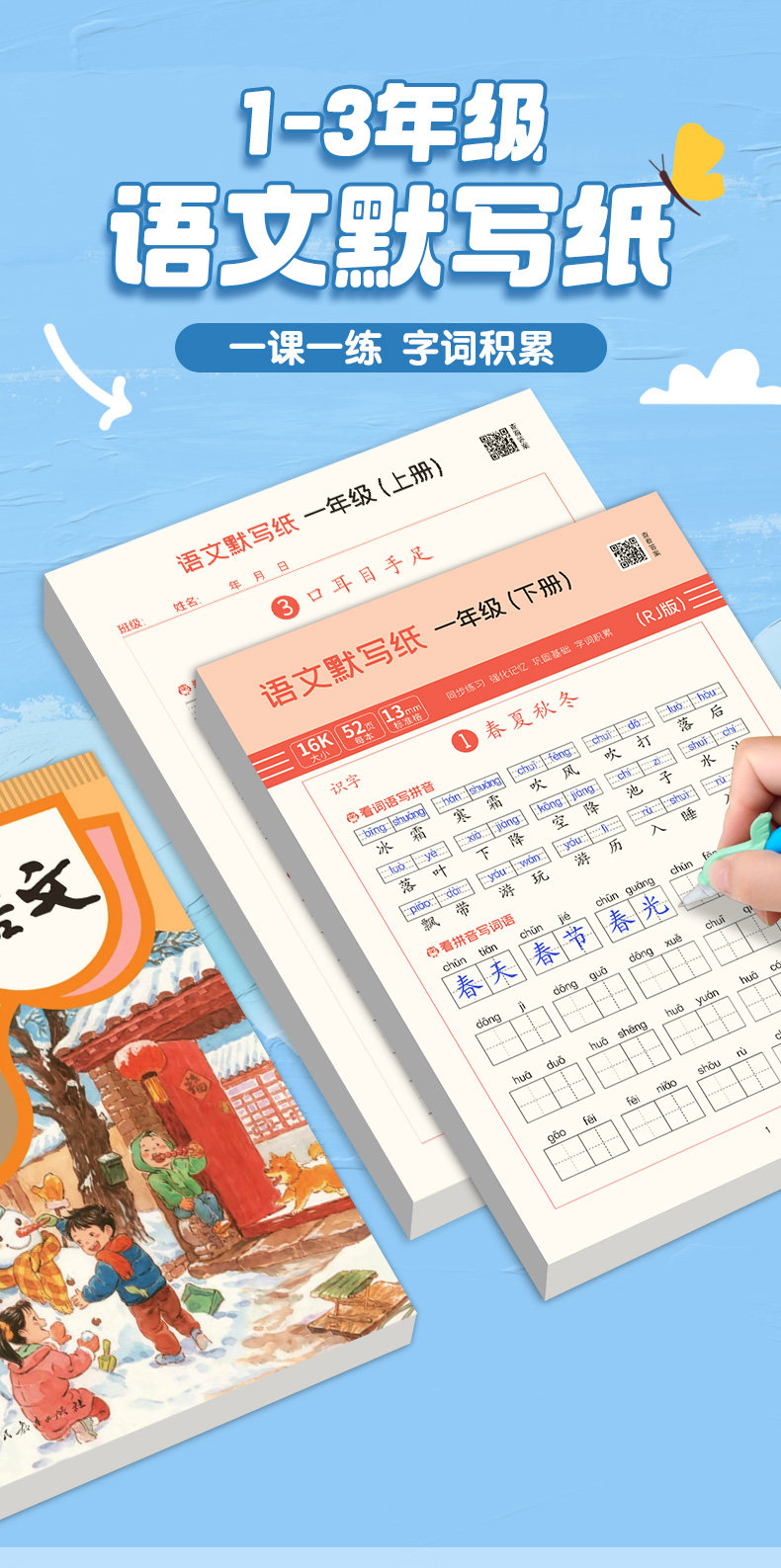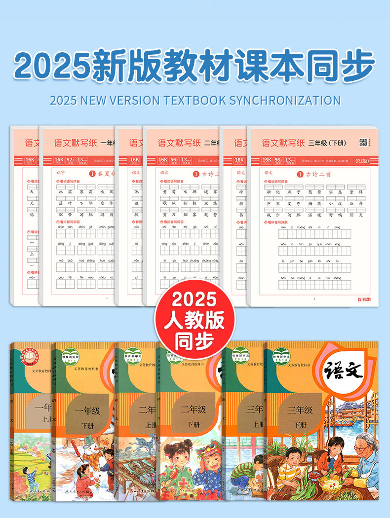 2025 New Edition Primary School Chinese Language Dictation Paper for Grade 1 (First and Second Semester) Synchronized Writing Practice Book, People's Education Press Edition, Character and Word Pronunciation Practice Book for Grades 2 and 3, Pinyin Word Writing Special Training, Children's Regular Script Daily Practice