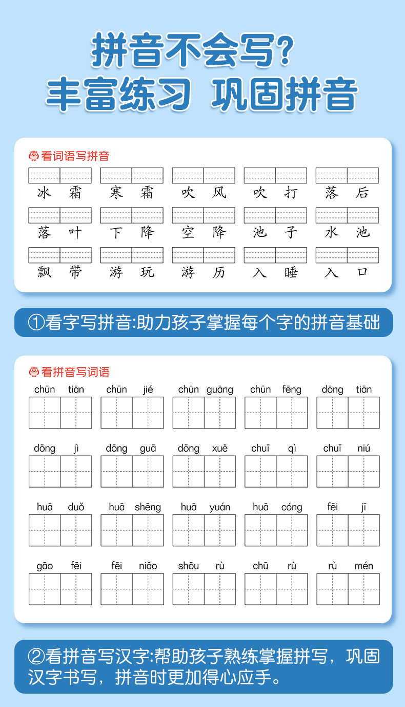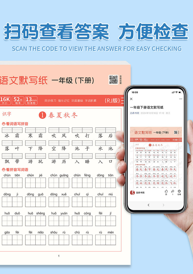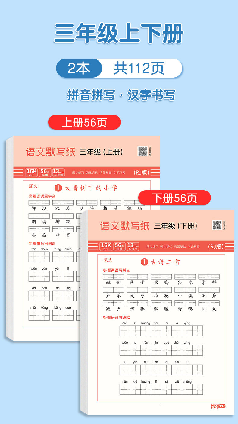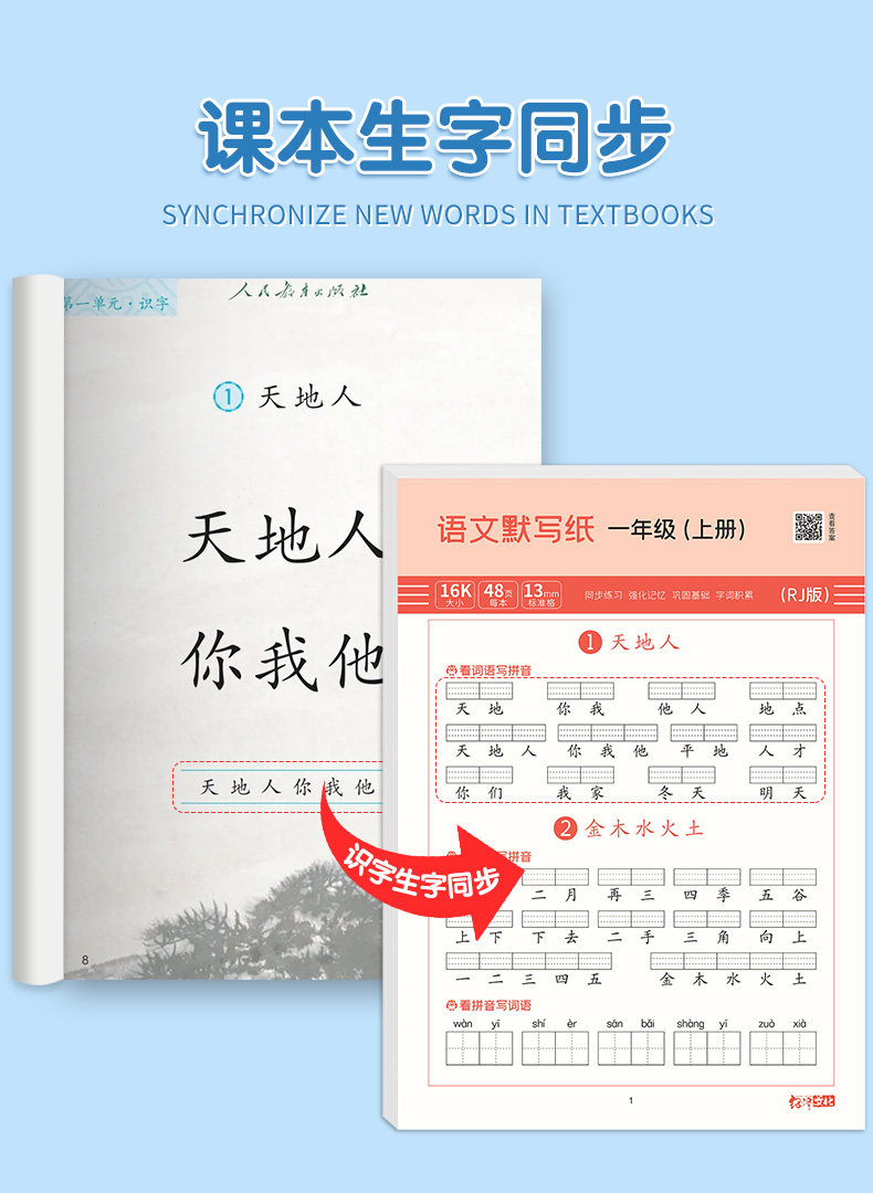 2025 New Edition Primary School Chinese Language Dictation Paper for Grade 1 (First and Second Semester) Synchronized Writing Practice Book, People's Education Press Edition, Character and Word Pronunciation Practice Book for Grades 2 and 3, Pinyin Word Writing Special Training, Children's Regular Script Daily Practice