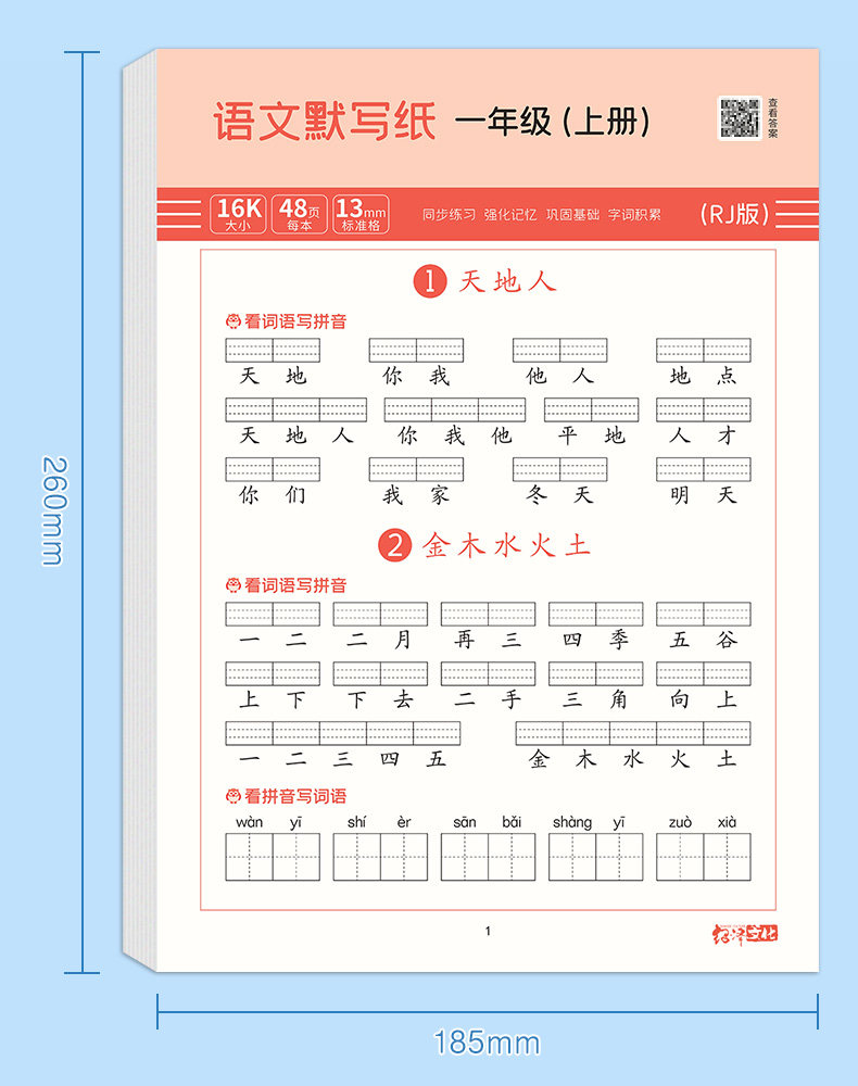 | Book Title | First Grade Chinese Language Synchronous Dictation Paper |