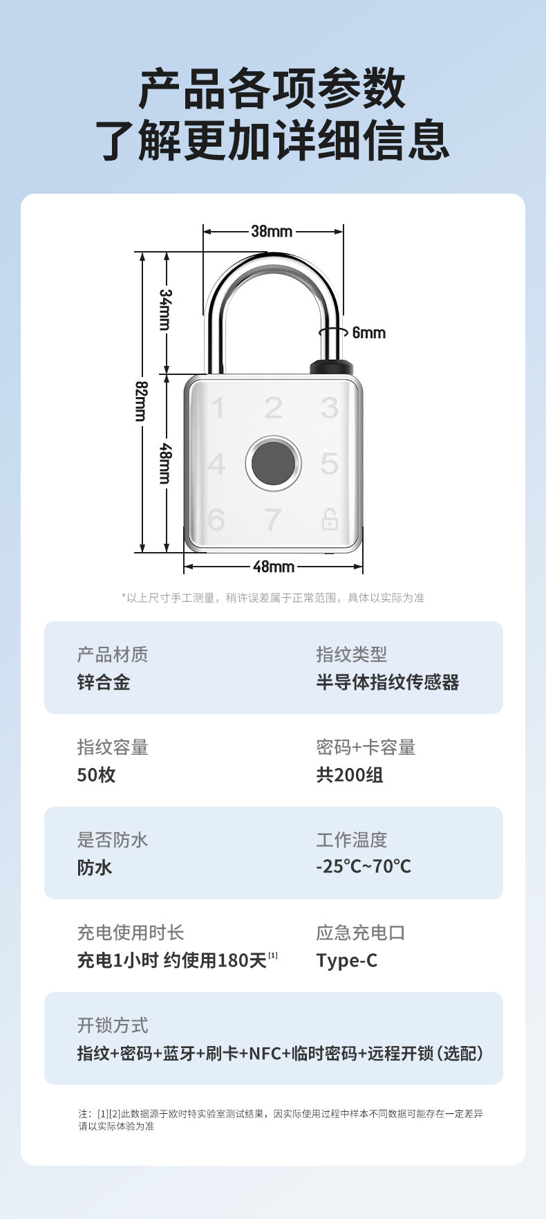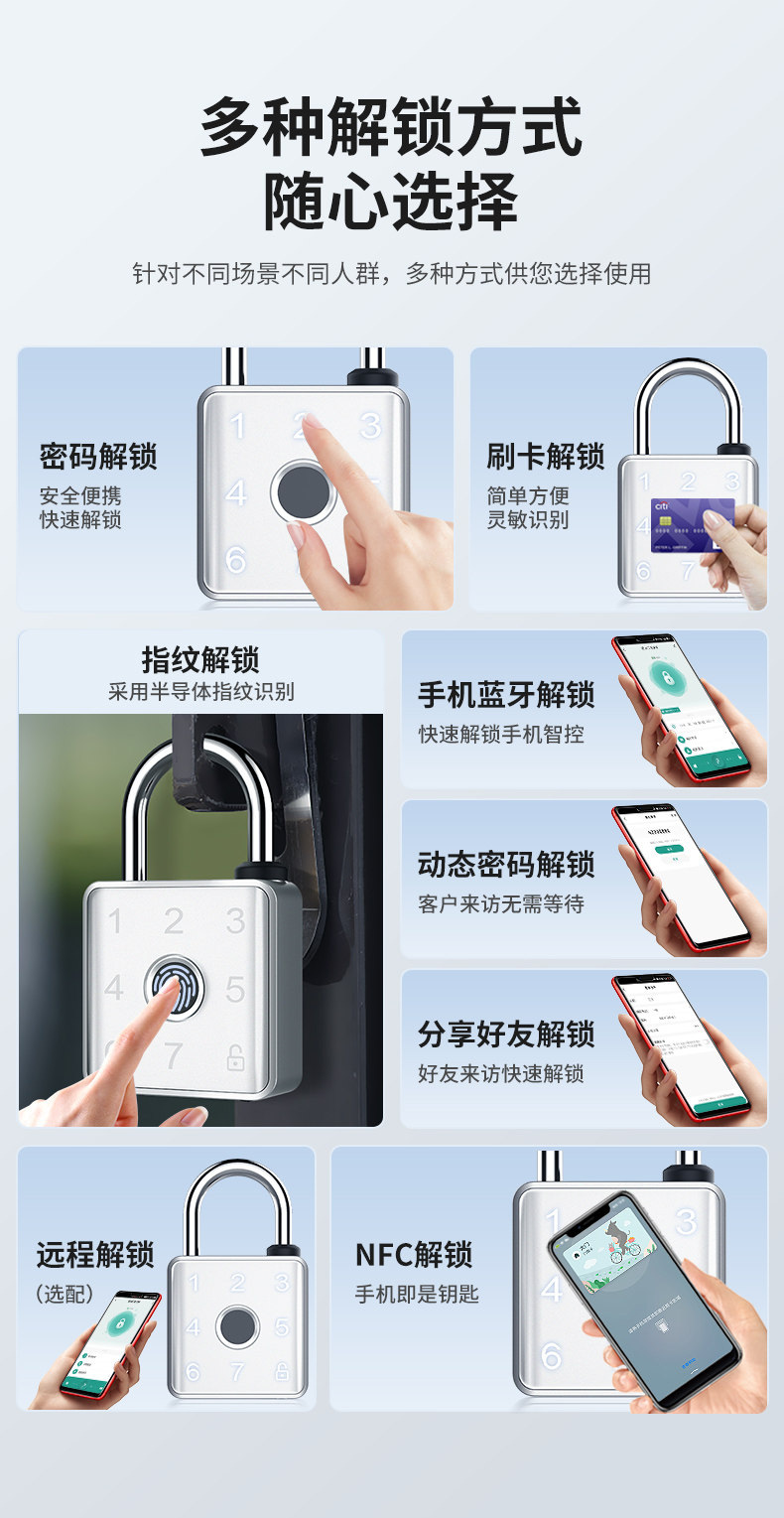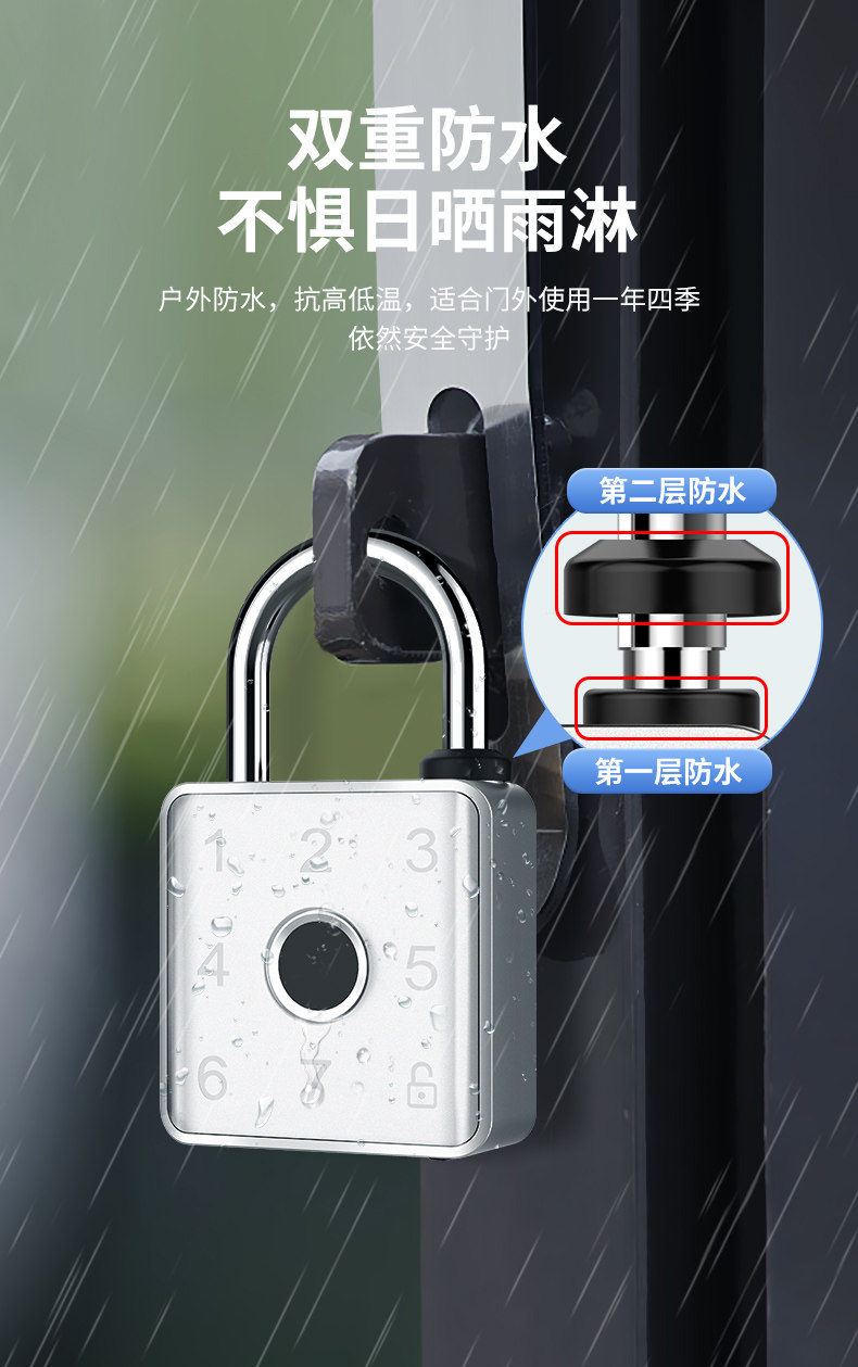| Color Classification | Silver Depth Waterproof Bluetooth Version[Fingerprint + Password + Mobile Phone + Temporary Password],Silver Depth Waterproof Card Swiping Bluetooth Version[Fingerprint + Password + Mobile Phone + Temporary Password + Card Swipe + Mobile Phone Nfc],Silver Depth Waterproof Network Version[Fingerprint + Password + Mobile Phone + Temporary Password + Card Swipe + Mobile Phone Nfc]Remote Unlocking,The Silver Bluetooth Version Is Not Waterproof[Fingerprint + Password + Mobile Phone + Temporary Password],Silver Card Swiping Bluetooth Version Is Not Waterproof[Fingerprint + Password + Mobile Phone + Temporary Password + Card Swipe + Mobile Phone Nfc],The Silver Network Version Is Not Waterproof[Fingerprint + Password + Mobile Phone + Temporary Password + Card Swipe + Mobile Phone Nfc]Remote Unlocking,Silver Fingerprint Padlock |