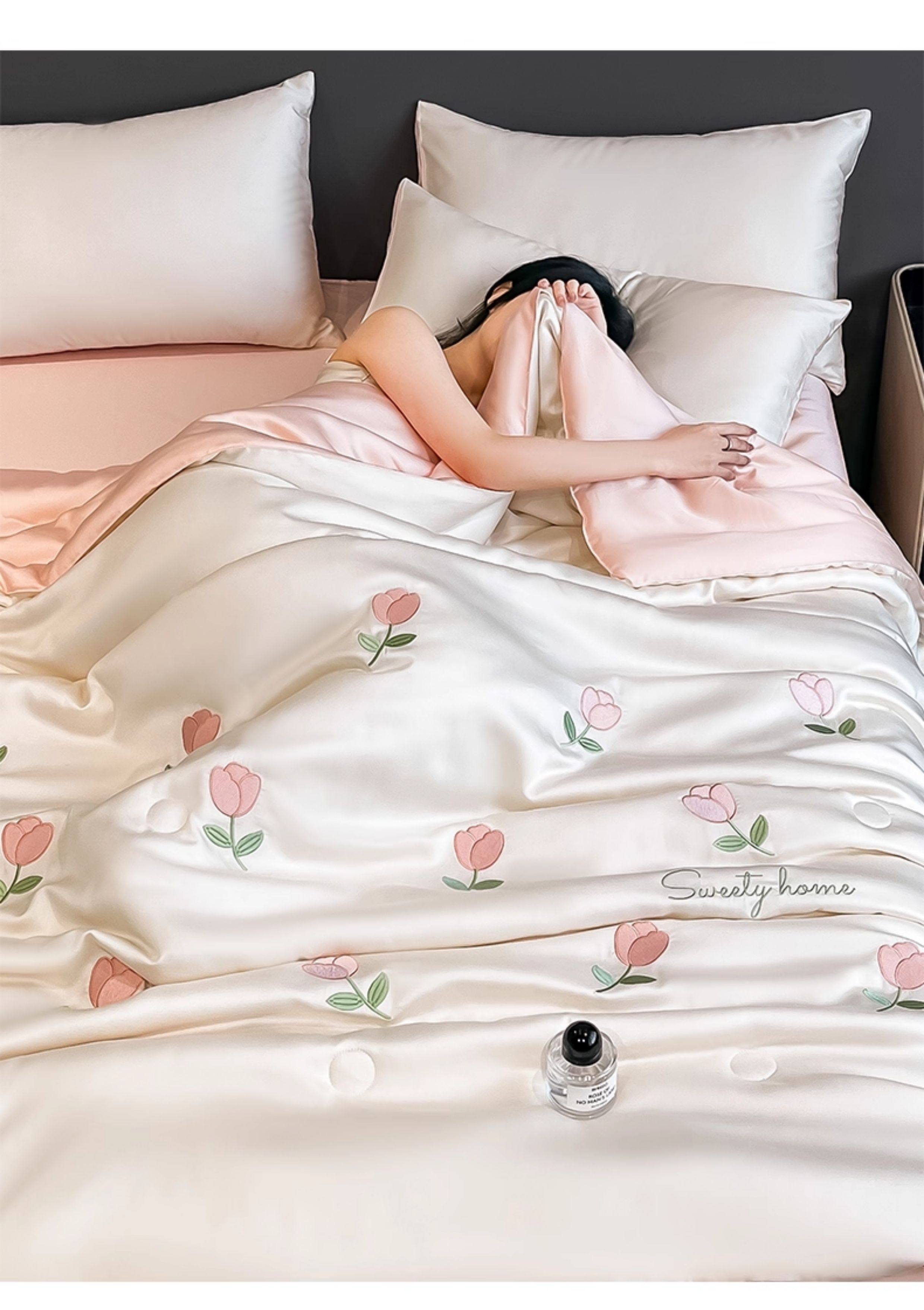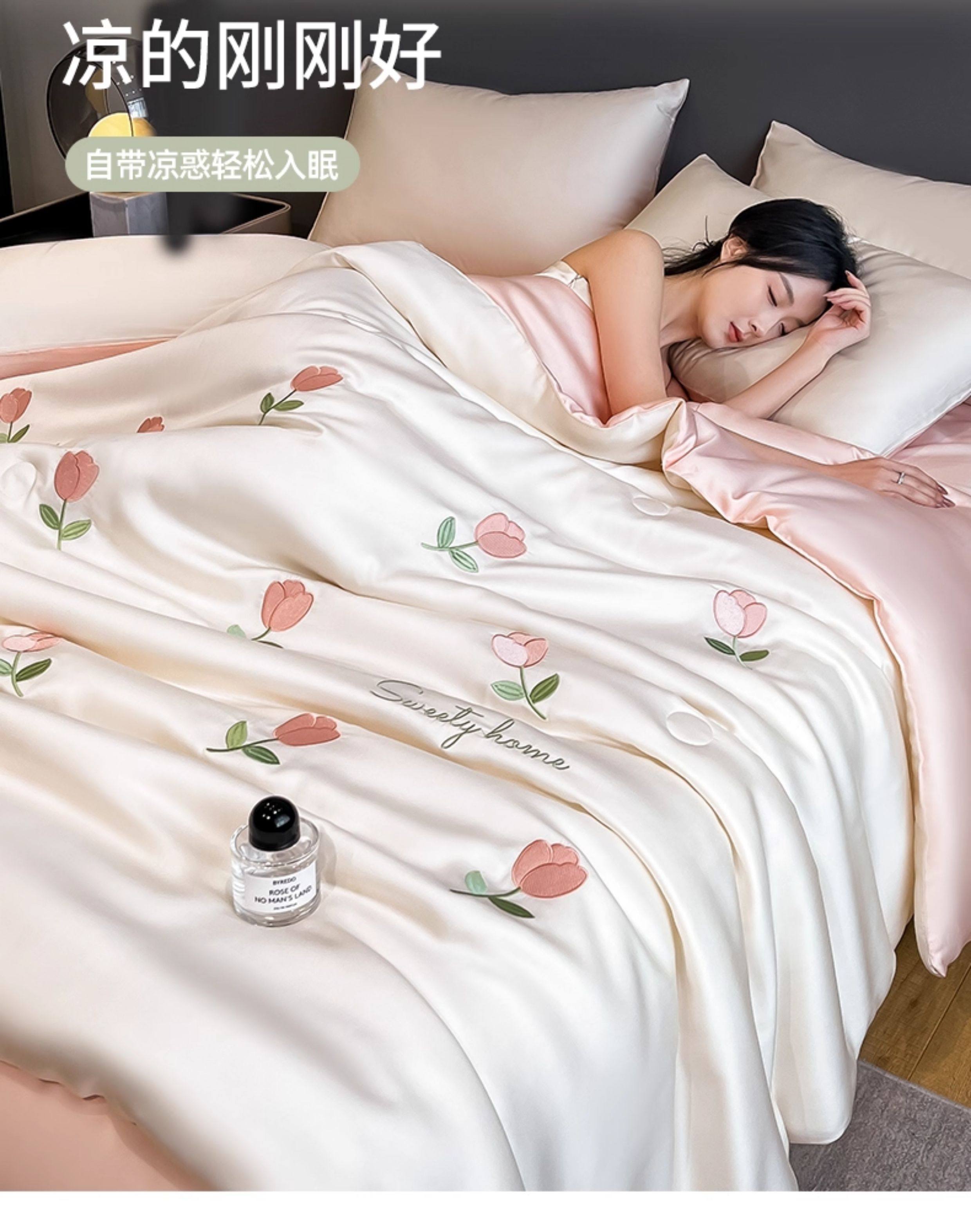 Summer Cooling Quilt, Ice Silk Summer Quilt, Air Conditioning Quilt Four-Piece Set, Machine Washable, Thin Quilt for Single or Double Beds