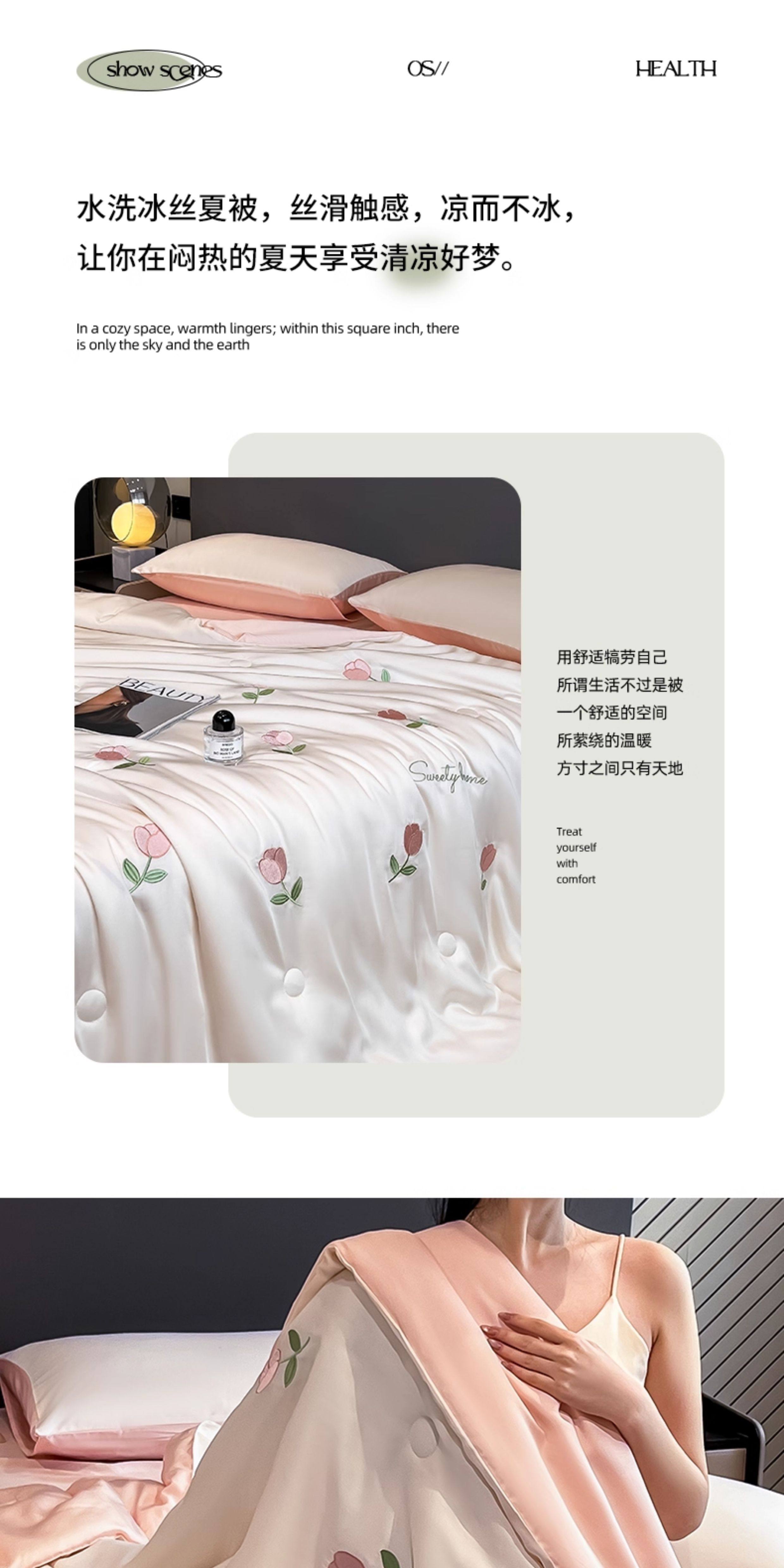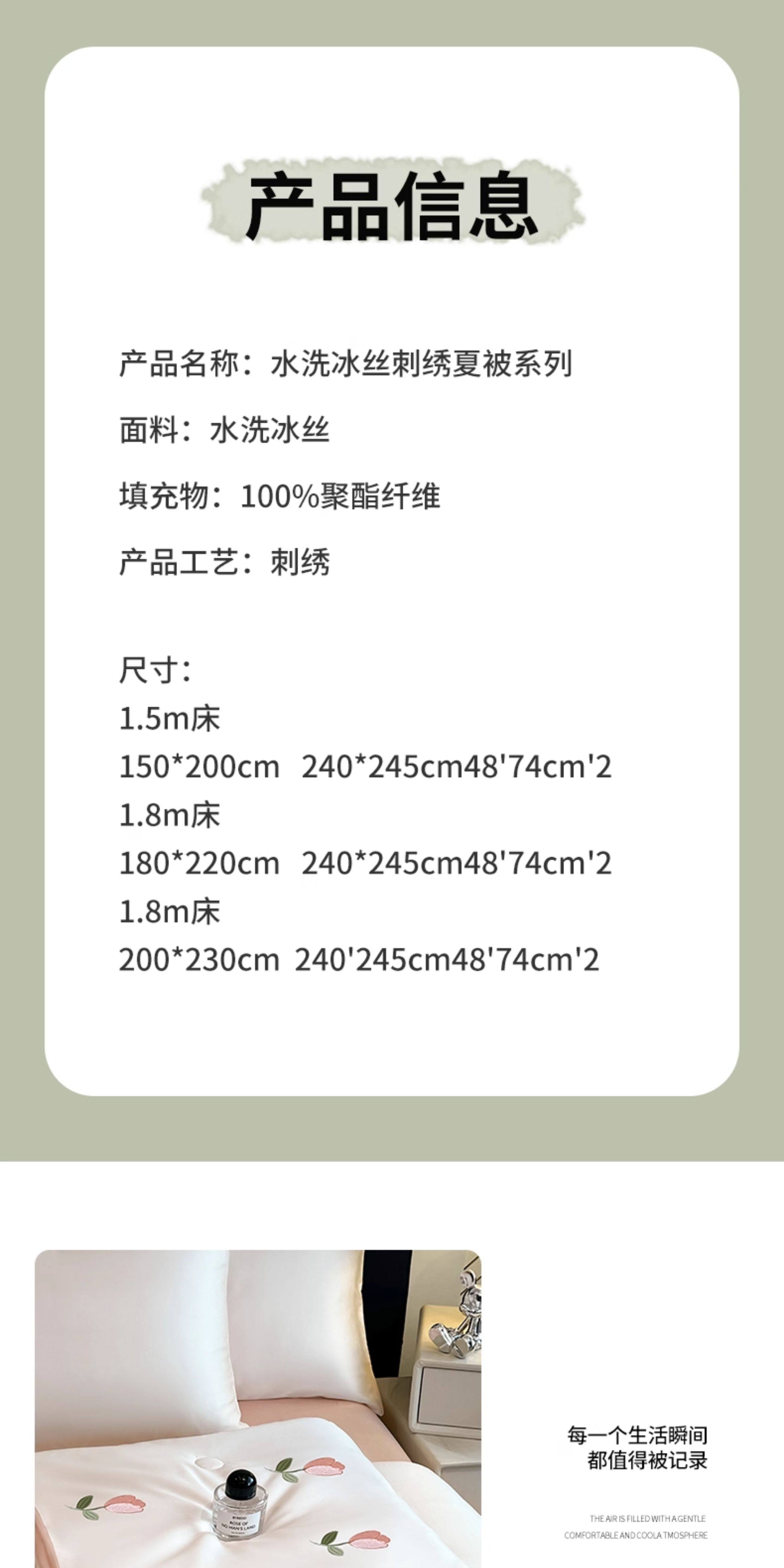 | Size | [Single Summer Quilt]150x200cm[Lightweight and Close-Fitting, Silky and Cool to the Touch],[Double Summer Quilt]180x200cm[Lightweight and Close-Fitting, Silky and Cool to the Touch],[Double Summer Quilt]200x230cm[Upgraded Class a Antibacterial and Anti-Mite Fabric],150X200Cm Three-Piece Summer Quilt Set[1.5m Summer Quilt + Pillowcase*2],180X220Cm Three-Piece Summer Quilt Set[1.8m Summer Quilt + Pillowcase*2],200X230Cm Three-Piece Summer Quilt Set[2.0m Summer Quilt + Pillowcase*2],150X200Cm Summer Quilt Four-Piece Set[1.5m Summer Quilt + Bed Sheet 240*245 + Pillowcase*2],180X220Cm Summer Quilt Four-Piece Set[1.8m Summer Quilt + Bed Sheet 240*245 + Pillowcase*2],200X230Cm Summer Quilt Four-Piece Set[2.0m Summer Quilt + Bed Sheet 240*245 + Pillowcase*2] |