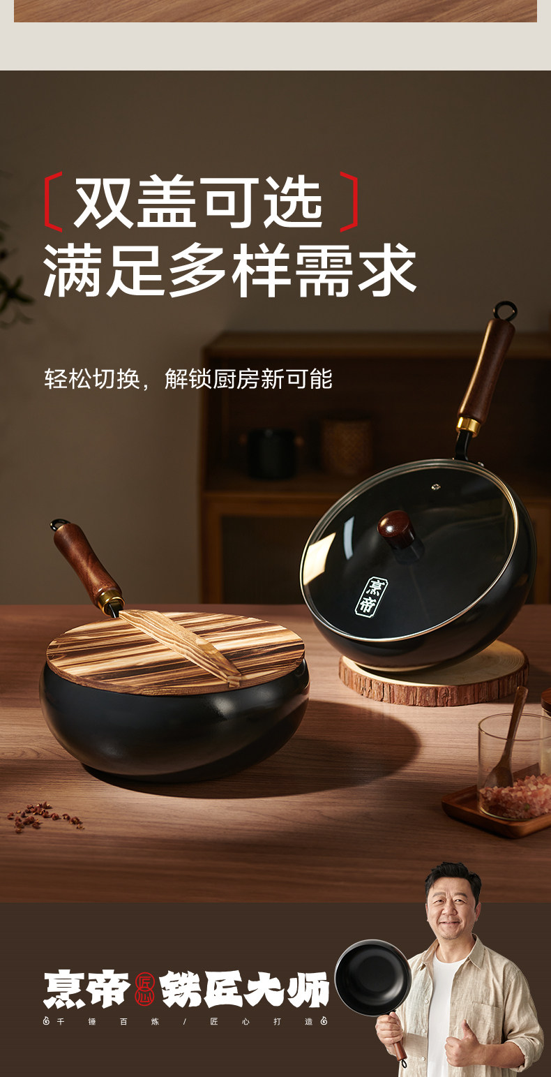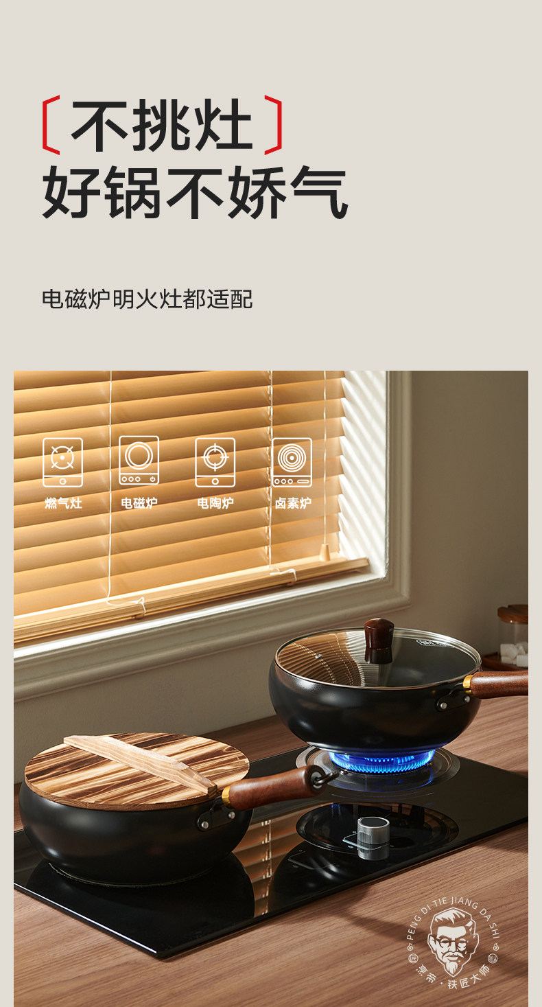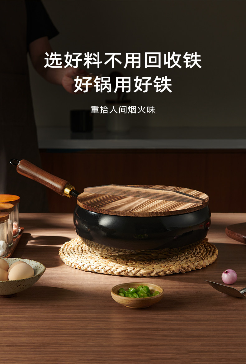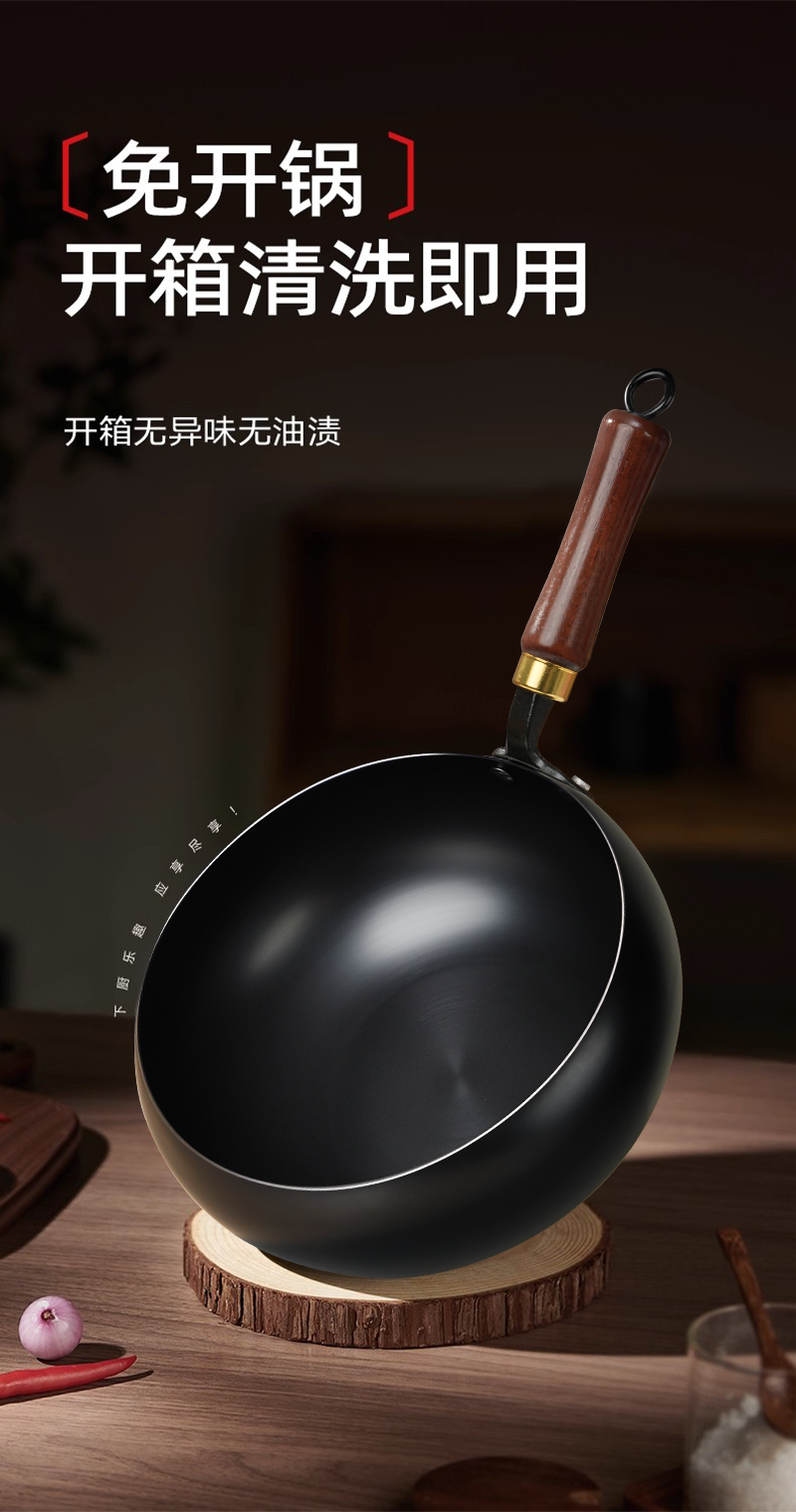 Fengdi Large Belly Iron Wok, Non-Stick Frying Pan for Home Cooking, Suitable for Gas Stoves and Induction Cookers, Zhangqiu Cookware Flagship Store