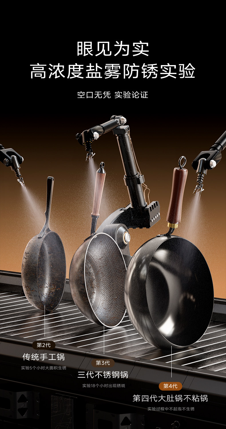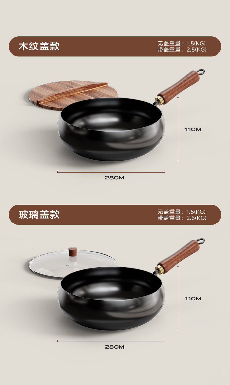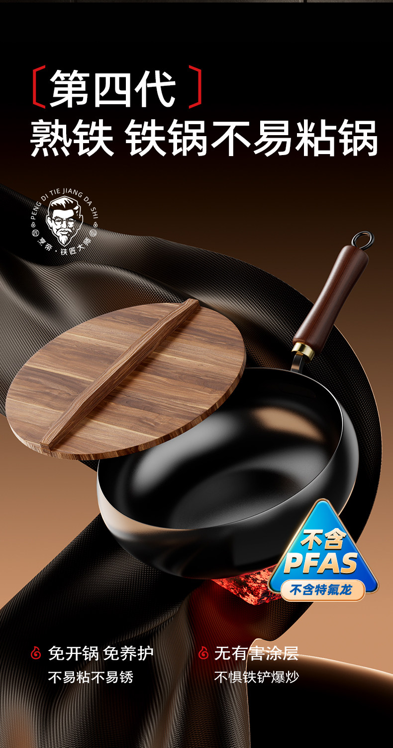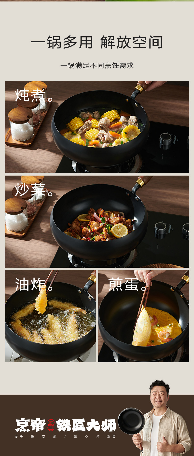 Fengdi Large Belly Iron Wok, Non-Stick Frying Pan for Home Cooking, Suitable for Gas Stoves and Induction Cookers, Zhangqiu Cookware Flagship Store