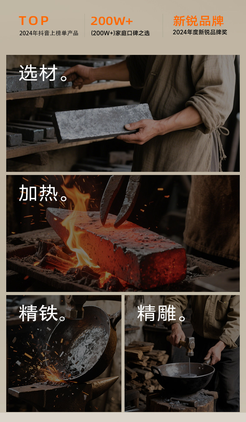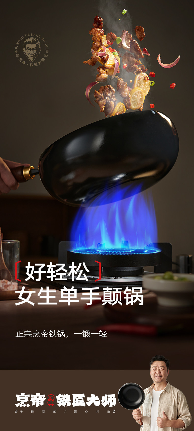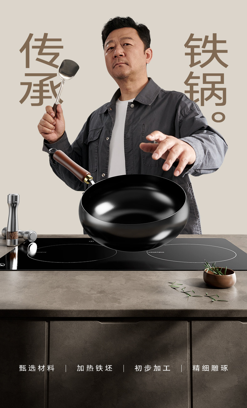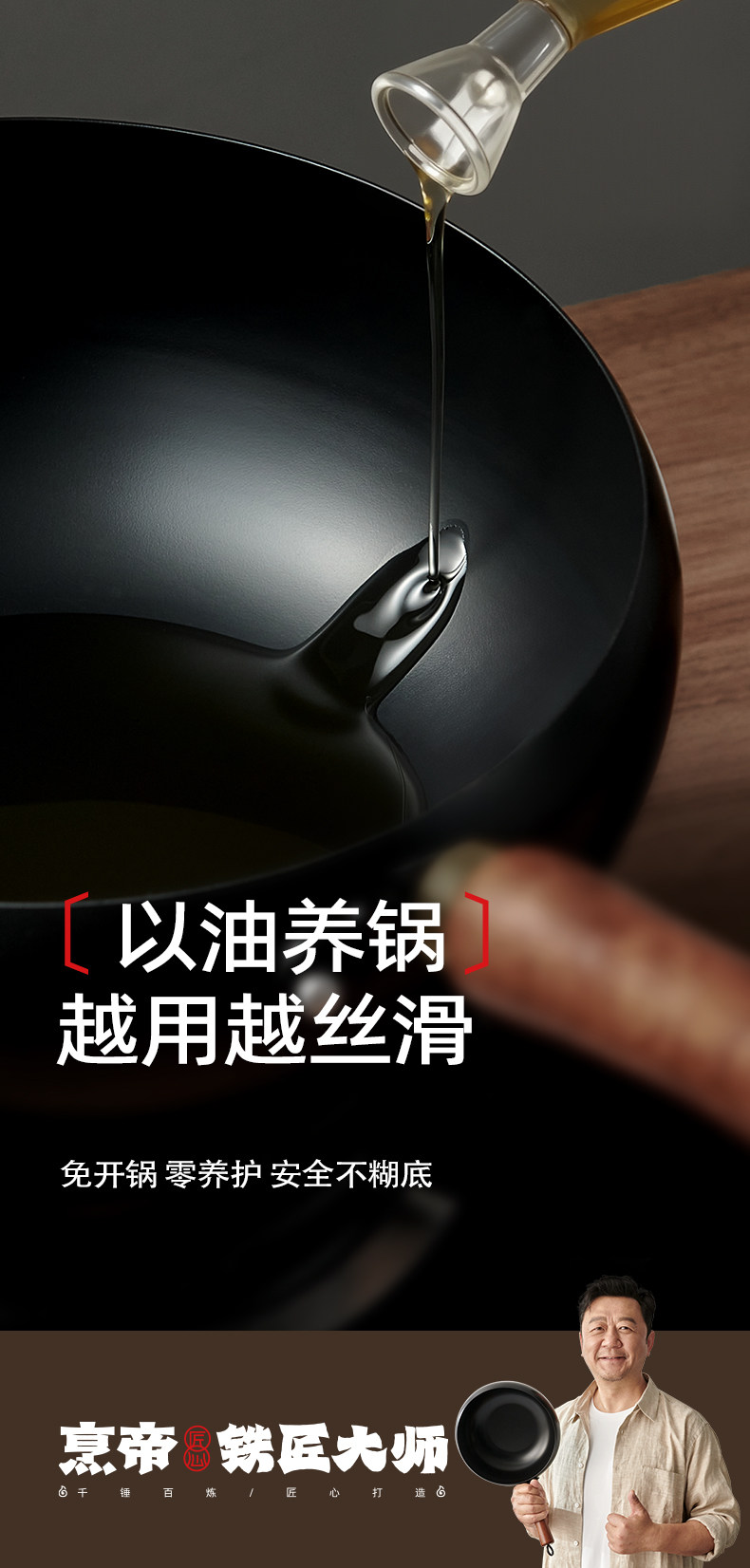 Fengdi Large Belly Iron Wok, Non-Stick Frying Pan for Home Cooking, Suitable for Gas Stoves and Induction Cookers, Zhangqiu Cookware Flagship Store