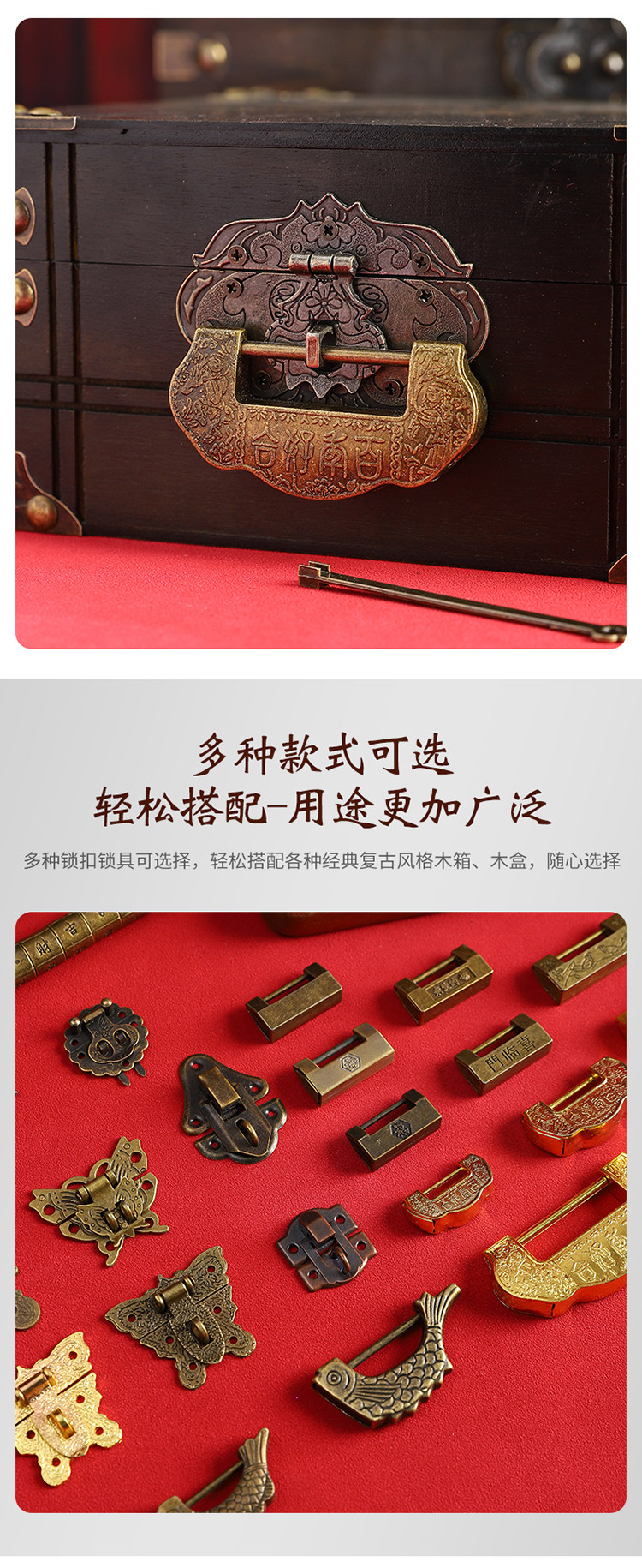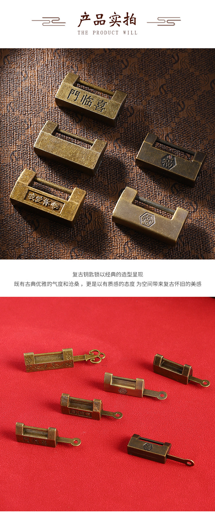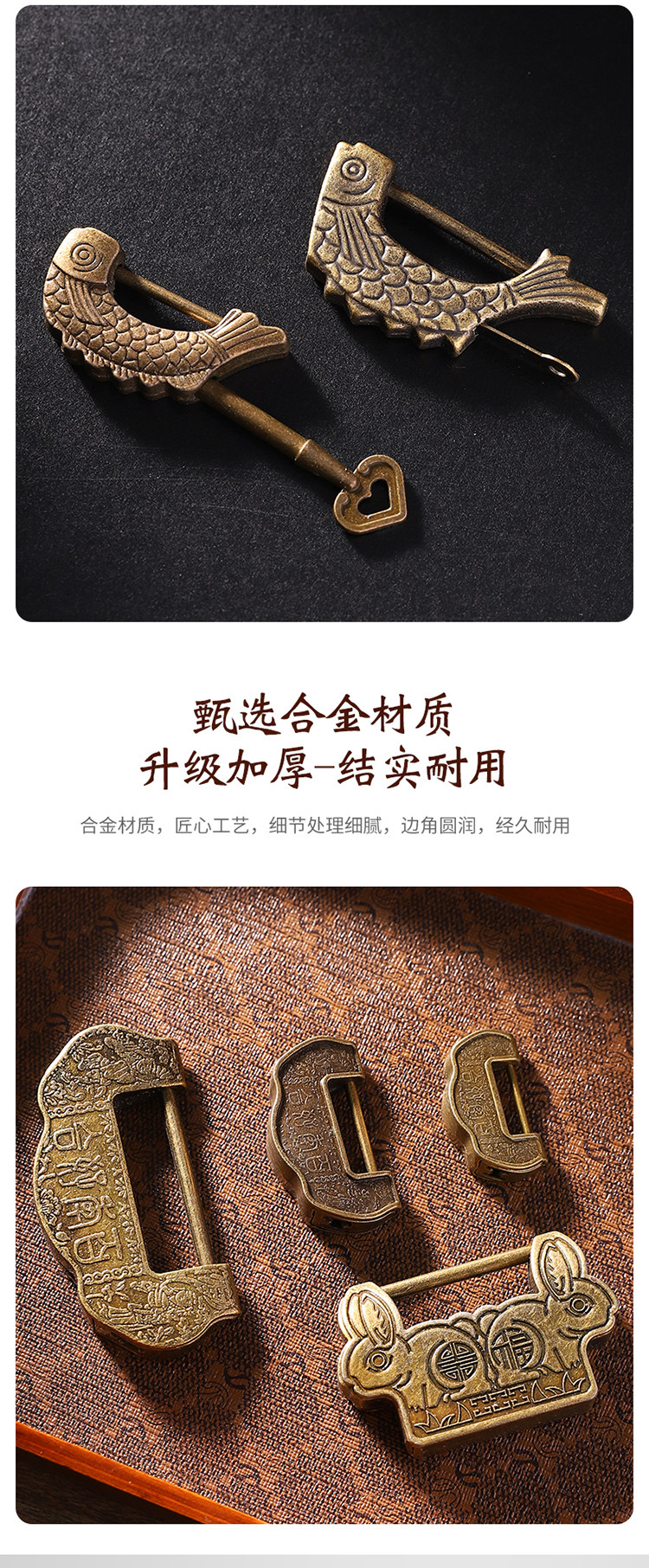 Antique Lock, Lock Buckle, Jewelry Wooden Box, Small Lock, Chinese Retro Mini Key, Ancient Lock, Combination Lock, Old-Fashioned Copper Lock