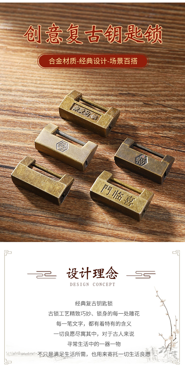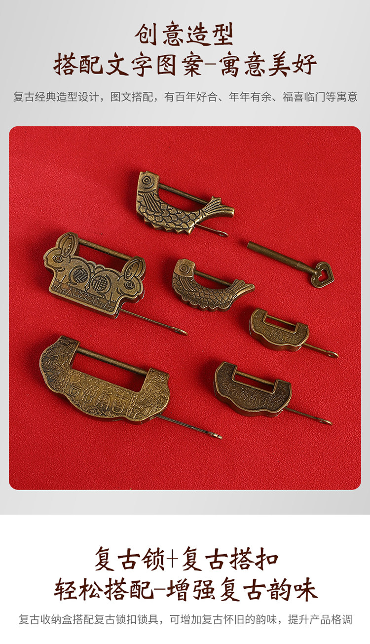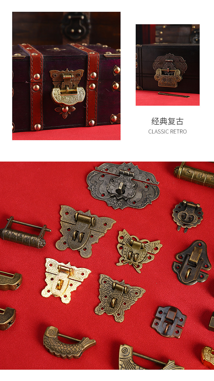 Antique Lock, Lock Buckle, Jewelry Wooden Box, Small Lock, Chinese Retro Mini Key, Ancient Lock, Combination Lock, Old-Fashioned Copper Lock