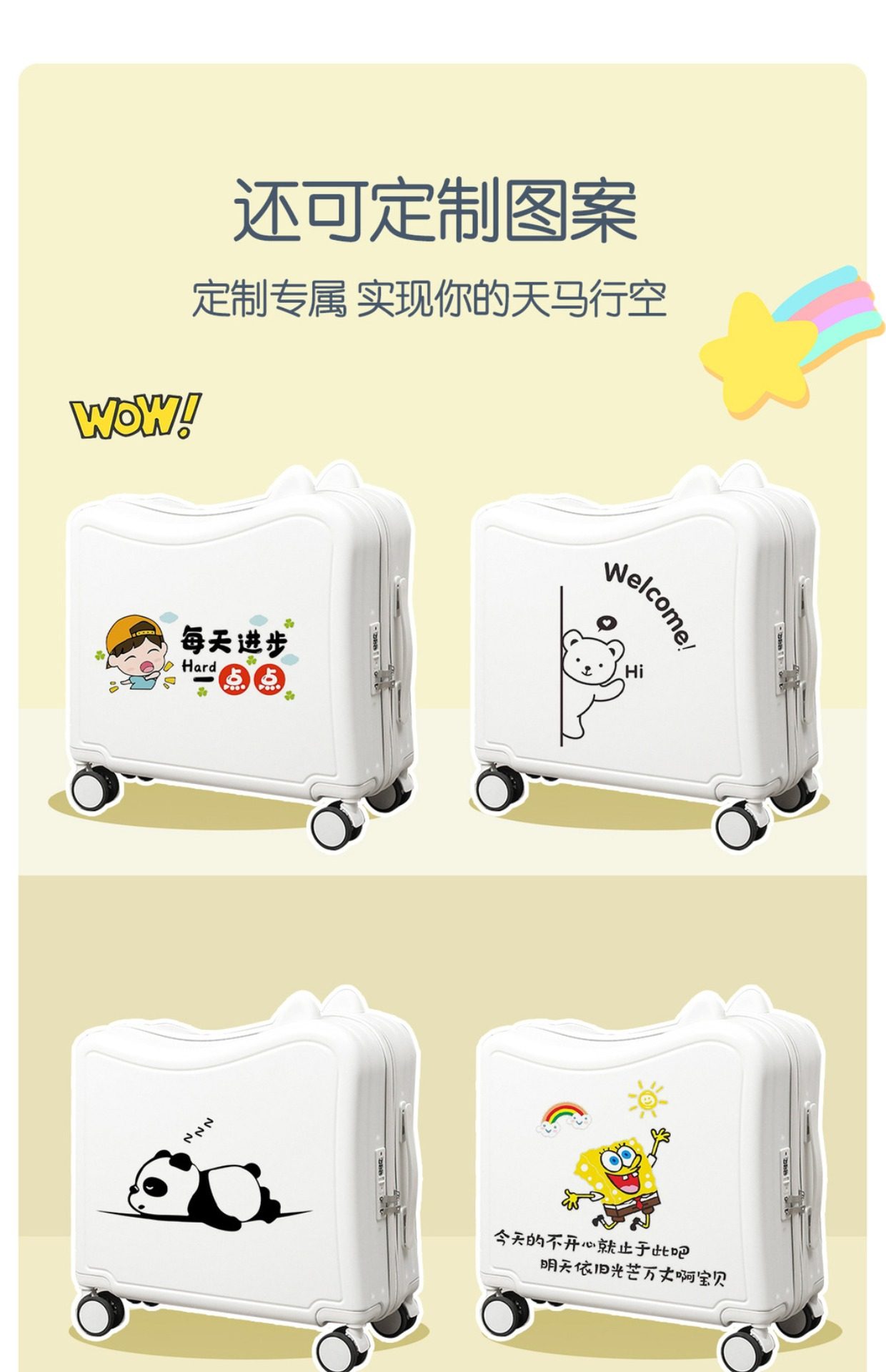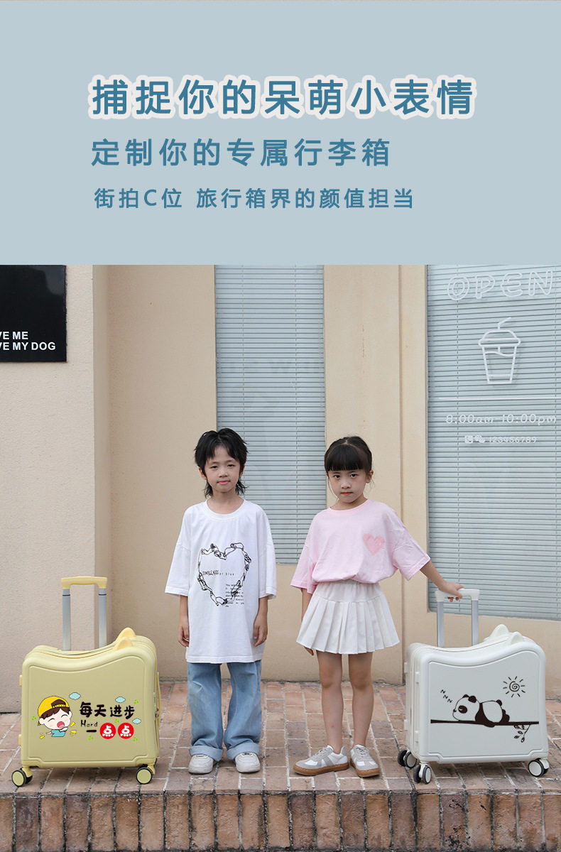 Cartoon Cute Children's Suitcase, Can Be Used as a Seat, Multifunctional Lightweight Trolley Case, Can Slide, Two-In-One