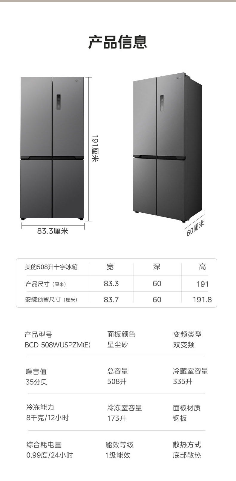 Midea Refrigerator Model Bcd-508Wuspzm (E),Bcd-508Wuspzm(E) Stardust Sand