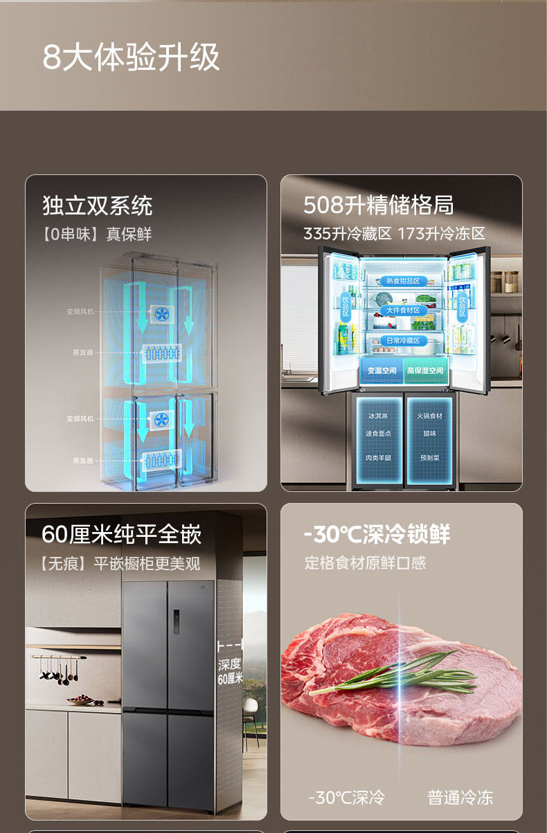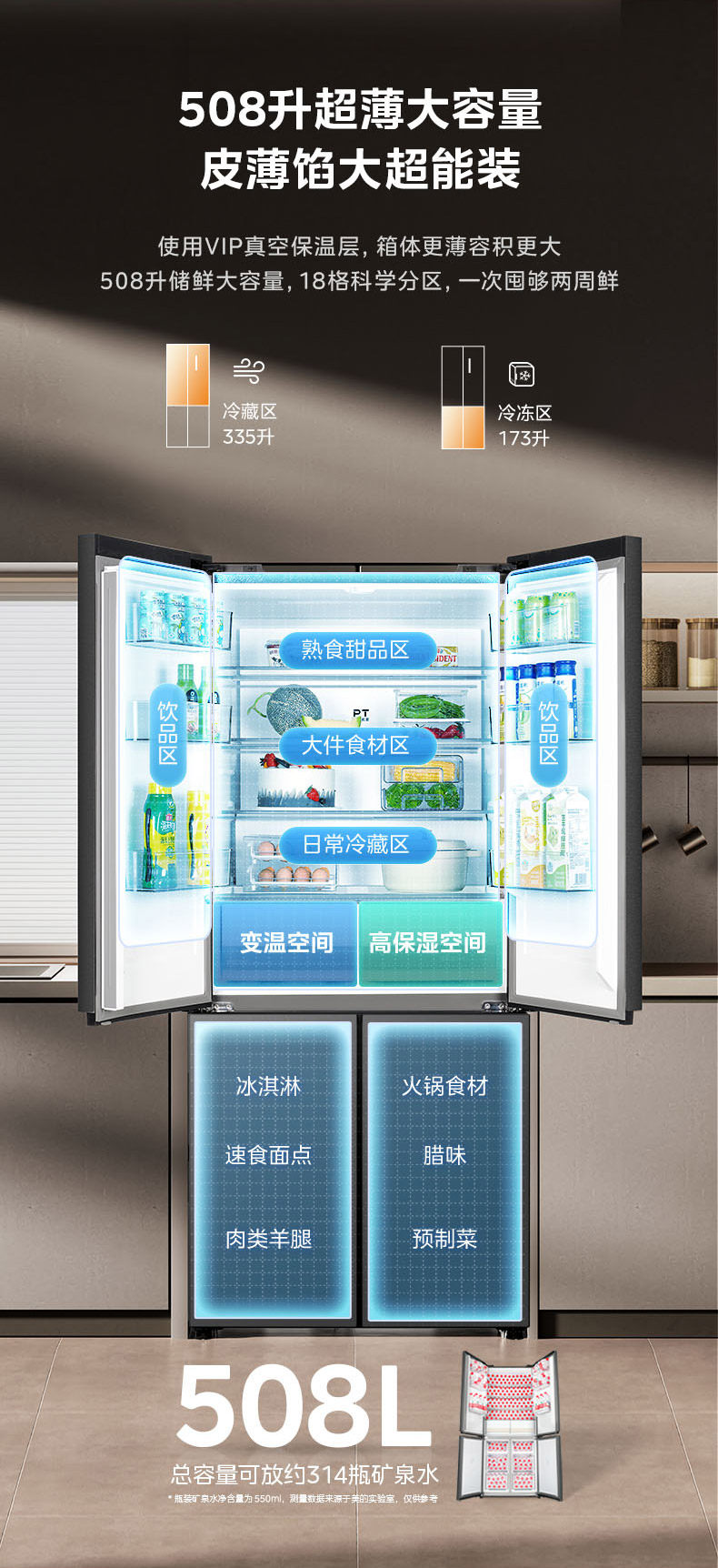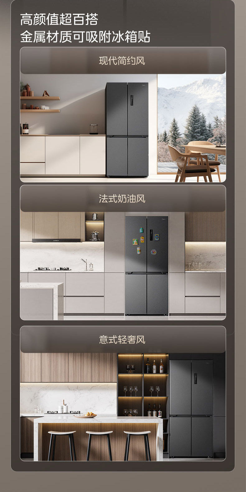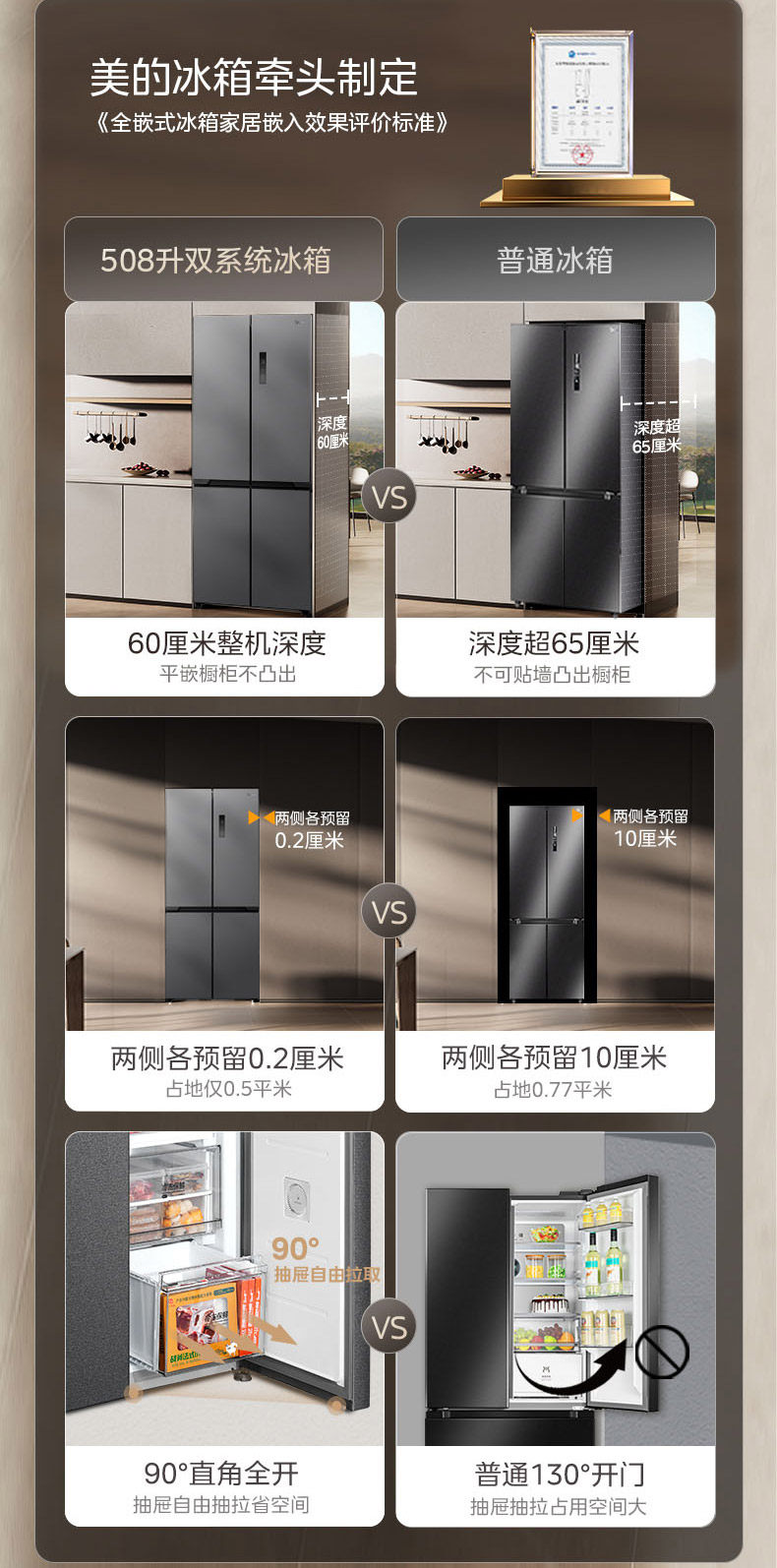 [Dual System]Midea 508 Ultra-Thin Zero-Embedded Refrigerator Cross Double-Door Four-Door Household Large Capacity Air-Cooled