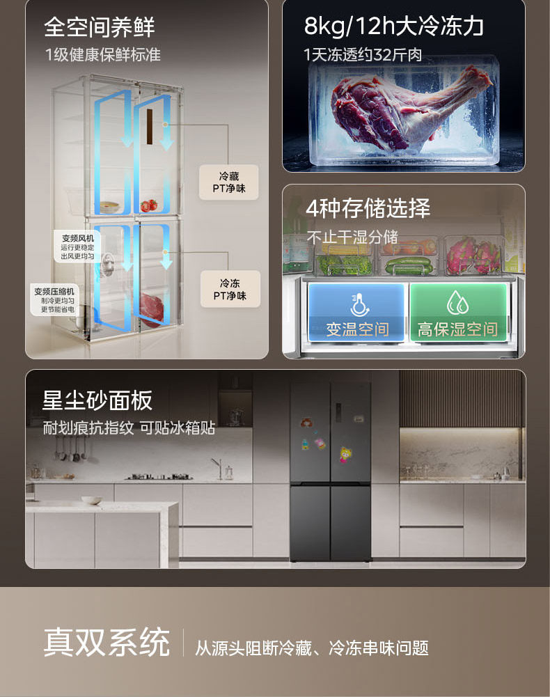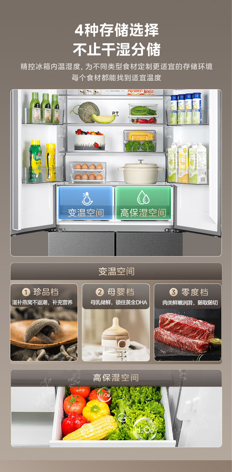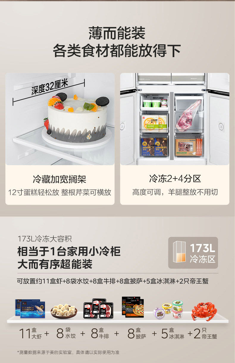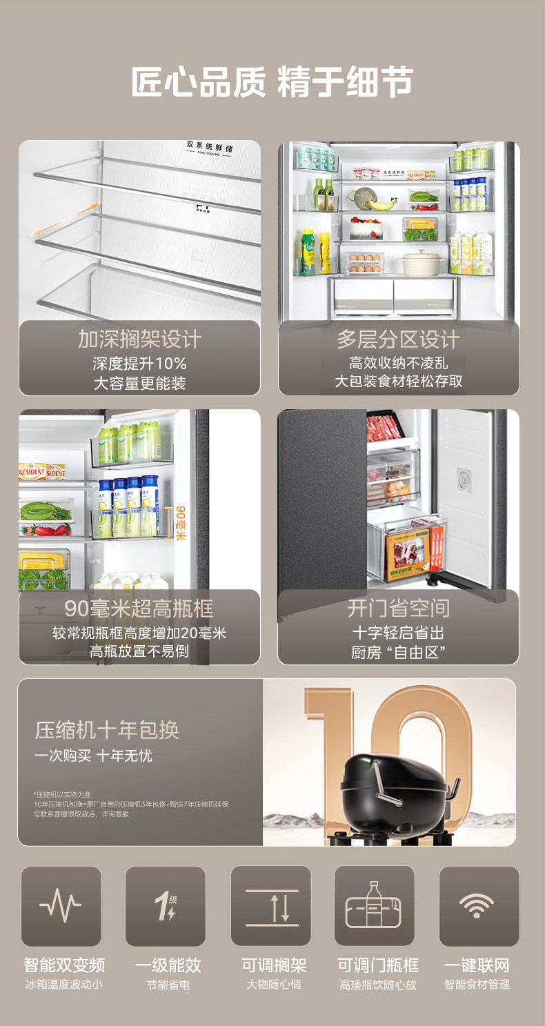[Dual System]Midea 508 Ultra-Thin Zero-Embedded Refrigerator Cross Double-Door Four-Door Household Large Capacity Air-Cooled