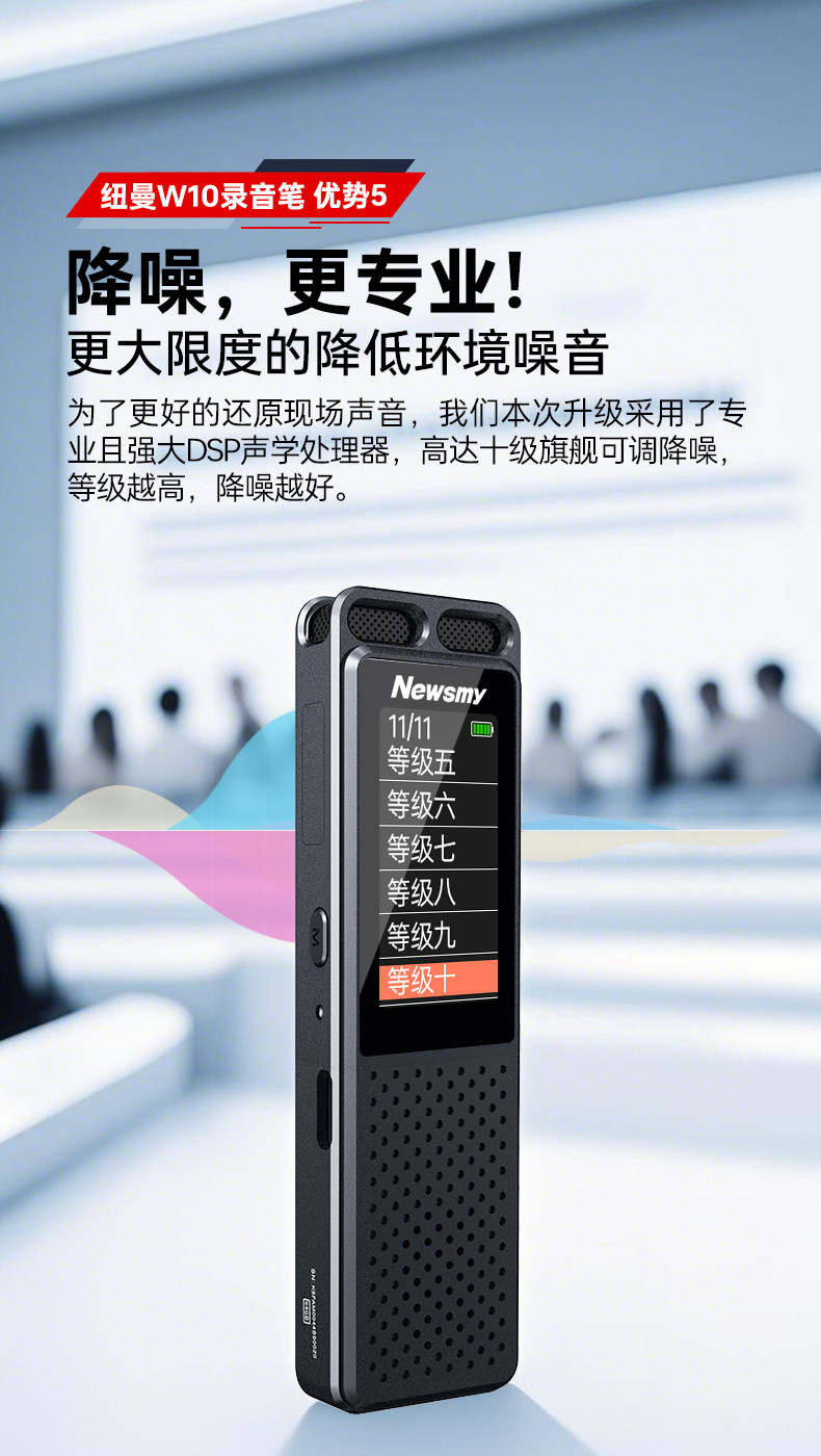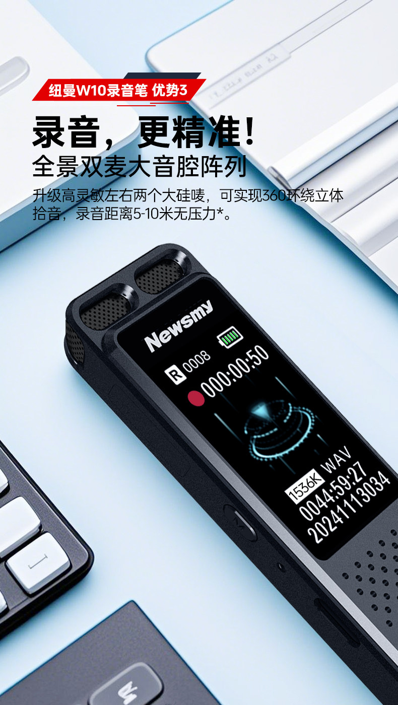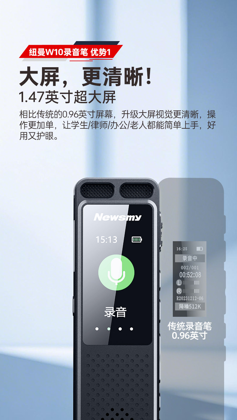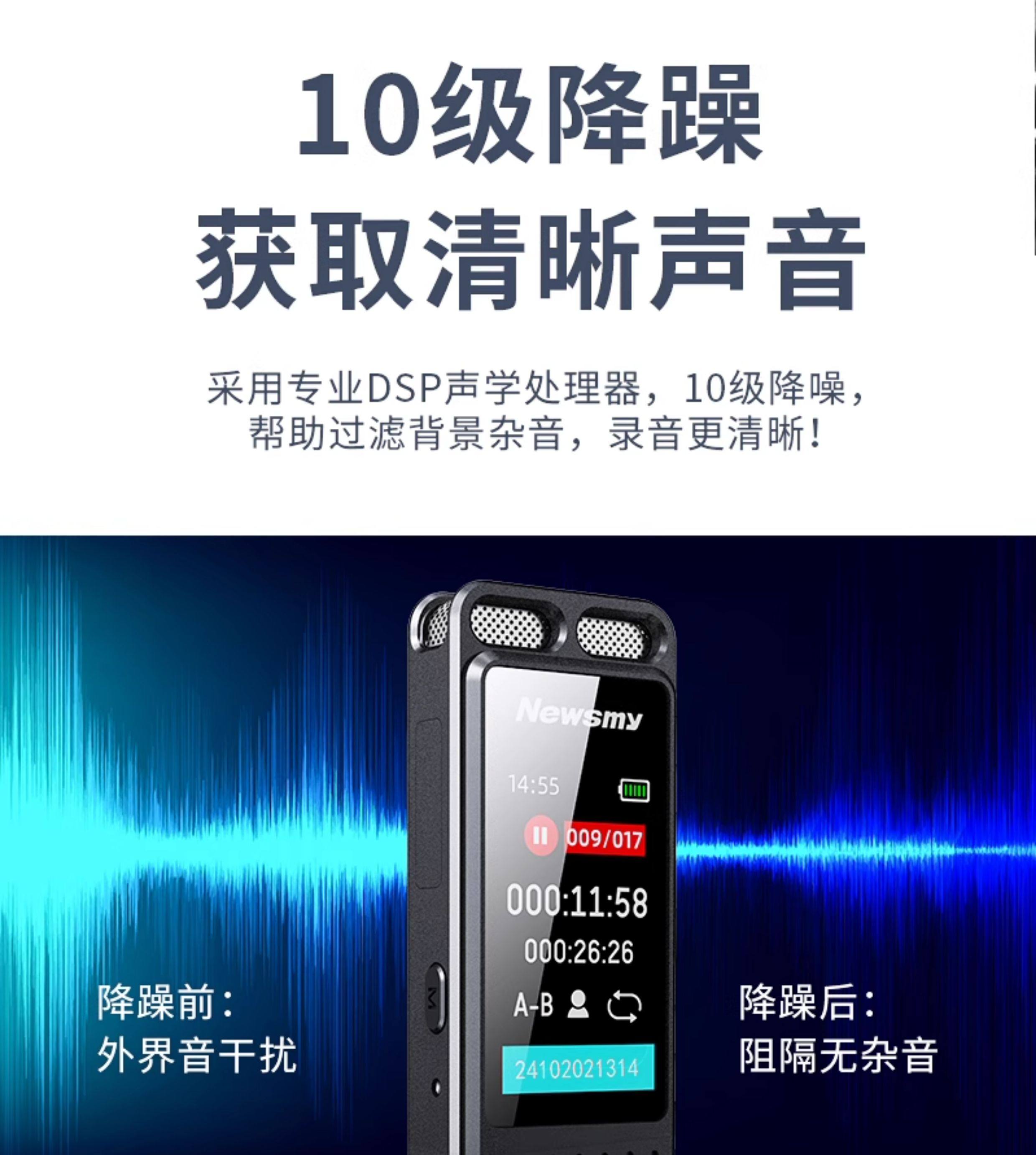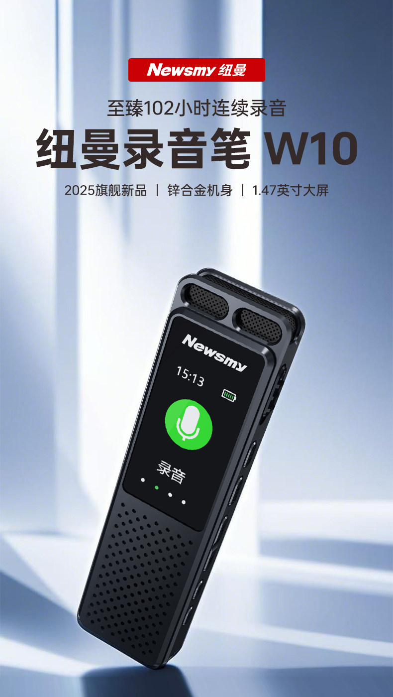 Newman W10 Voice Recorder Professional High-Definition Noise Reduction Device for Students and Lawyers, Can Convert Speech to Text, Portable Large-Capacity Device