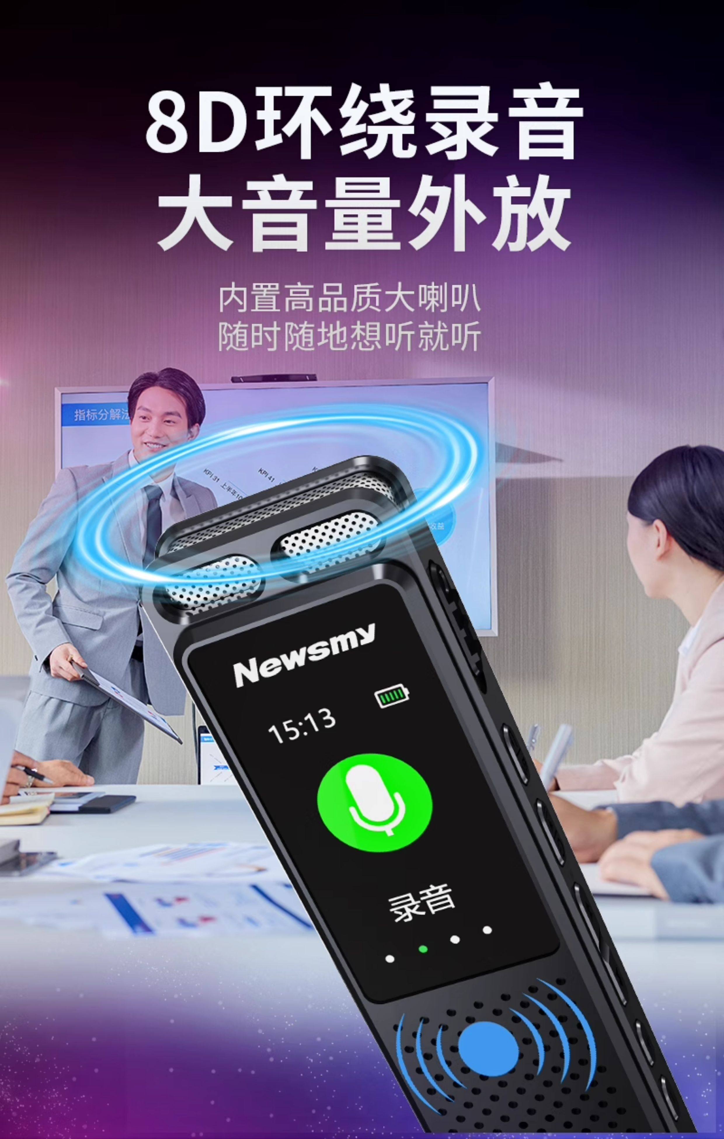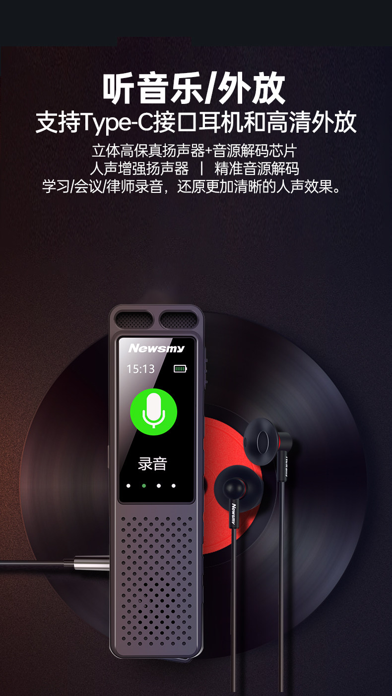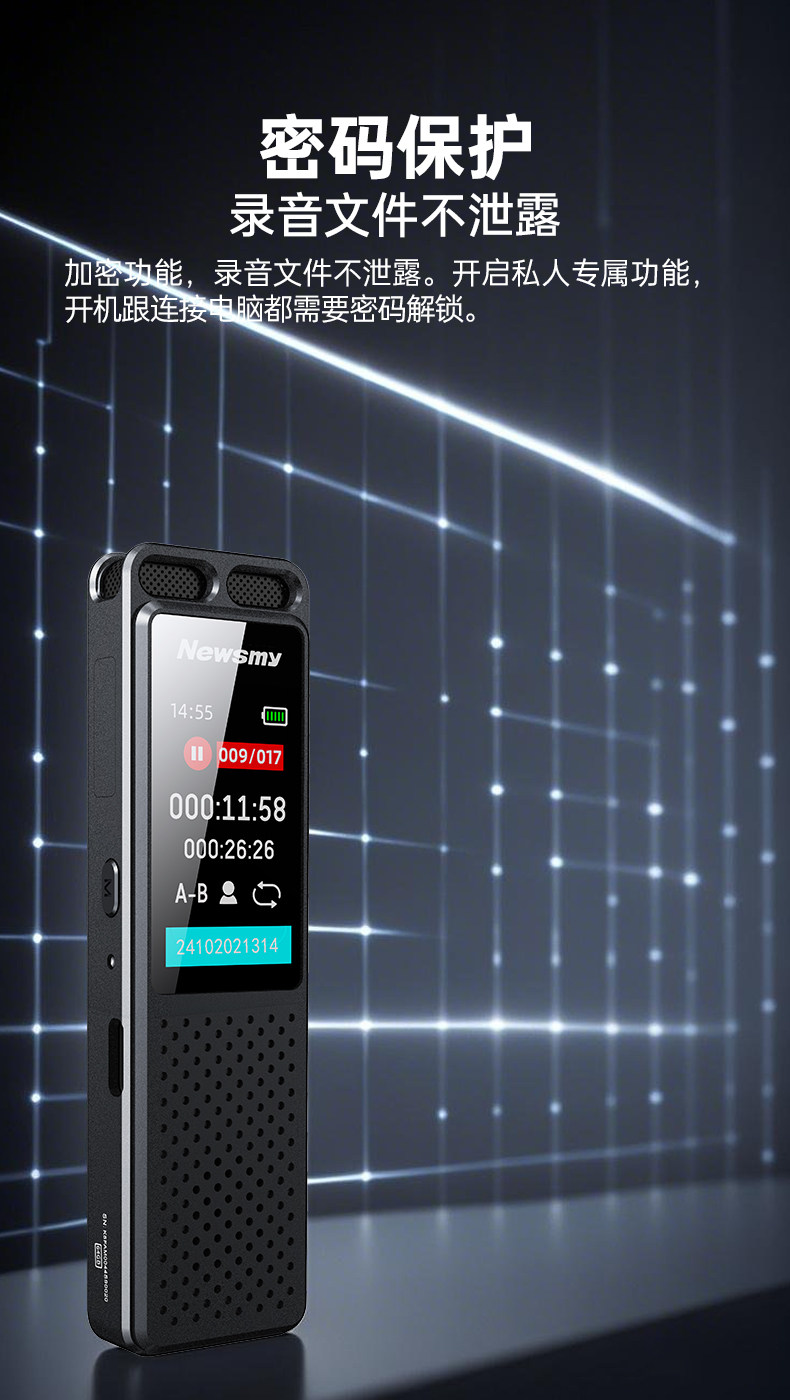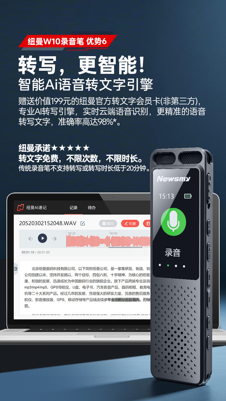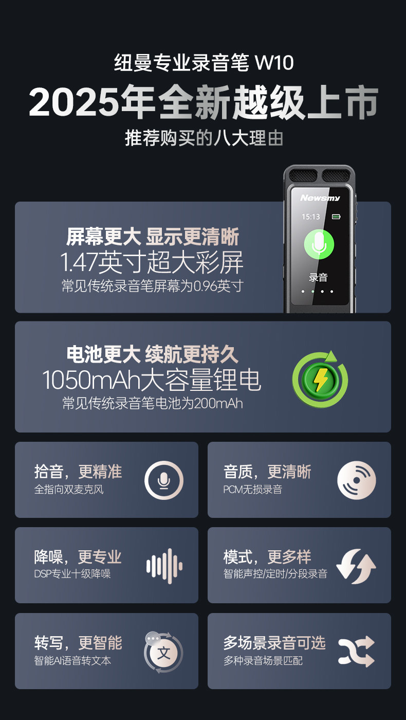 Newman W10 Voice Recorder Professional High-Definition Noise Reduction Device for Students and Lawyers, Can Convert Speech to Text, Portable Large-Capacity Device