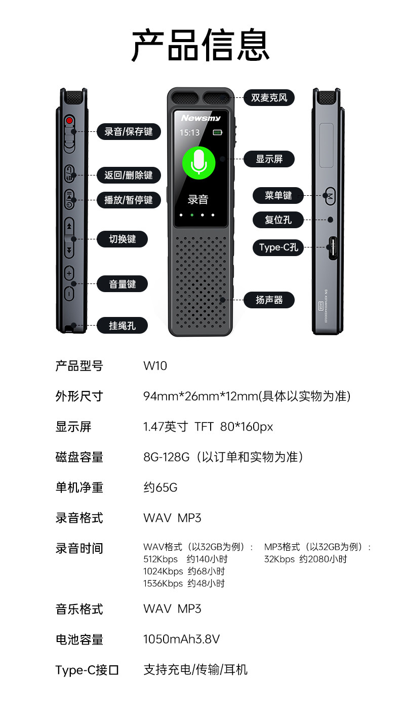 | Memory Capacity | 32G[Office/Meeting/Study]Buy This,64G[Business/Lawyer/Home]I Suggest This,128G[Extra Large Memory]Record with Confidence |