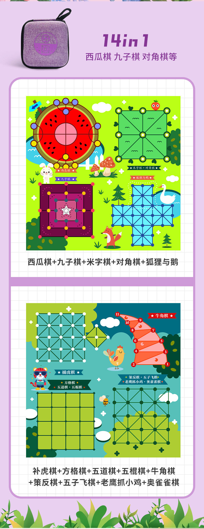 | Color Classification | Backgammon + Goose Chess[2-in-1],Snake Chess + Double Checkers[2-in-1],Beast Chess + Flying Chess[2-in-1],[2 Boxes]Snake Chess + Double Checkers + Beast Chess + Flying Chess,[2 Boxes]Backgammon + Goose Chess + Beast Chess + Flying Chess,[Complete Set of 3 Boxes]Portable Chess |