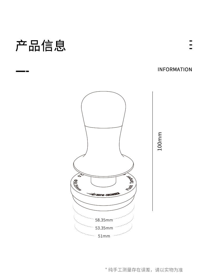 Mhw-3Bomber Bomber Blitz Constant Force Tamper Espresso Coffee Tamper Set 51/53/58mm