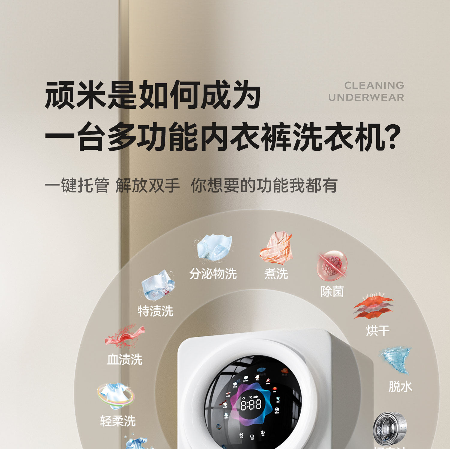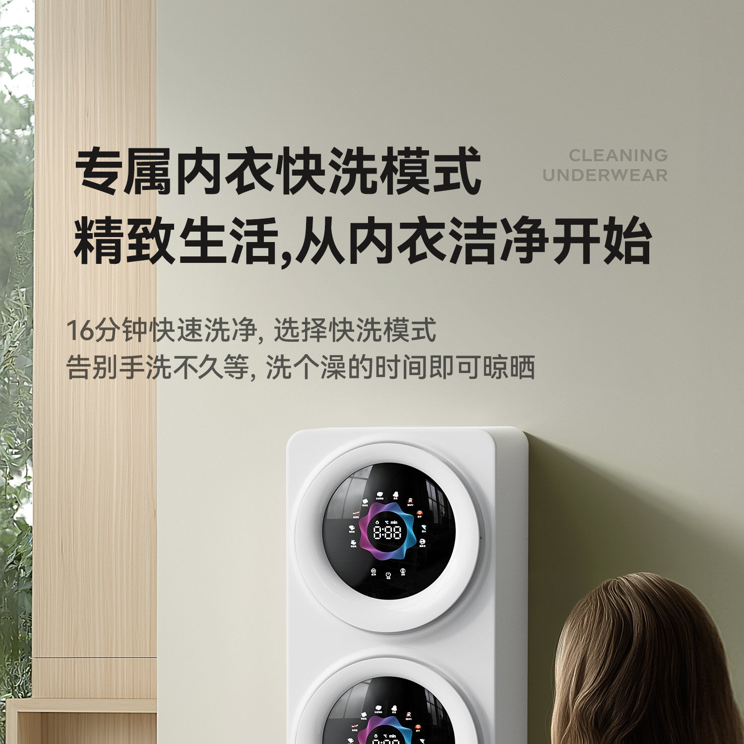 Mini Automatic Washing Machine for Underwear and Socks, Wall-Mounted, Dual-Tub, Compact, for Lazy People