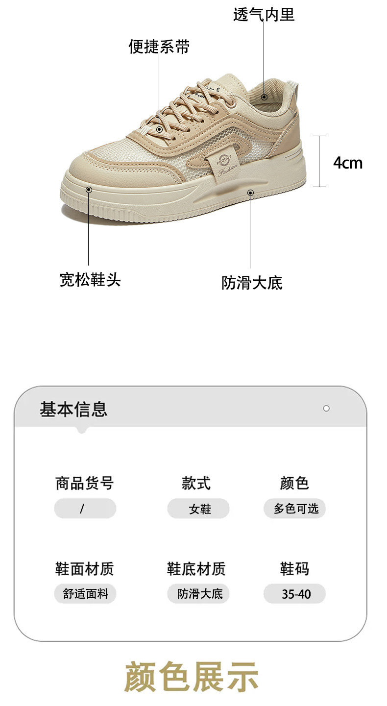 2025 New Spring and Summer Versatile Mesh Breathable Casual Shoes Student Sneakers Women's Non-Slip Shoes White Women's Shoes