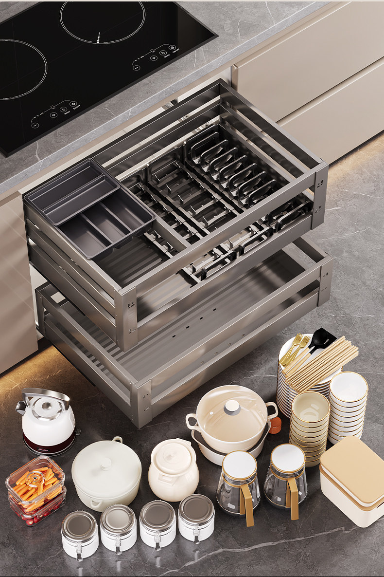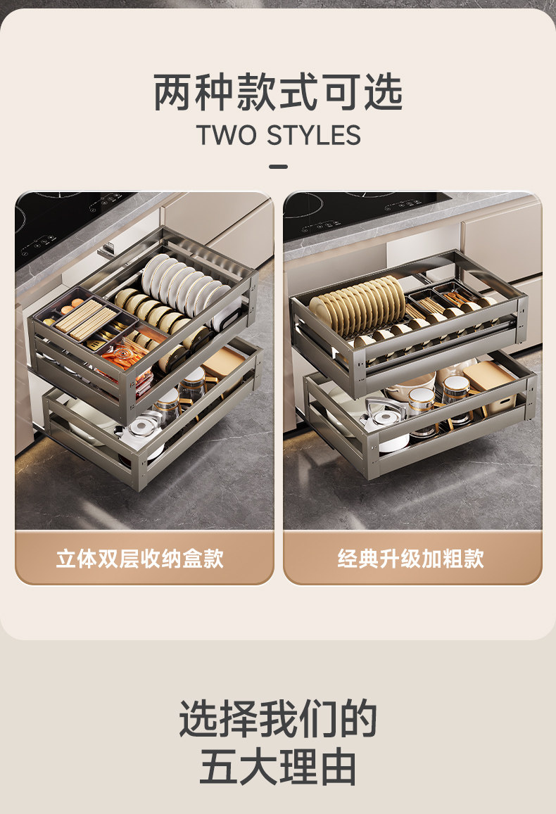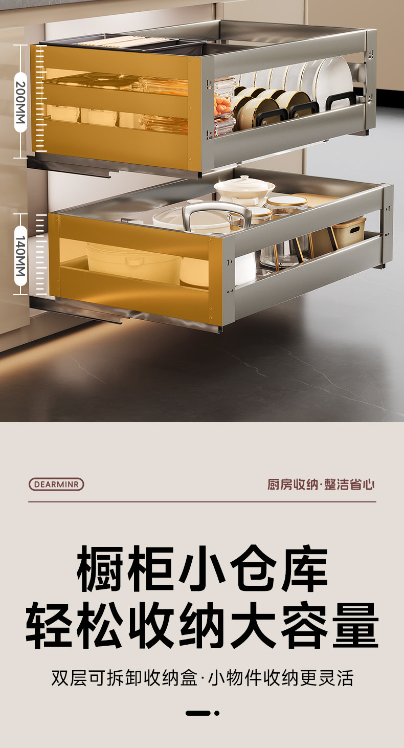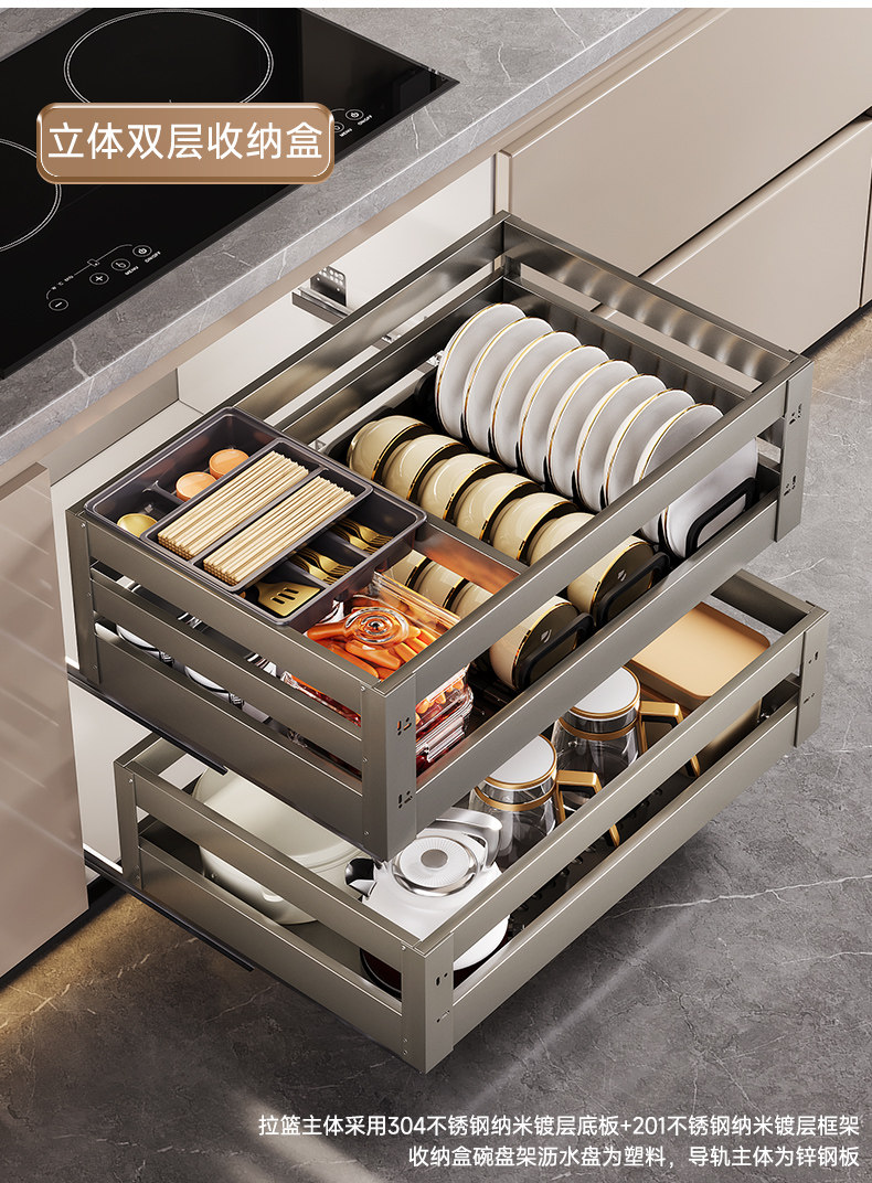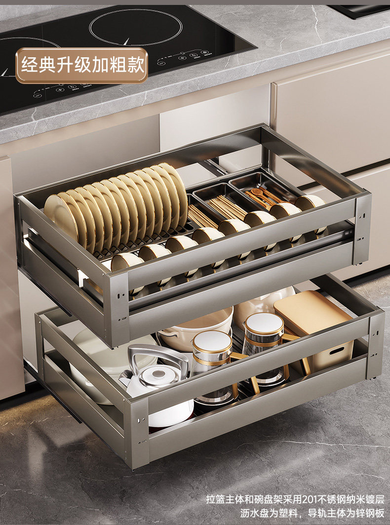 Murini Basket Kitchen Cabinet 304 Stainless Steel Double-Layer Drawer-Type Bowl Rack Storage Plate Dish Kitchen Cabinet Bowl Basket