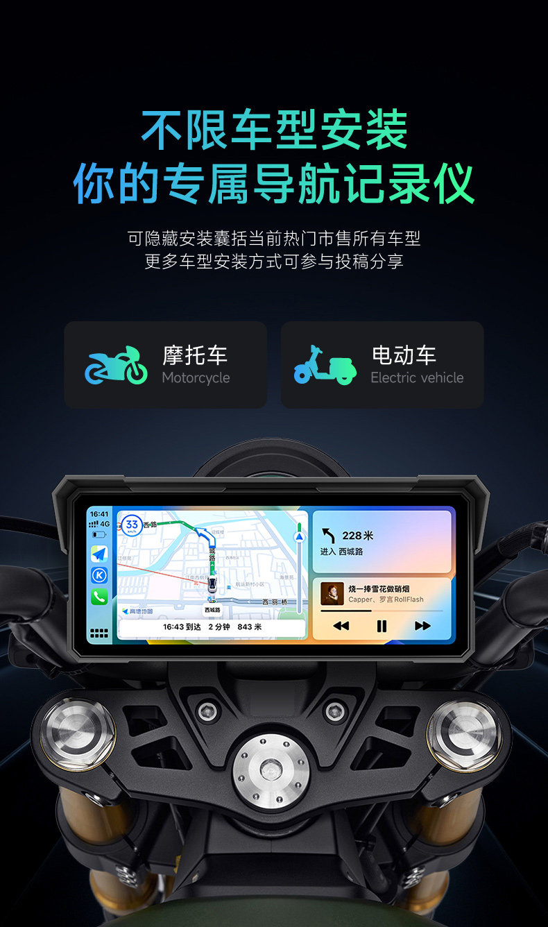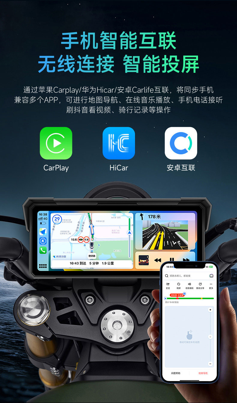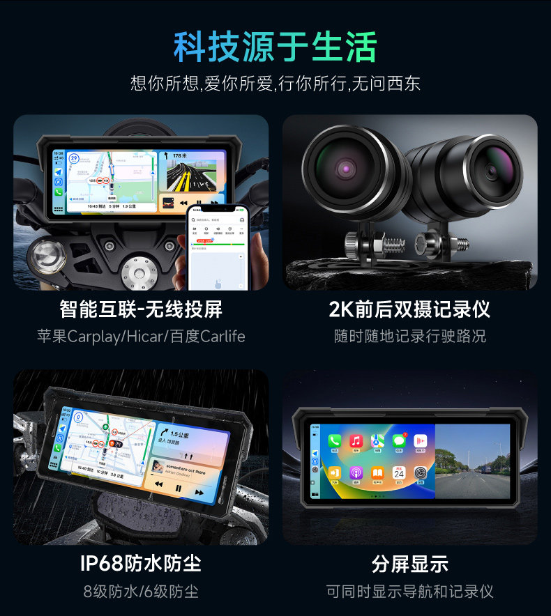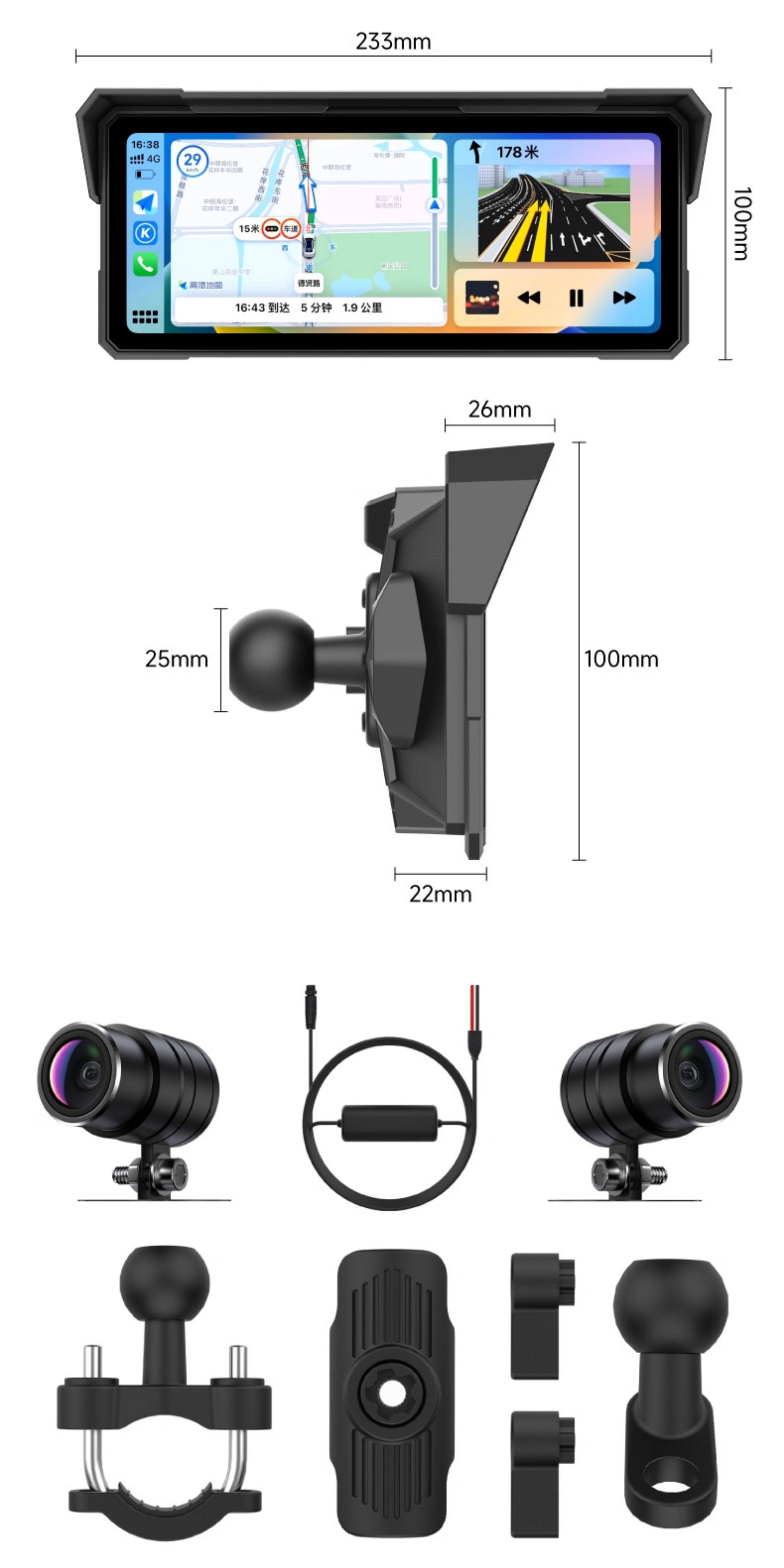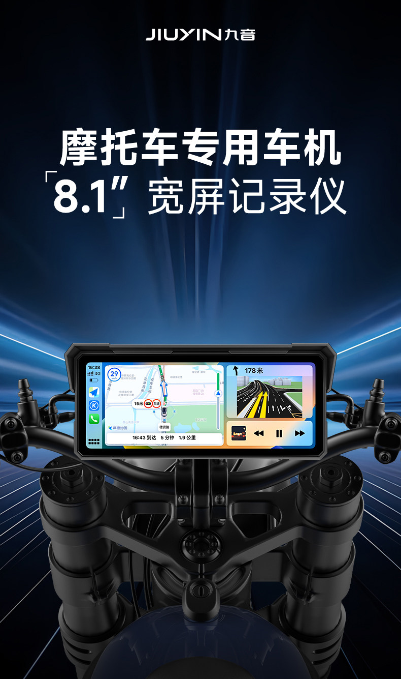 Jiuyin Motorcycle-Specific Smart Navigation Device Carplay Motorcycle Driving Recorder All-In-One 2K