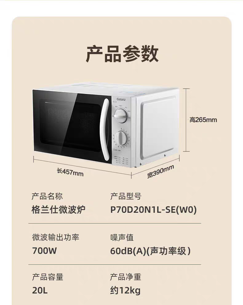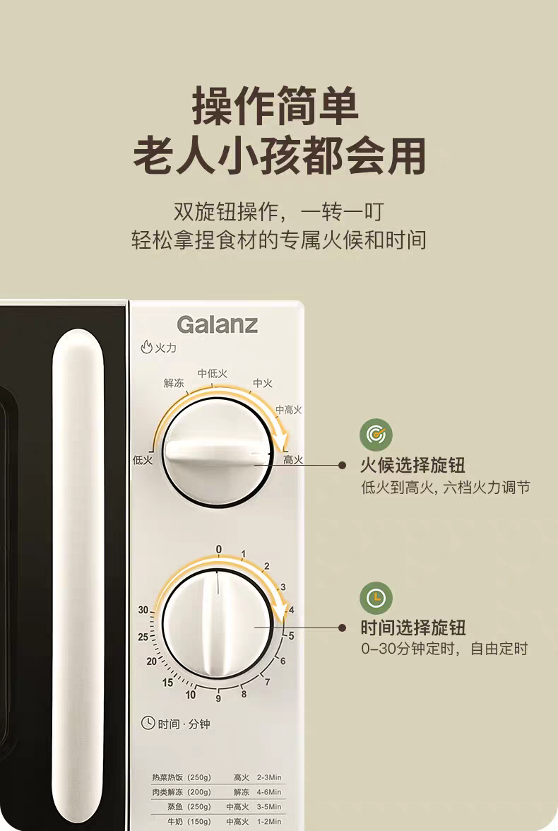 Galanz Microwave Oven for Home Use, Turntable Heating, Mechanical Knob, 20L, Multifunctional, Timer, High Power Se(W0)