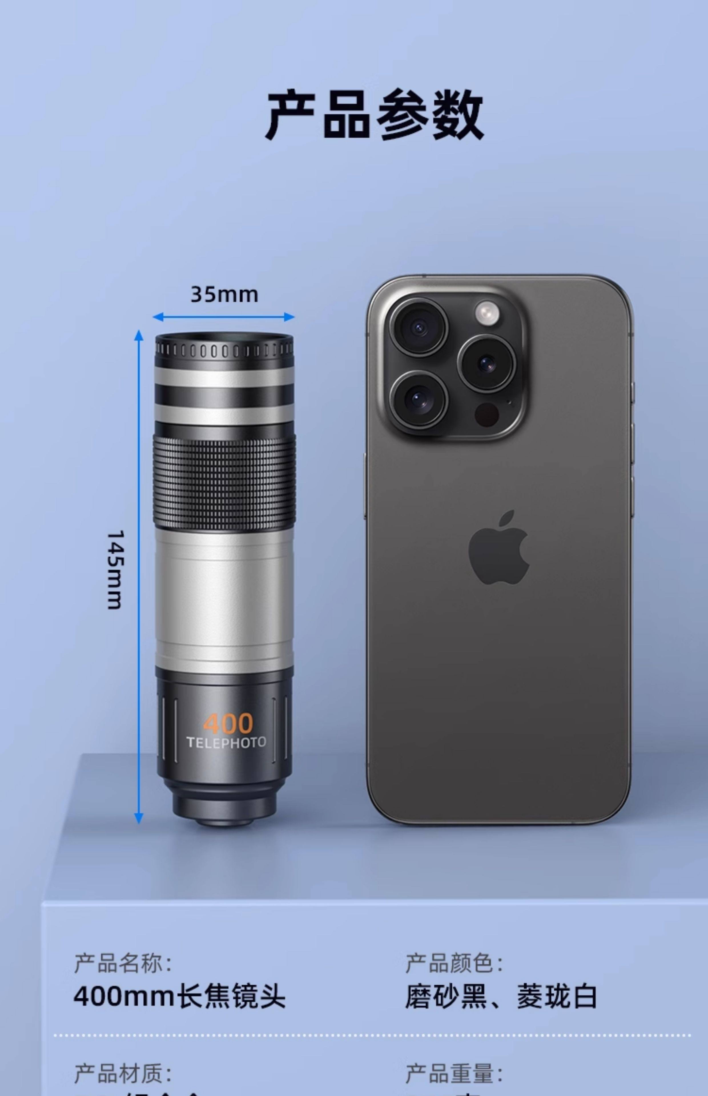 | Color Classification | [Darwin 400mm Telephoto Lens]Universal Clip Style,[Universal Version]Darwin 400mm Telephoto Lens★Hd Anti-Shake★[Handheld/Floor]Dual Use Model,[400mm Telephoto]Iphone16Promax Special Case Version,[400mm Telephoto]Iphone16Pro Special Case Version,[400mm Telephoto]iPhone 16 Plus Special Shell Version,[400mm Telephoto]iPhone 16 Special Shell Version,[400mm Telephoto]iPhone 15 Pro Max Special Shell Version,[400mm Telephoto]iPhone 15 Pro Special Shell Version,[400mm Telephoto]iPhone 15 Plus Special Shell Version,[400mm Telephoto]iPhone 15 Special Shell Version,[400mm Telephoto]iPhone 14 Pro Max Special Shell Version,[400mm Telephoto]Iphone14Pro Special Case Version,[400mm Telephoto]iPhone 14 Plus Special Shell Version,[400mm Telephoto]iPhone 14 Special Shell Version,[400mm Telephoto]iPhone 13 Pro Max Special Shell Version,[400mm Telephoto]Iphone13Pro Special Case Version,[400mm Telephoto]iPhone 13 Special Shell Version,[400mm Telephoto]iPhone 12 Pro Max Special Shell Version,[400mm Telephoto]Iphone12Pro Special Case Version,[400mm Telephoto]iPhone 12 Special Shell Version,[400mm Telephoto]Iphone11Promax Special Case Version,[400mm Telephoto]Iphone11Pro Special Case Version,[400mm Telephoto]iPhone 11 Special Shell Version,[400mm Telephoto]Iphonexr Special Case Version,[400mm Telephoto]iPhone XS Special Shell Version,[400mm Telephoto]iPhone XS Max Special Shell Version,[400mm Telephoto]Iphonex Special Case Version |