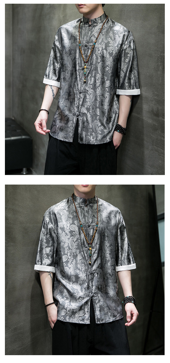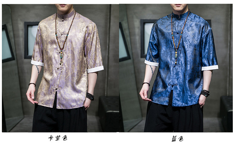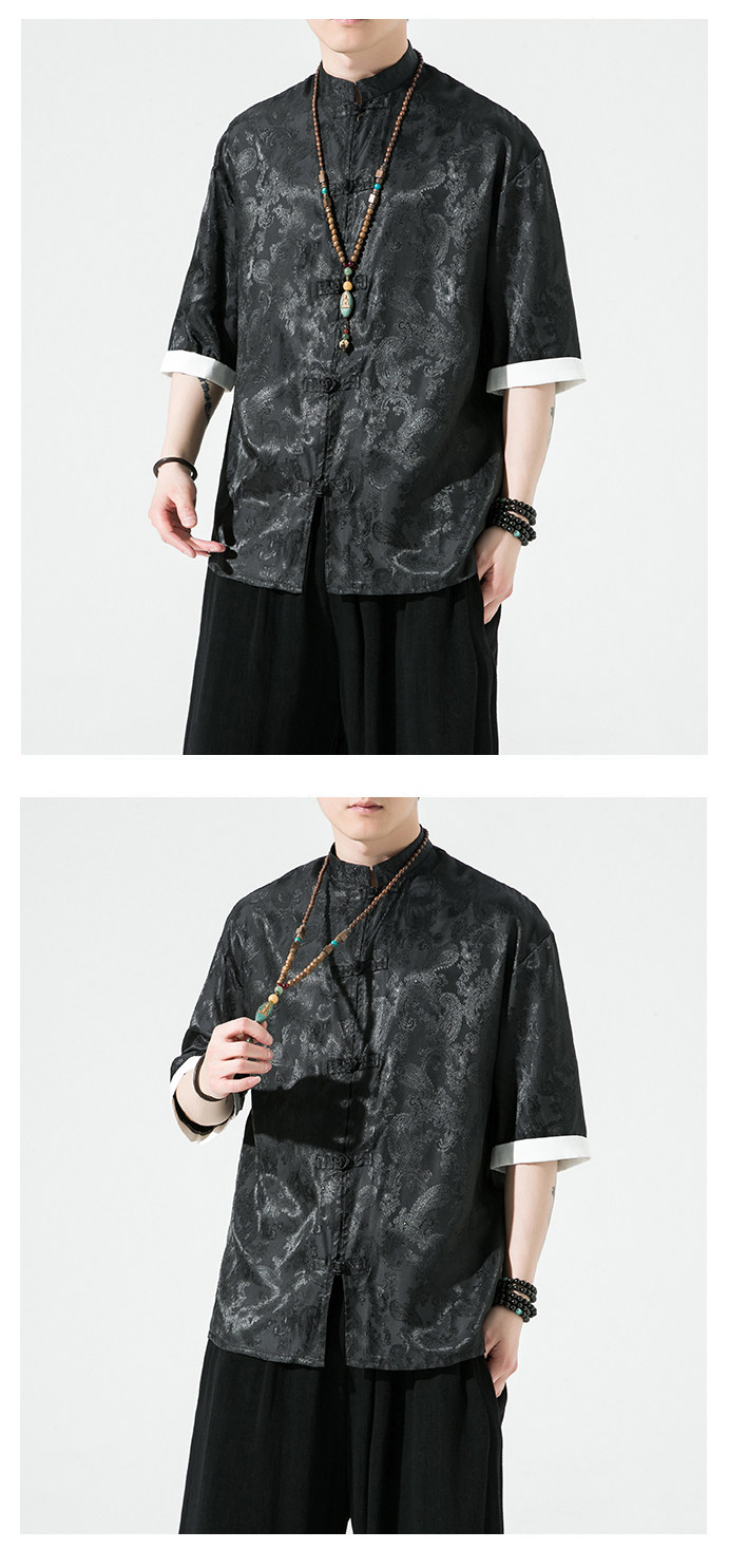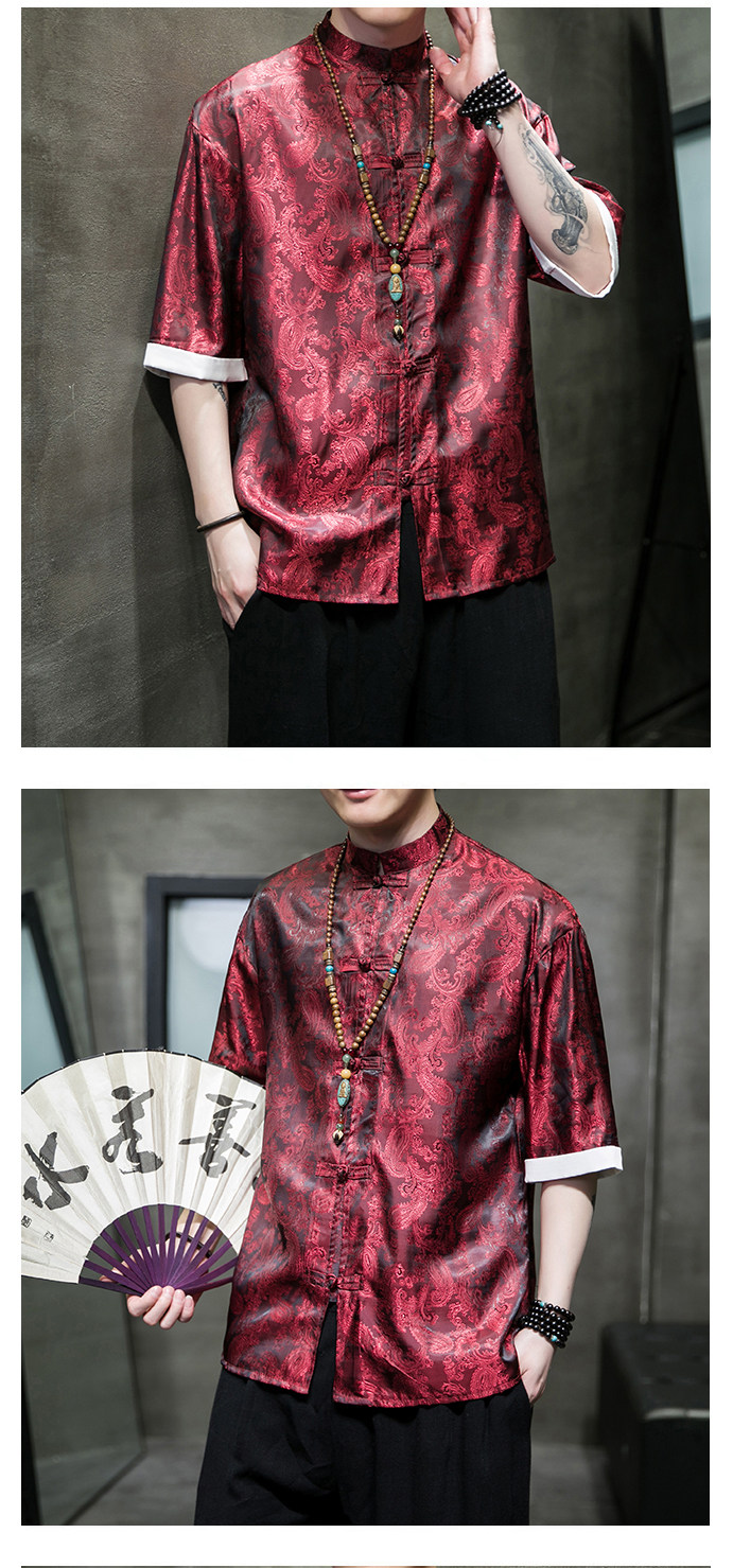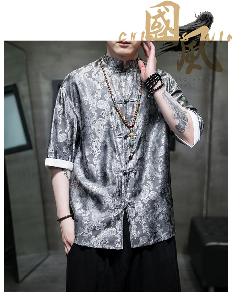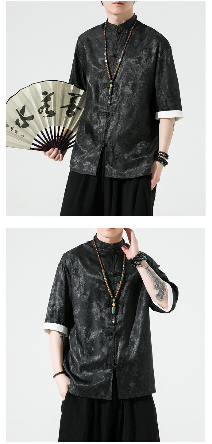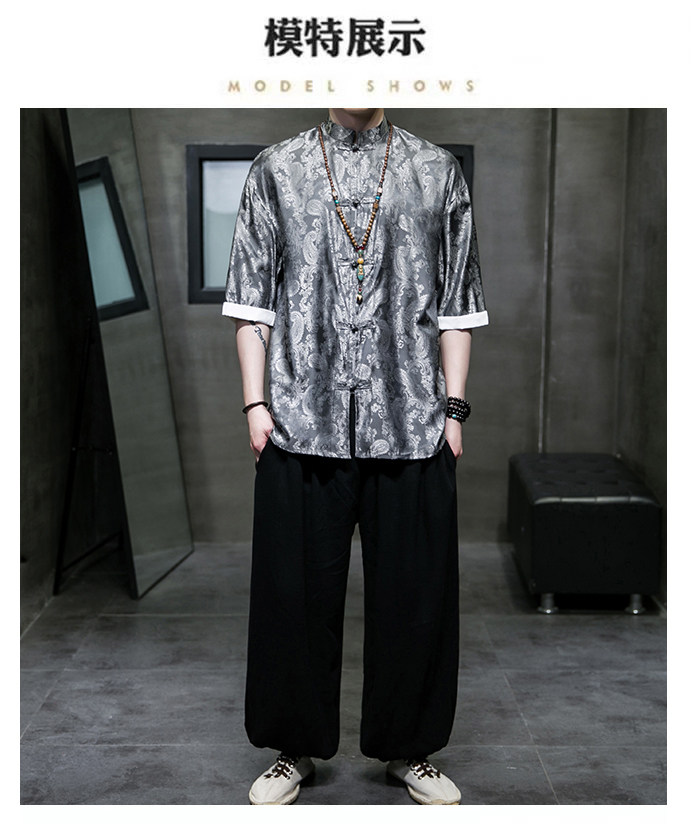 Ice Silk Short-Sleeved Shirt for Men, Summer Thin Style, Chinese Style Tang Suit, Youth Fashion, Quick-Drying Breathable Shirt, Large Size Jacket
