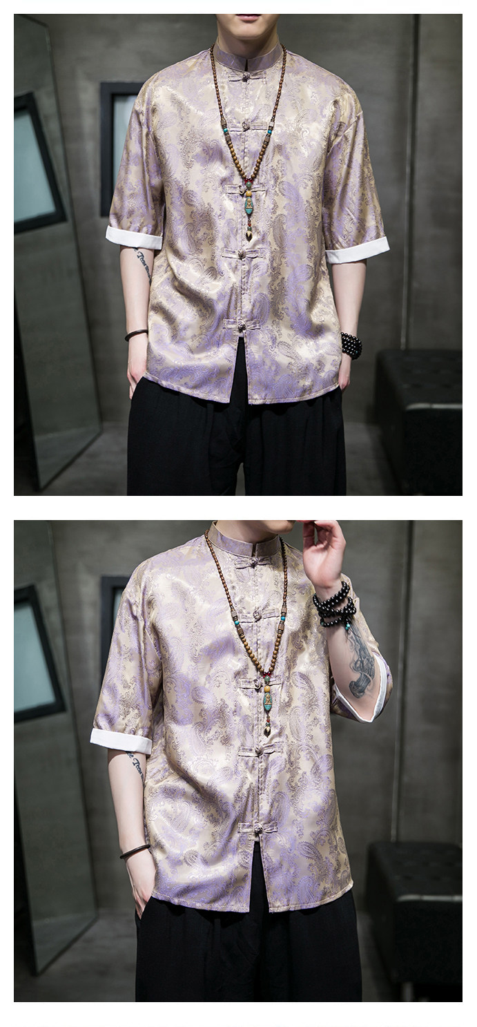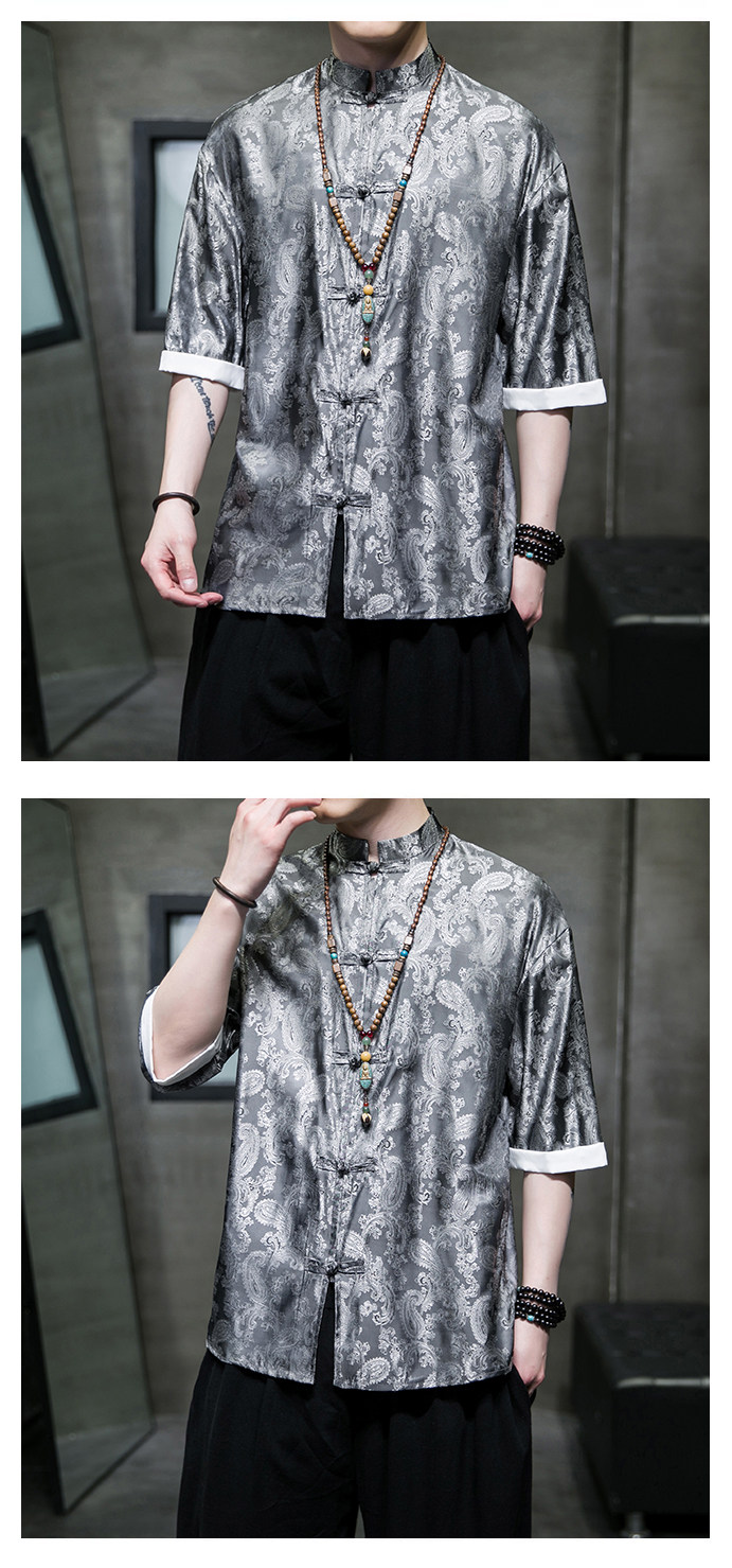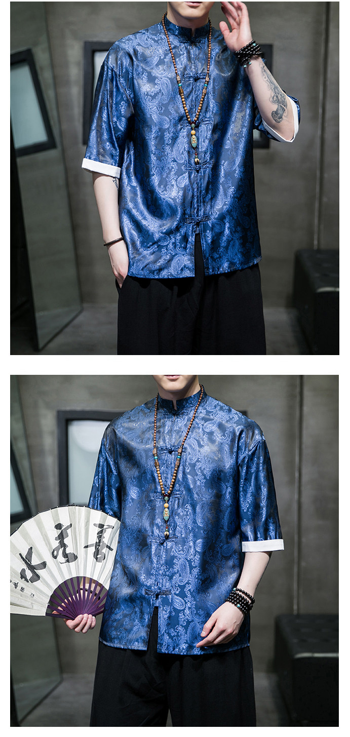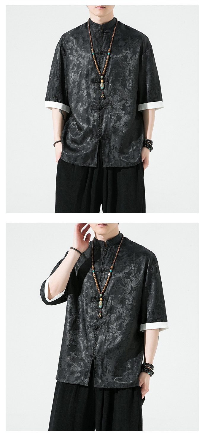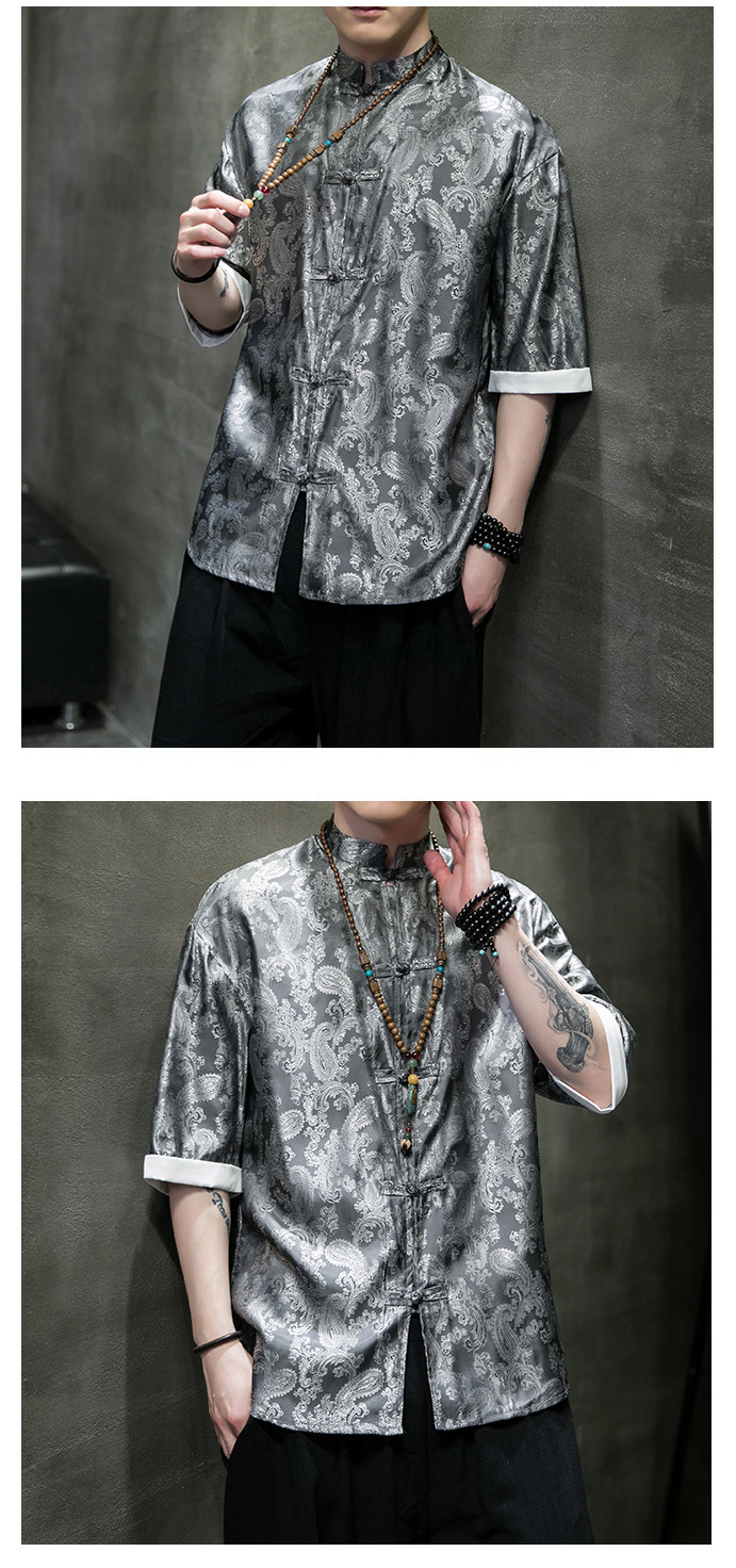 Ice Silk Short-Sleeved Shirt for Men, Summer Thin Style, Chinese Style Tang Suit, Youth Fashion, Quick-Drying Breathable Shirt, Large Size Jacket
