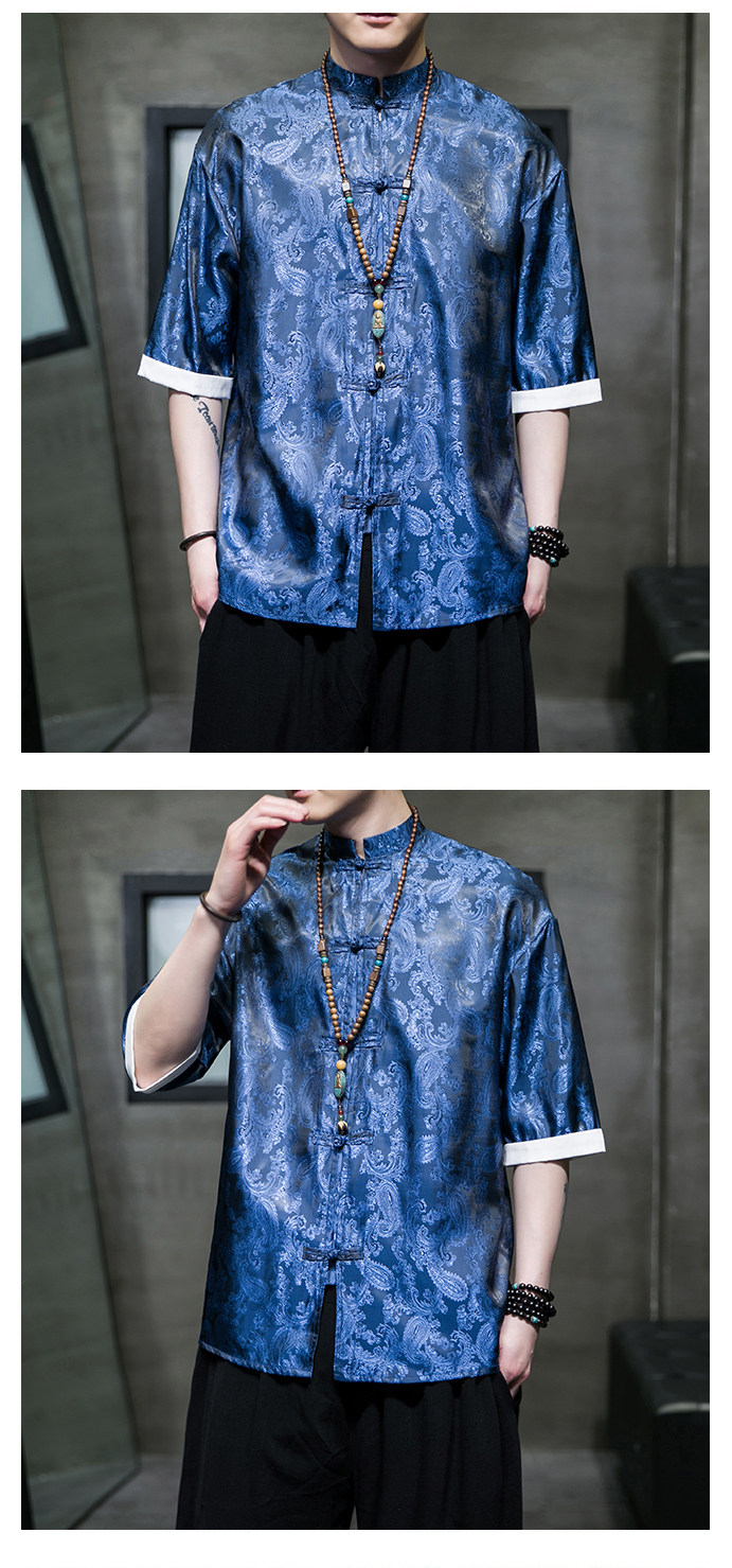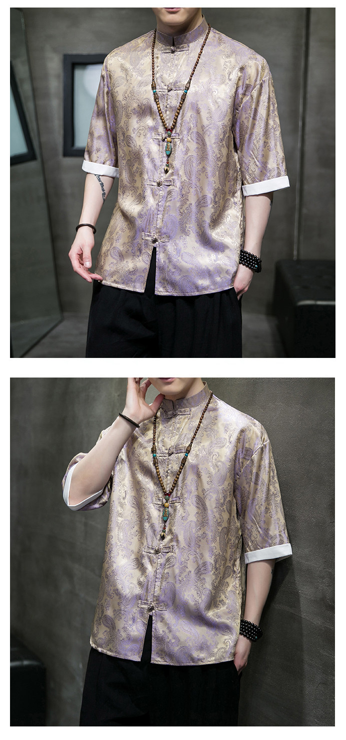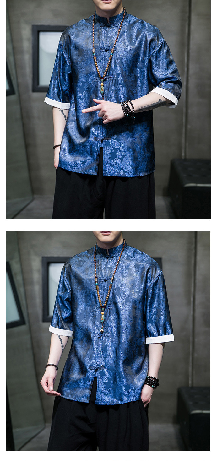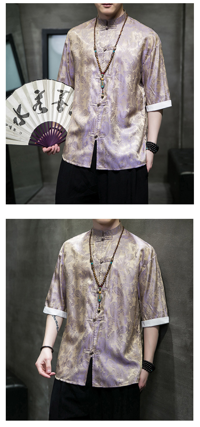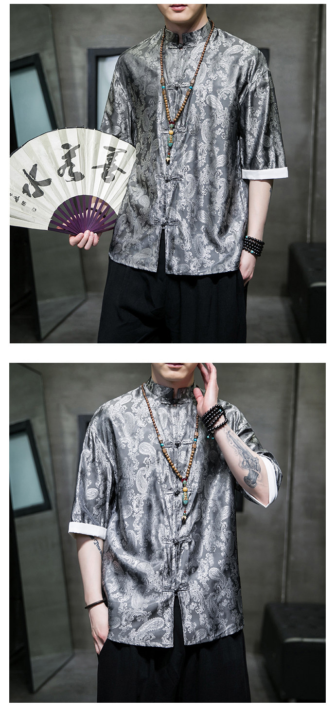 Ice Silk Short-Sleeved Shirt for Men, Summer Thin Style, Chinese Style Tang Suit, Youth Fashion, Quick-Drying Breathable Shirt, Large Size Jacket