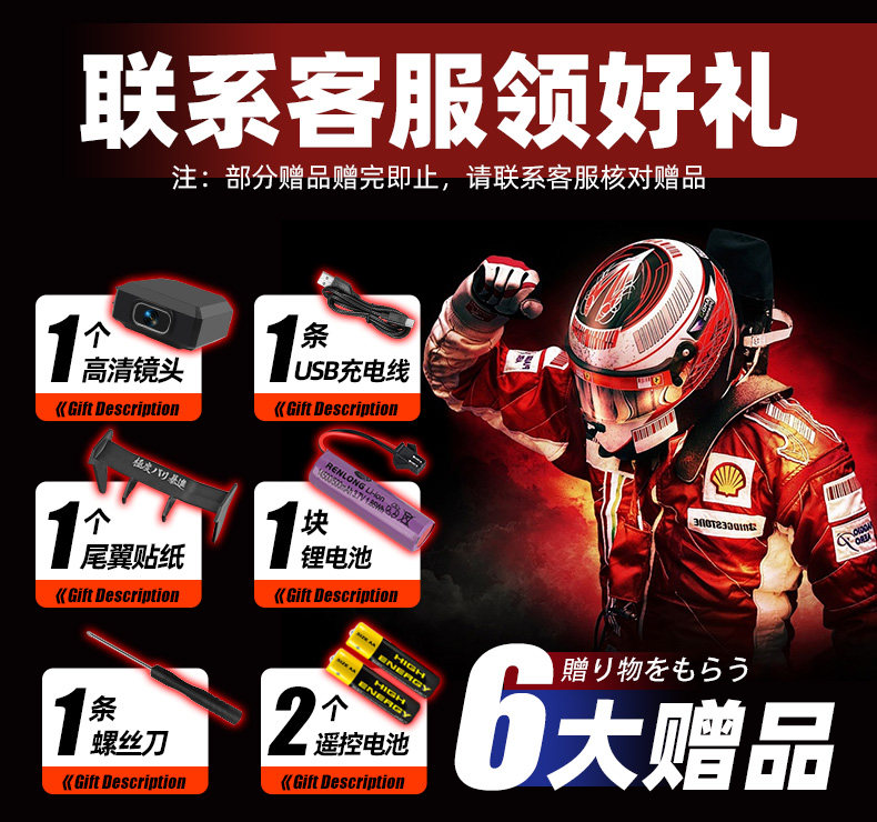 | Package Type | Official Standard Configuration,[1 Piece Reinforced Battery]Racing for 45 Minutes + Free 2 Remote Control Batteries + Charging Cable,[2 Pieces of Reinforced Batteries]90 Minutes of Crazy Running + Free 2 Remote Control Batteries + Charging Cable,[3 Pieces of Reinforced Batteries]Racing for 135 Minutes + Free 2 Remote Control Batteries + Charging Cable,[4 Pieces of Reinforced Batteries]Racing for 180 Minutes + Free 2 Remote Control Batteries + Charging Cable |