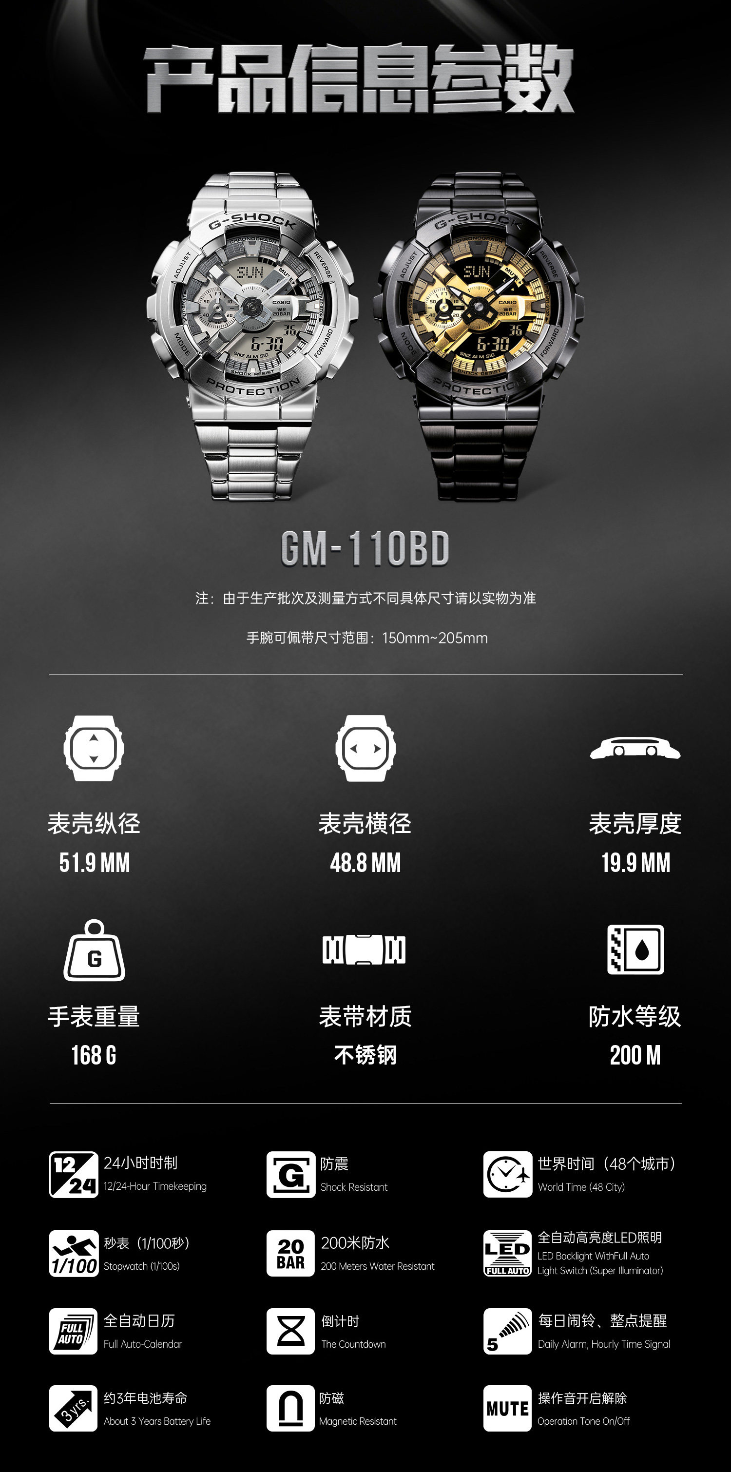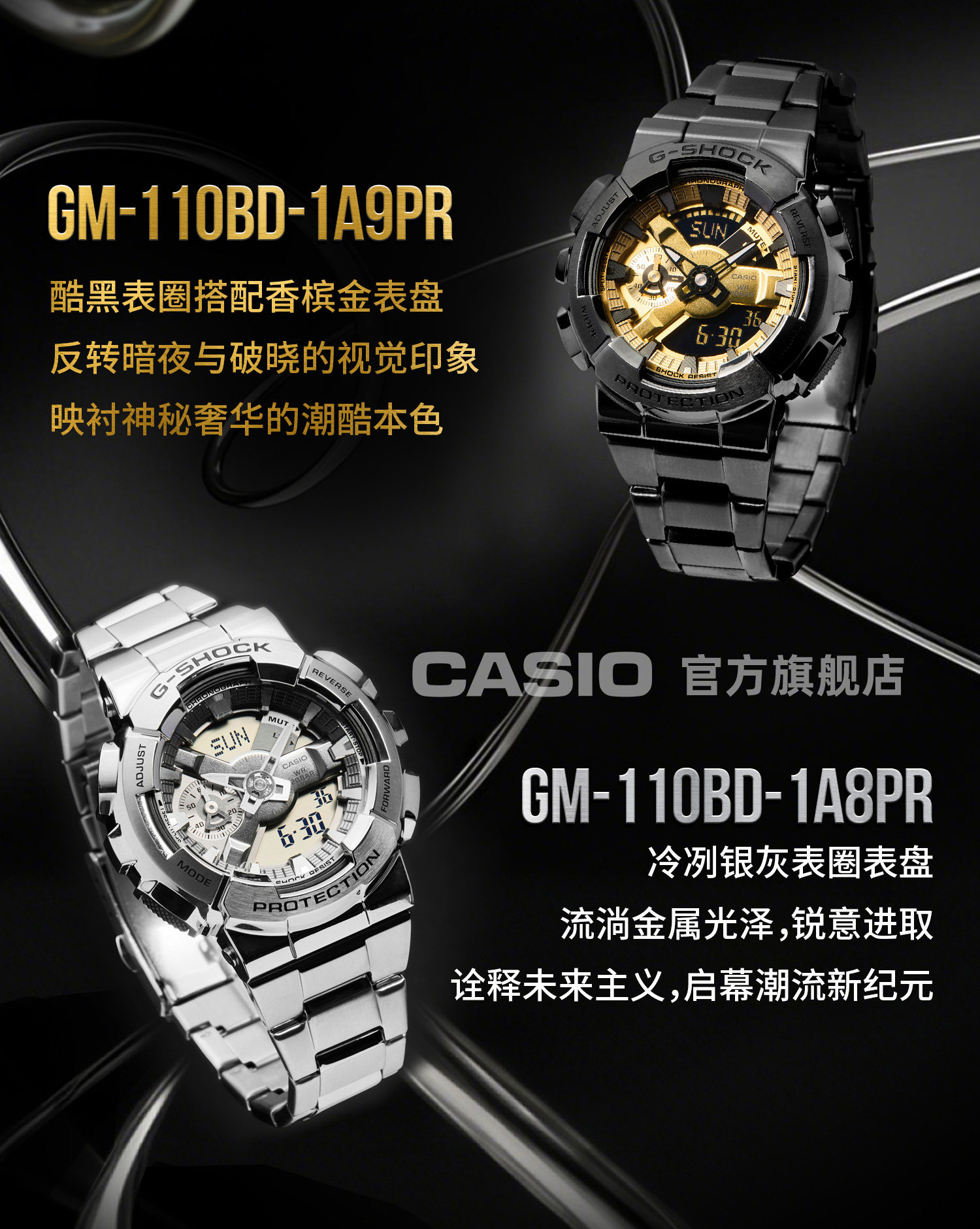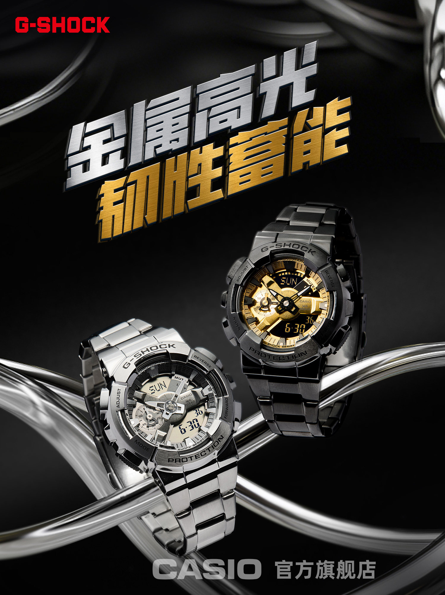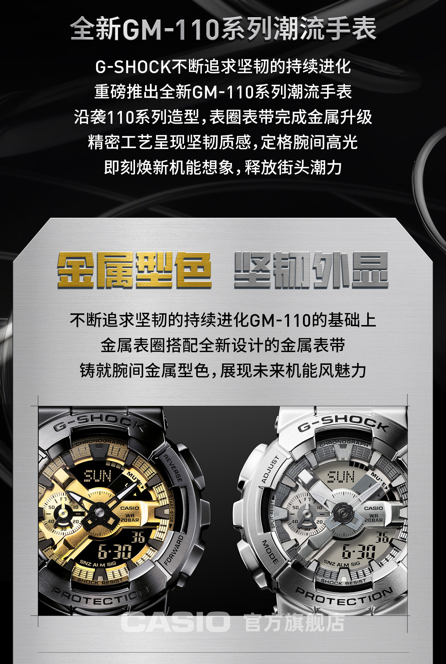 Casio Official Flagship Store Gm-110D Metal Small Steel Cannon Shockproof, Waterproof, Anti-Magnetic Digital Watch G-Shock