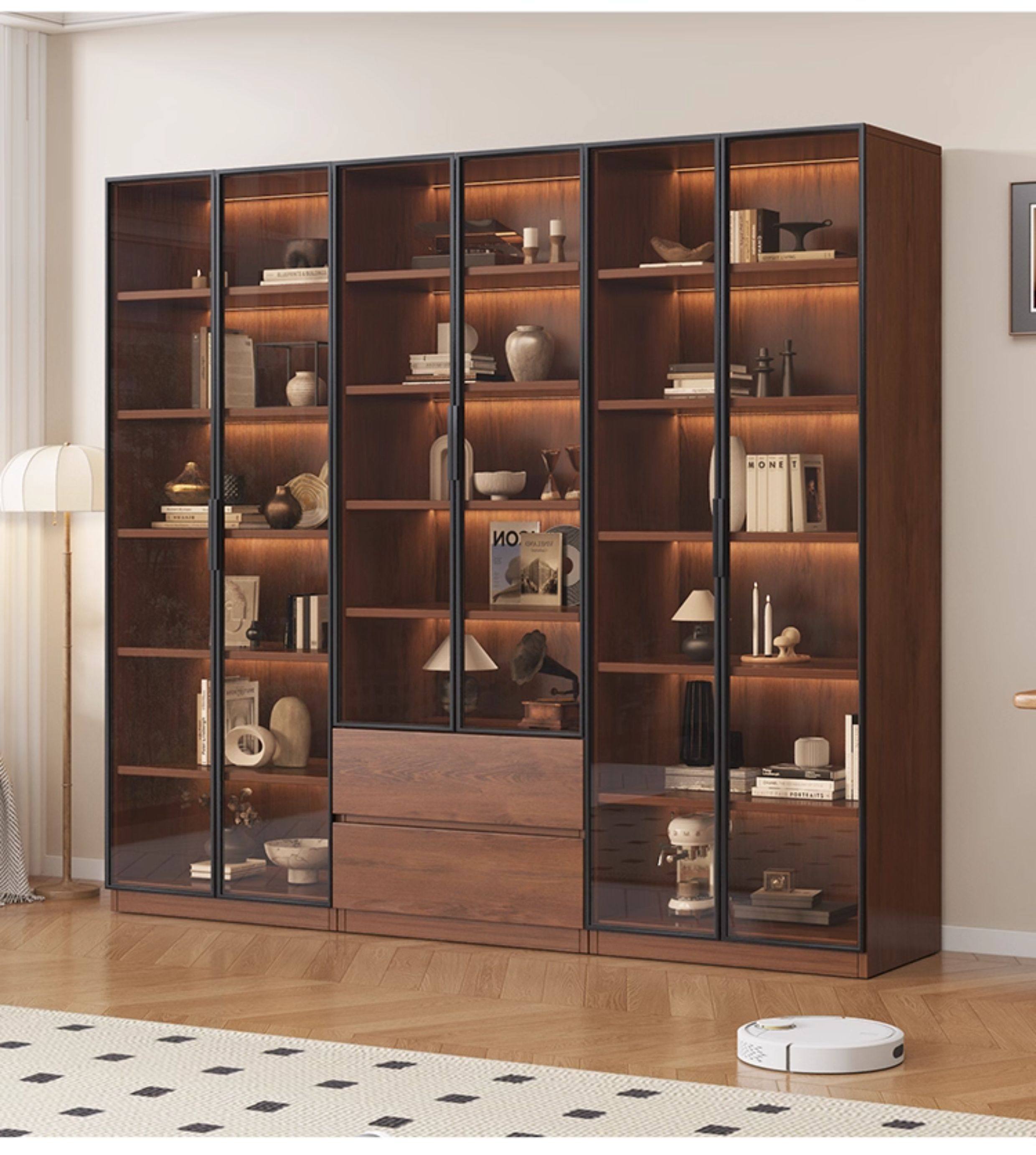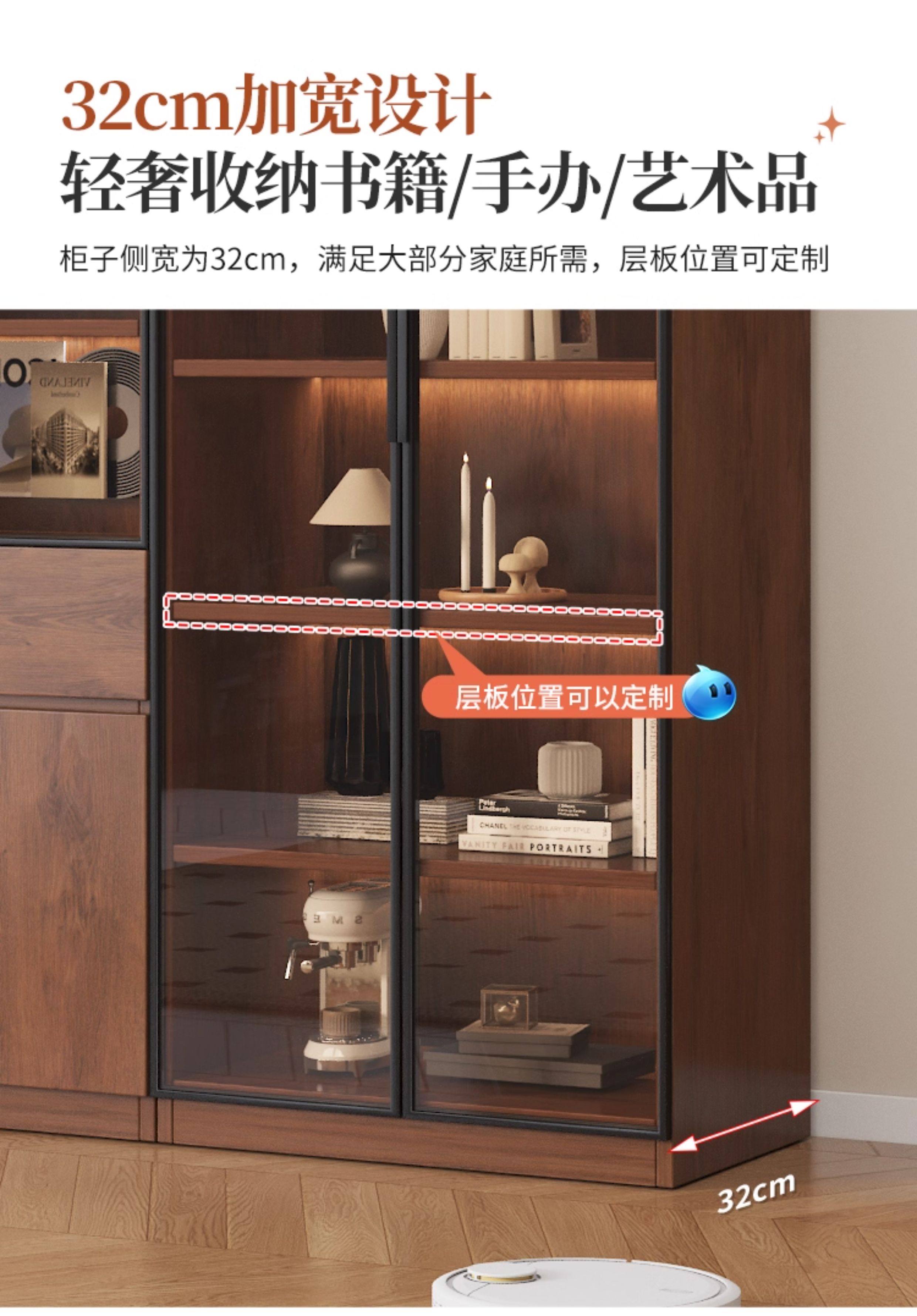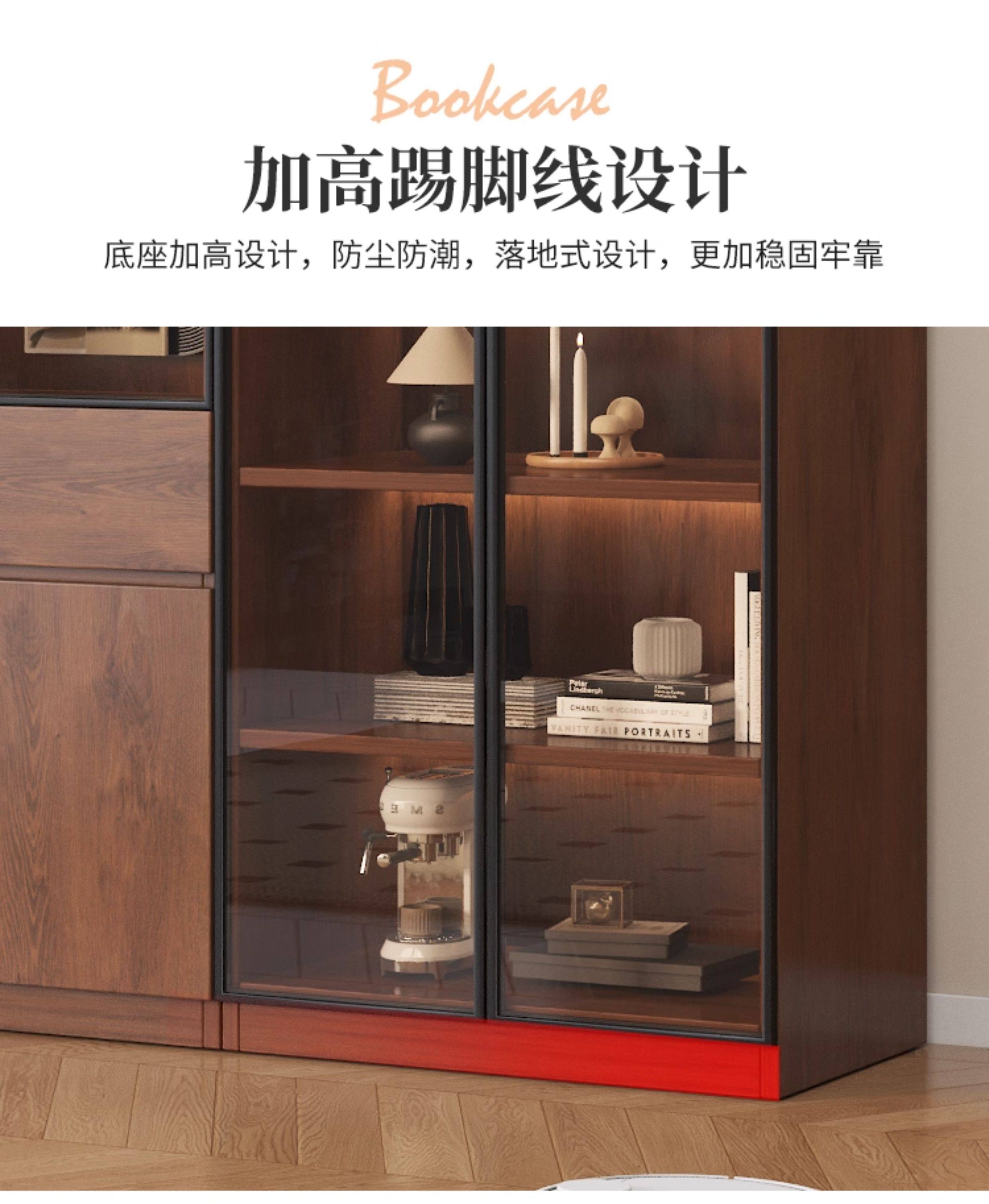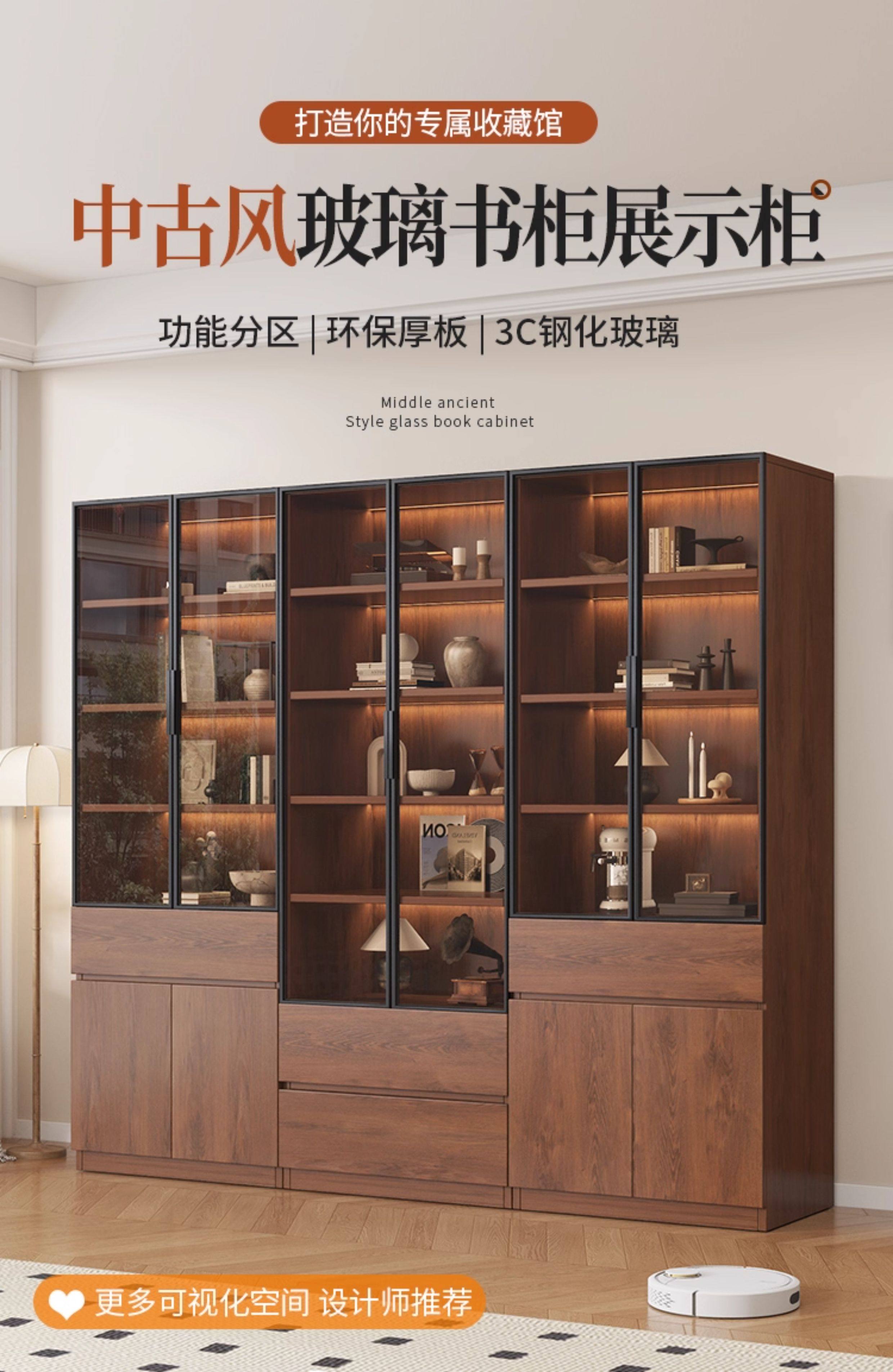 Retro Mid-Century Bookcase with Glass Door, Display Wine Cabinet, Home Living Room Integrated Wall-Mounted Storage Shelf for Figurines and Books