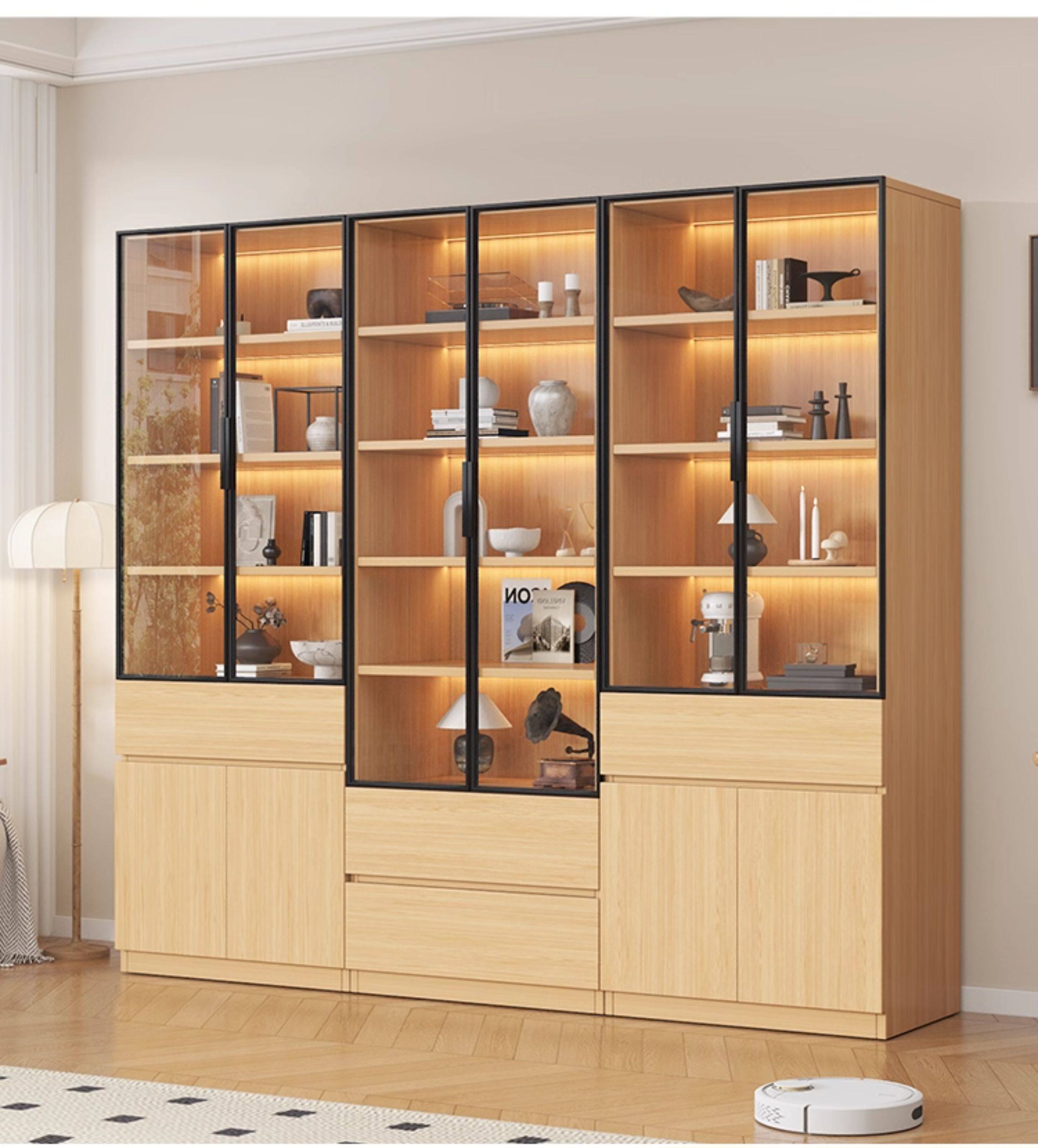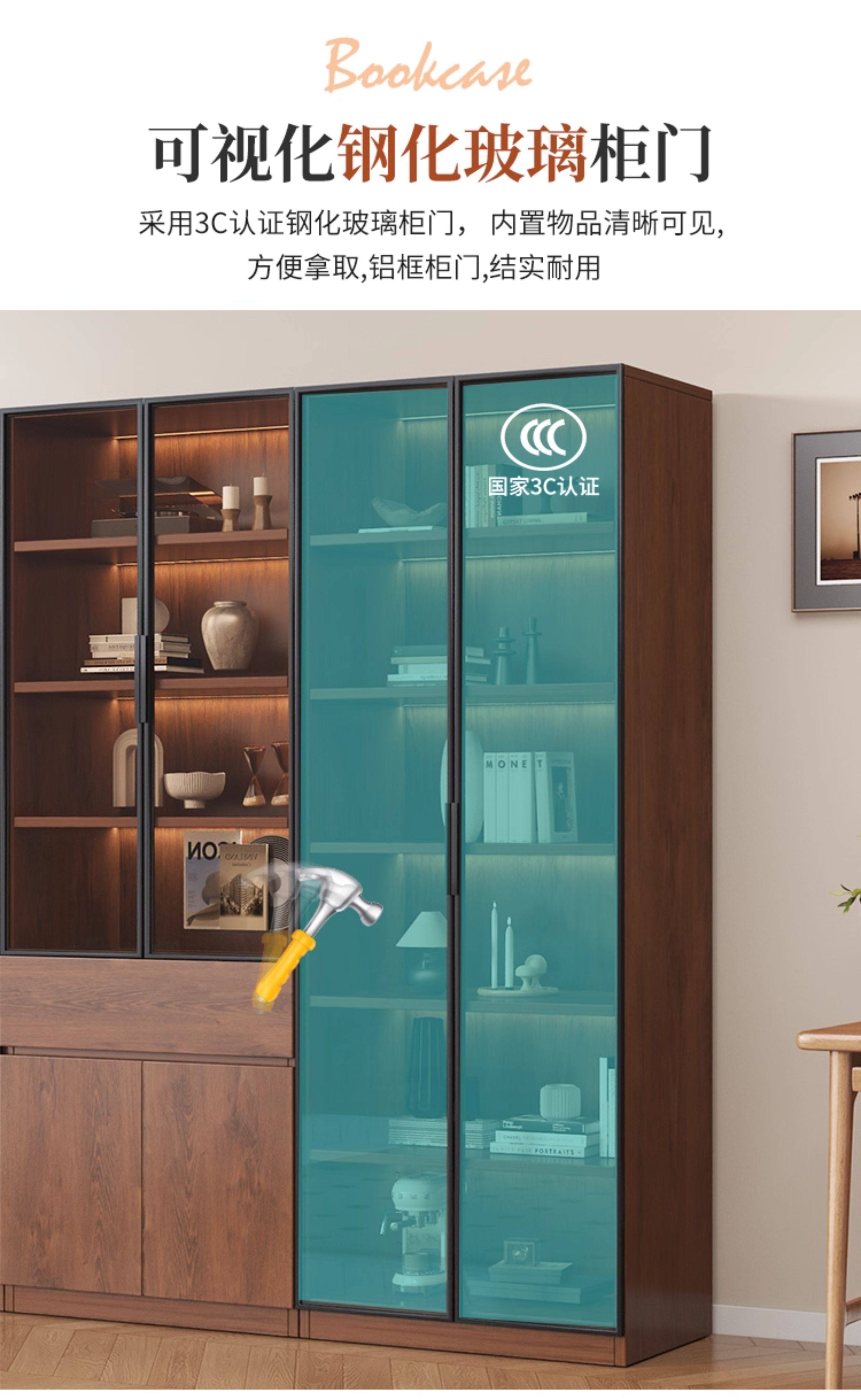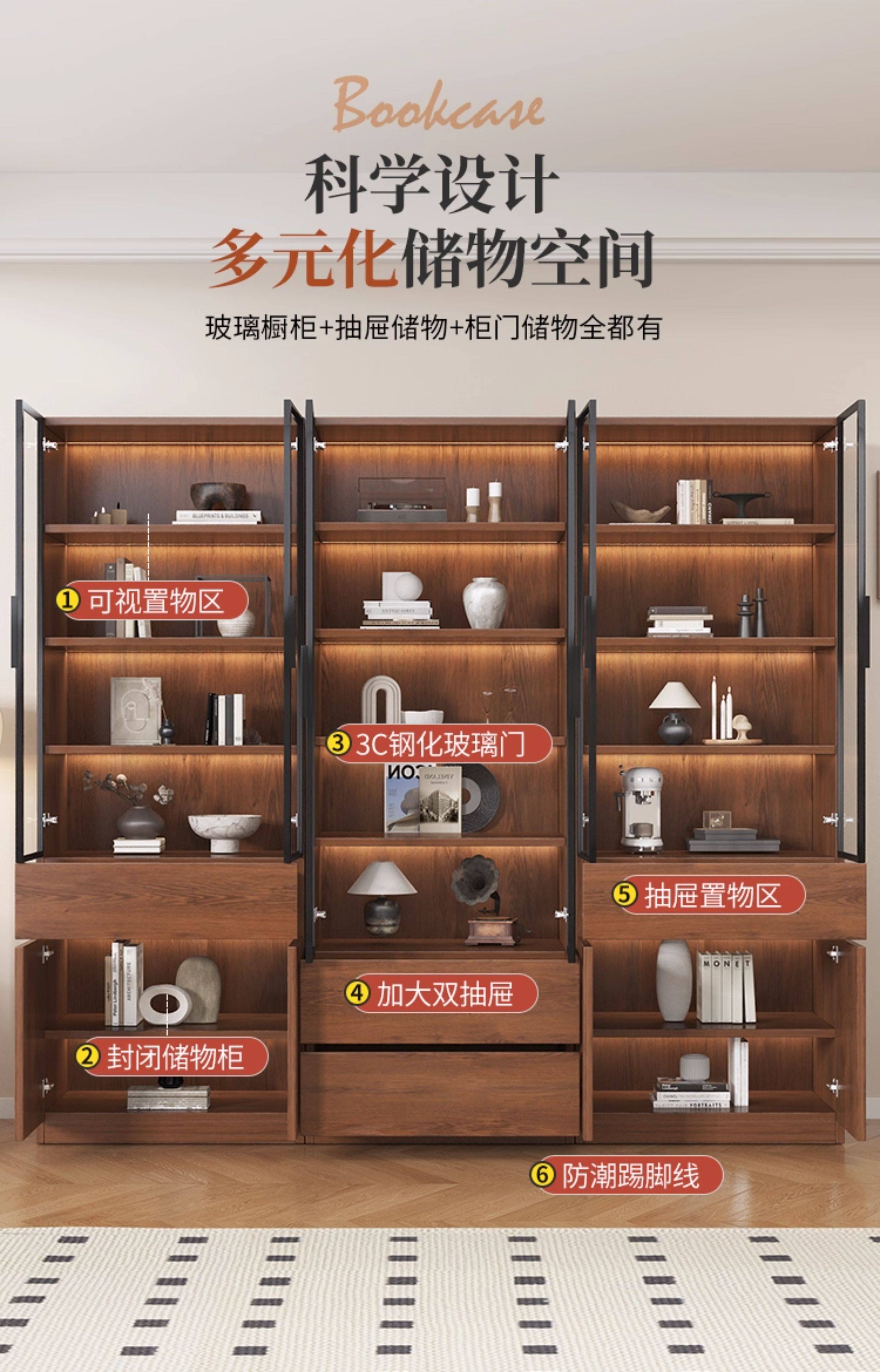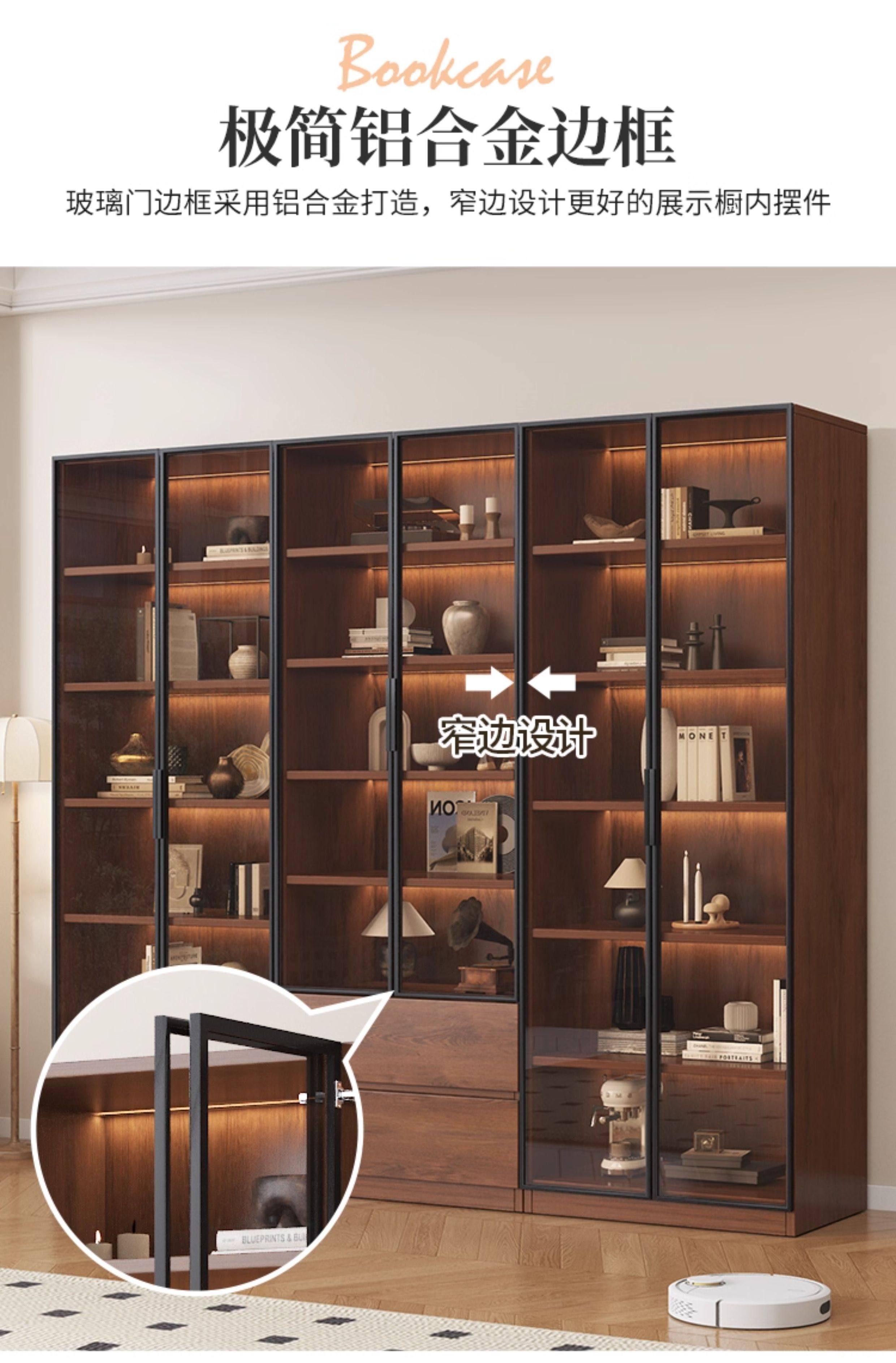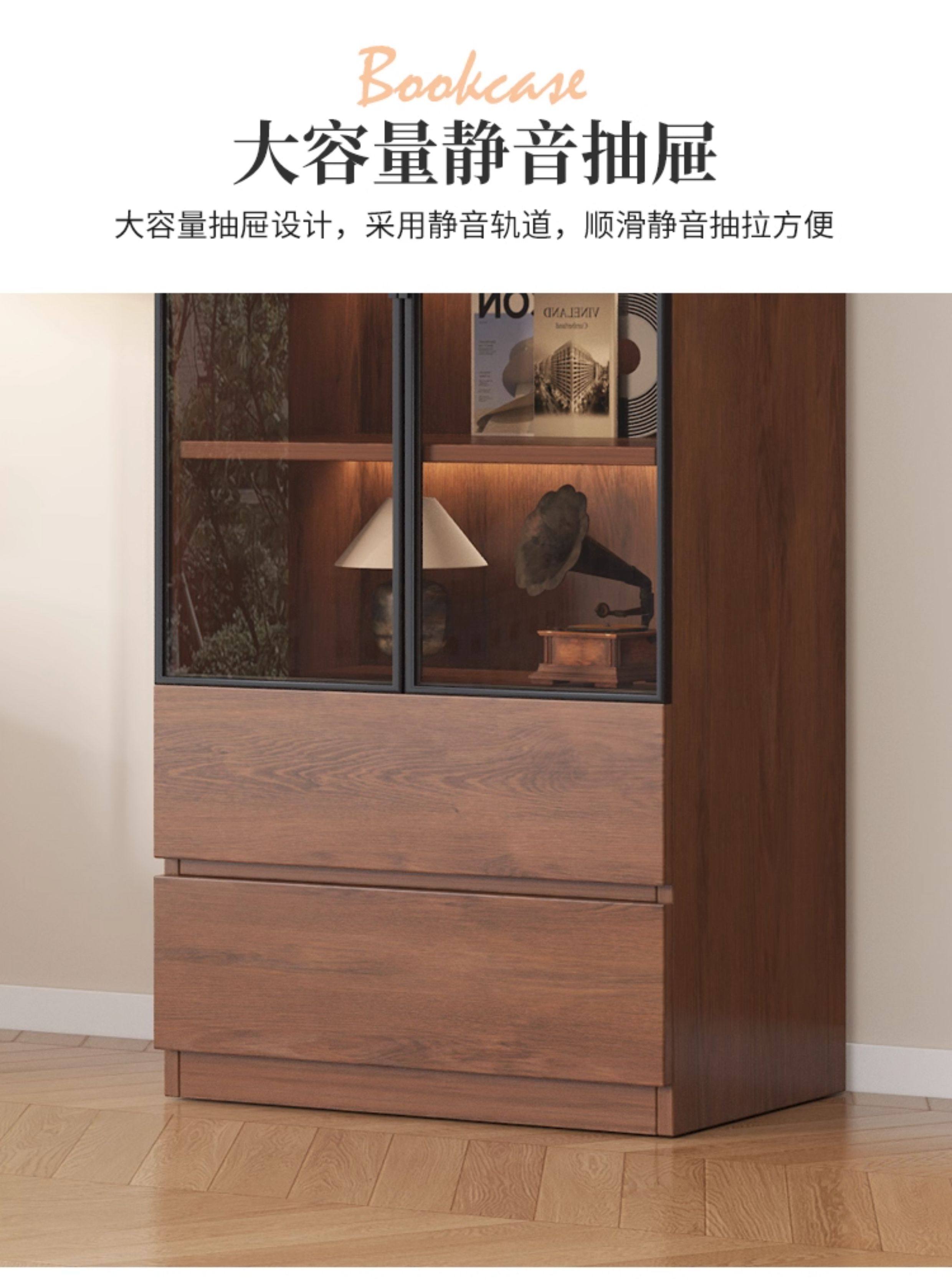 Retro Mid-Century Bookcase with Glass Door, Display Wine Cabinet, Home Living Room Integrated Wall-Mounted Storage Shelf for Figurines and Books