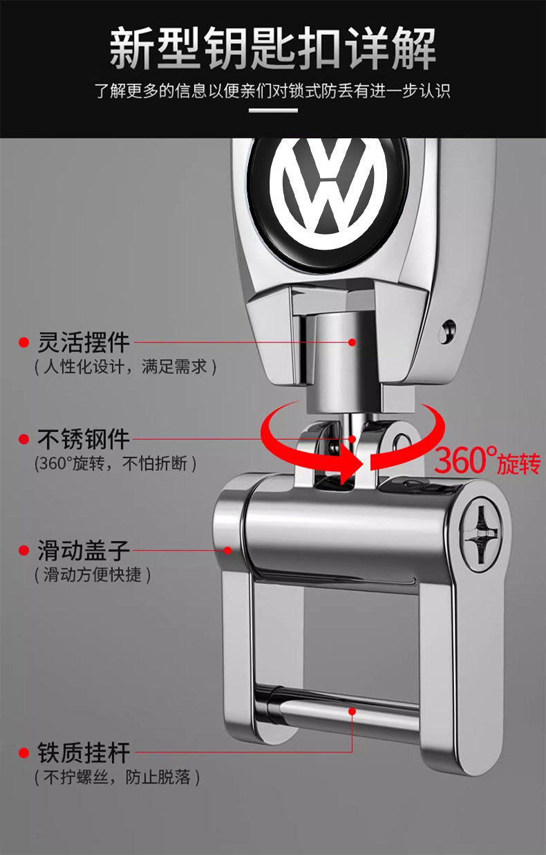 Volkswagen Car Keychain for Lavida, Bora, Passat, and Sagitar, Alloy Chain Buckle, Unisex Waist Ring Pendant, Personalized