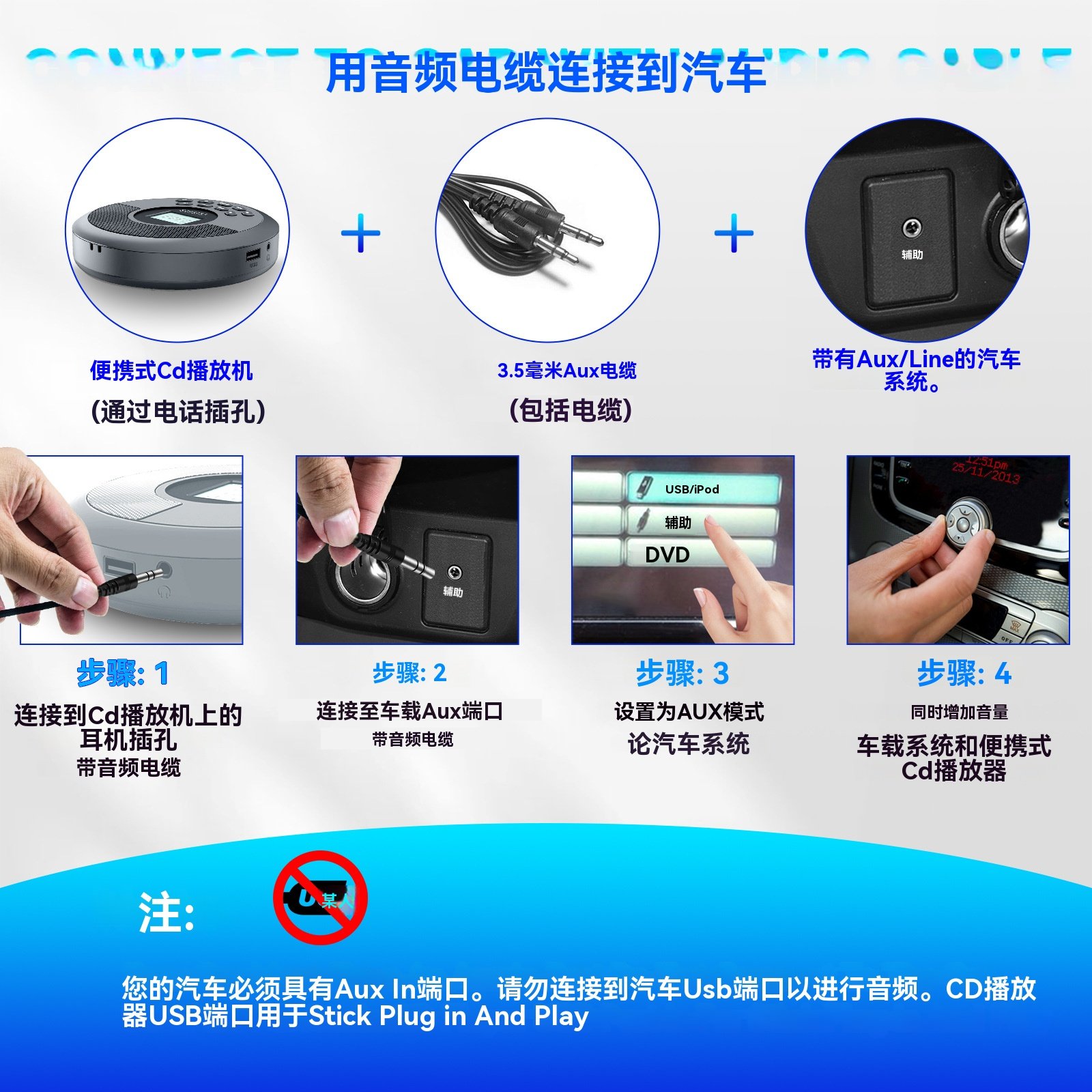 Portable Cd Player Mp3 Music Album Cd Walkman USB Bluetooth Cd Player Dual Speaker Stereo