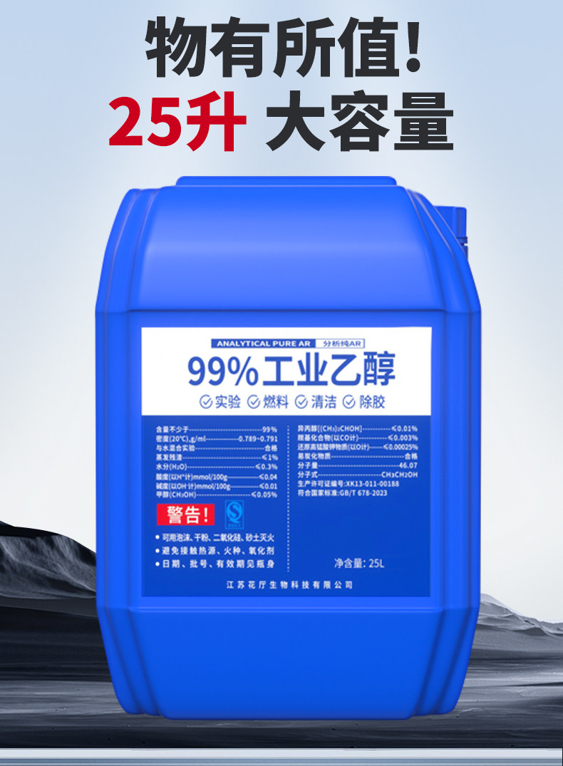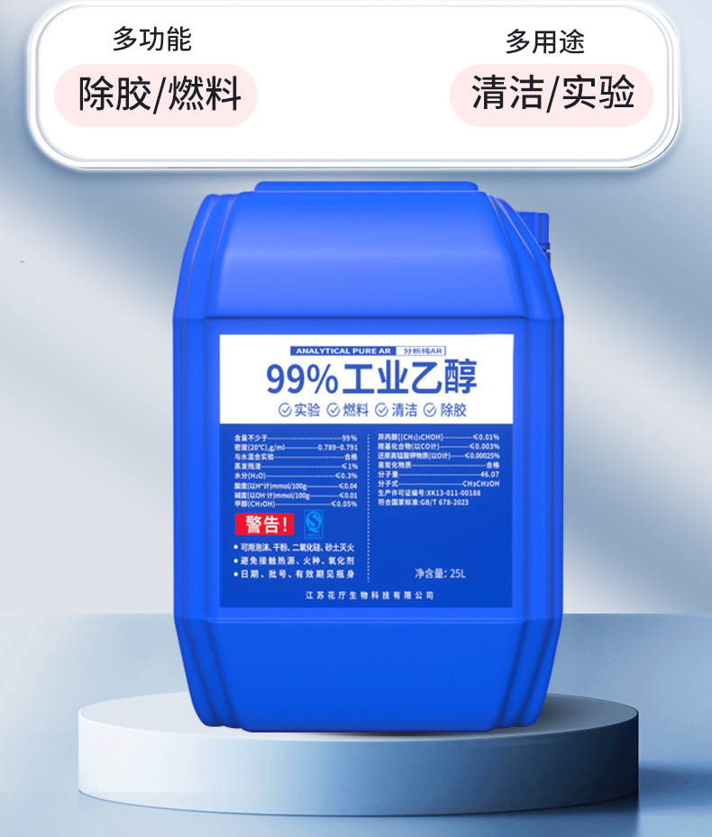 Alcohol 99 Industrial Cleaning Equipment High-Concentration Ethanol for Removing Grease Factory Purchase Large Barrels 20Kg/25L