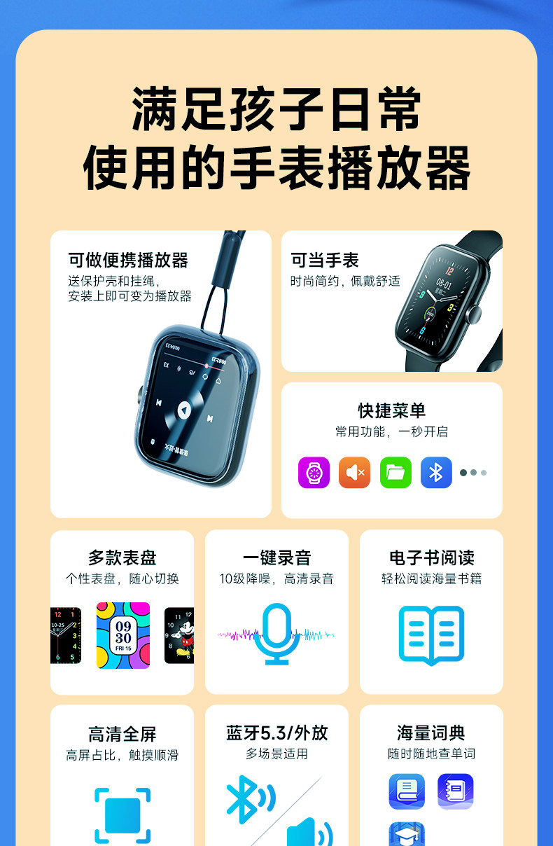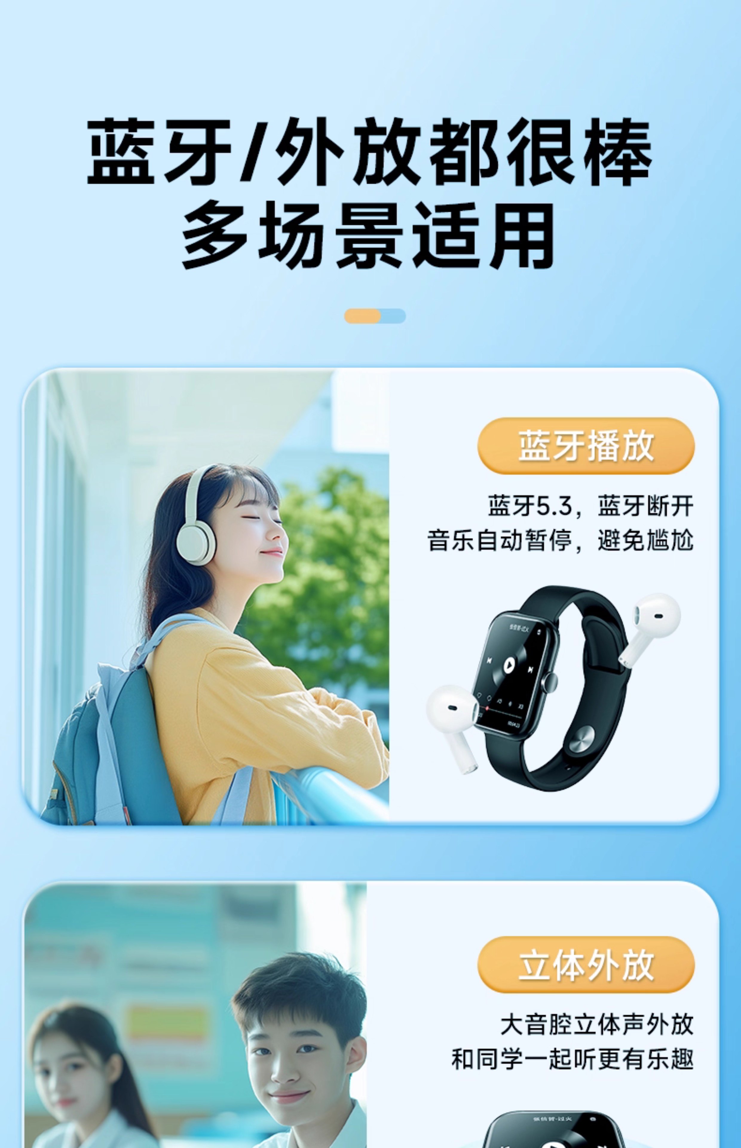 Fanmu Watch Mp3 Player Student Version Mp4 High School Student Dedicated Music Player Bluetooth External Speaker English
