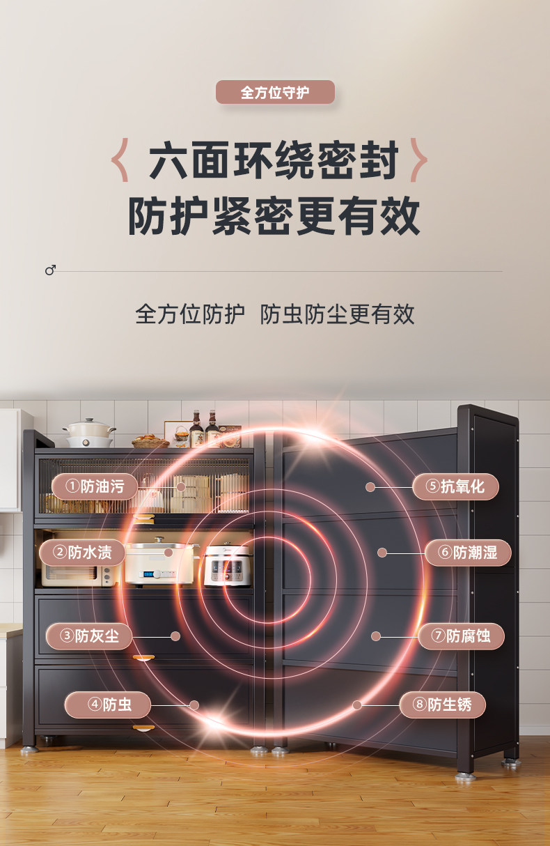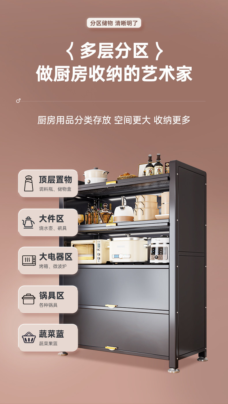 Kitchen Storage Rack Floor-Standing Multi-Layer Dust-Proof Storage Cabinet Household Multi-Functional Cupboard Sideboard Cabinet Storage Cabinet