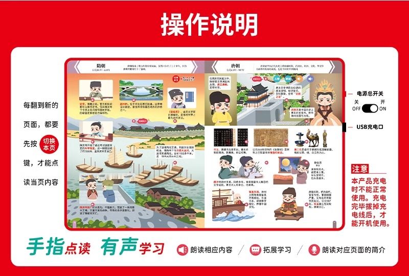 | Color Classification | [Rechargeable] Talking Chinese History Finger Reading Sound Book |